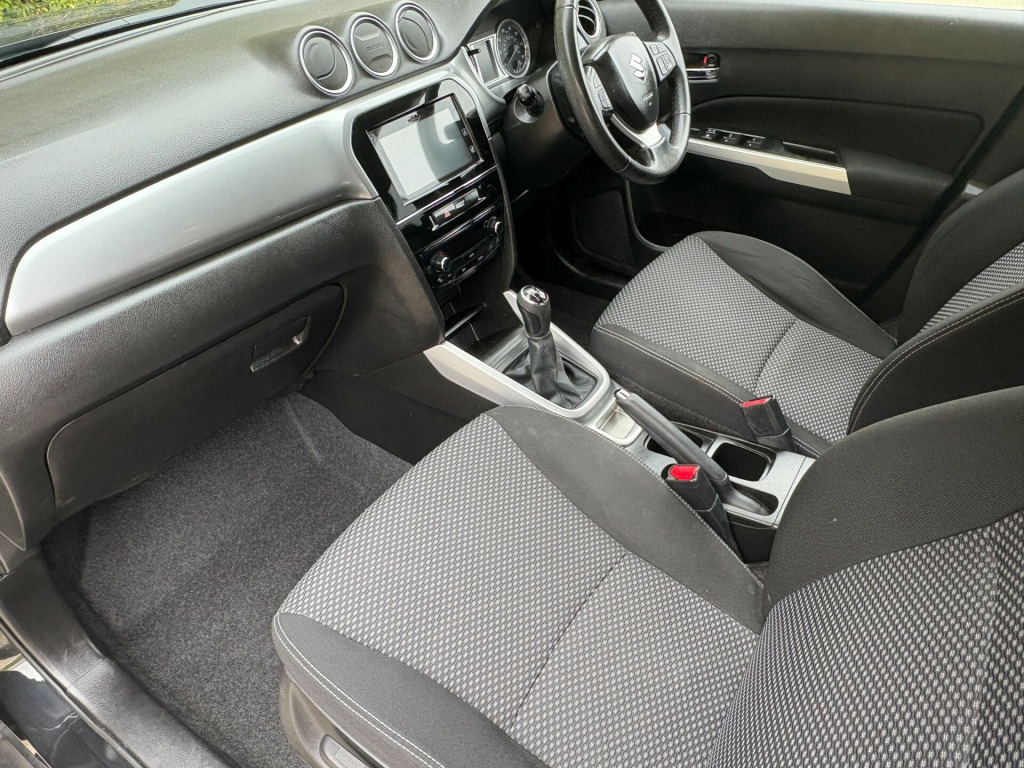 This 2015 Suzuki Vitara 1.6 SZ-T SUV with a Euro 6 petrol engine and manual transmission has only covered 97,000 miles and comes with a valid MOT until 05/07/2026. With 5 doors and 5 seats, it's the perfect family SUV. Not only is it ULEZ compliant, but it also boasts features such as a 12V accessory socket in both the centre lower box and the luggage area, Bluetooth integrated into the audio unit, DAB digital radio, and a navigation system, making it ideal for long drives or daily commutes. With its spacious interior and reliable petrol engine, this Suzuki Vitara is ready to take on whatever adventures you have in store.If you would like further information about any of the vehicles on sale then please call 01206 561122 or email flaghillgmail.com to arrange a viewing. We have been trading since 1986 and have over 39 years' experience in supplying quality cars and many thousands of satisfied customers - please see our online reviews. RAC warranties up to 24 months are available., v accessory socket - centre lower box, 12v accessory socket - luggage area, bluetooth integrated into audio unit, dab digital radio, navigation system, smartphone linkage display audio, speakers x4, usb connector, 17in alloy wheels - dark silver finish, body coloured exterior mirrors and door handles, electric front and rear windows, electrically adjustable and heated door mirrors, emergency flat tyre repair kit, front and rear skid plates - silver, locking wheel bolts, rear privacy glass, roof rails - silver, wheel arch extensions, 2 x front cup holders, 2 x front door and 2 x rear door bottle holders, 3-spoke leather covered steering wheel, automatic air conditioning, centre-lower box, chrome interior door handles, driver and front passenger seat height adjuster, front footwell and centre lower console box lights, front map light - centre cabin and glovebox lights, front passenger seatback pocket, front sunvisors with vanity mirrors and ticket holder, front vanity mirror illumination, front wiper with adjustable intermittent, instrument panel colour - silver, luggage area cover, luggage area light, luggage area shopping bag hook and tie-down hook x2, passengers side and 2 x rear assist grips, pollen filter, rear seat with 60-40 split folding, removable double luggage room floor, steering wheel mounted audio controls, tilt and telescopic adjustable steering wheel, abs with brake assist function, child seat tether anchorages x 3, childproof rear door locks, curtain airbags, deadlocks, driver knee airbag, driver and front passenger airbags, esp - electronic stability program, freewheeling key cylinders, front 3-point elr seatbelts with pretensioner-force limiter and height adjuster, front passenger airbag deactivation system, front seatbelt reminder - warning light and alarm, hill hold control, isofix child seat anchorages x 2, immobiliser, rear 3-point elr seatbelts x 3, rear seatbelt reminder, rear wiper with intermittent, remote central door locking, security alarm, side airbags, side impact protection beams, traction control, visible vin, cruise control with speed limiter, information display, lights-on and key-in reminder, power steering, rear parking camera, tpms - tyre pressure monitoring system, tachometer, daytime running lights - led, front fog lights, halogen projector headlamps, headlamp levelling switch