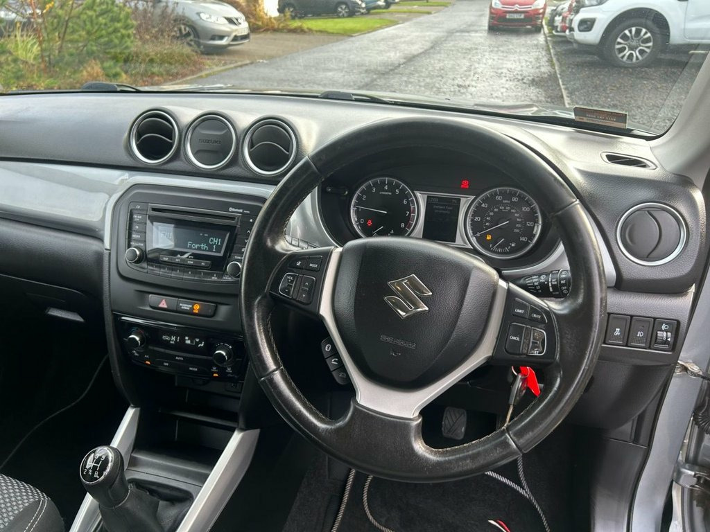 A very nice driving Vitara finished in grey metallic. 12V Accessory Socket - Centre Lower Box, 12V Accessory Socket - Luggage Area, 16in Alloy Wheels, 2 x Front Cup Holders, 2 x Front Door and 2 x Rear Door Bottle , 3-Spoke Leather Covered Steering Wheel, ABS with Brake Assist Function, Automatic Air Conditioning, Bluetooth Integrated into Audio Unit, Body Coloured Exterior Mirrors and Door , CD Tuner, Centre-Lower Box, Child Seat Tether Anchorages x 3, Childproof Rear Door Locks, Chrome Interior Door Handles, Cruise Control with Speed Limiter, Curtain Airbags, DAB Digital Radio, Daytime Running Lights - LED, Deadlocks, Driver and Front Passenger Airbags, Driver and Front Passenger Seat Height A, Driver Knee Airbag, Electric Front and Rear Wind