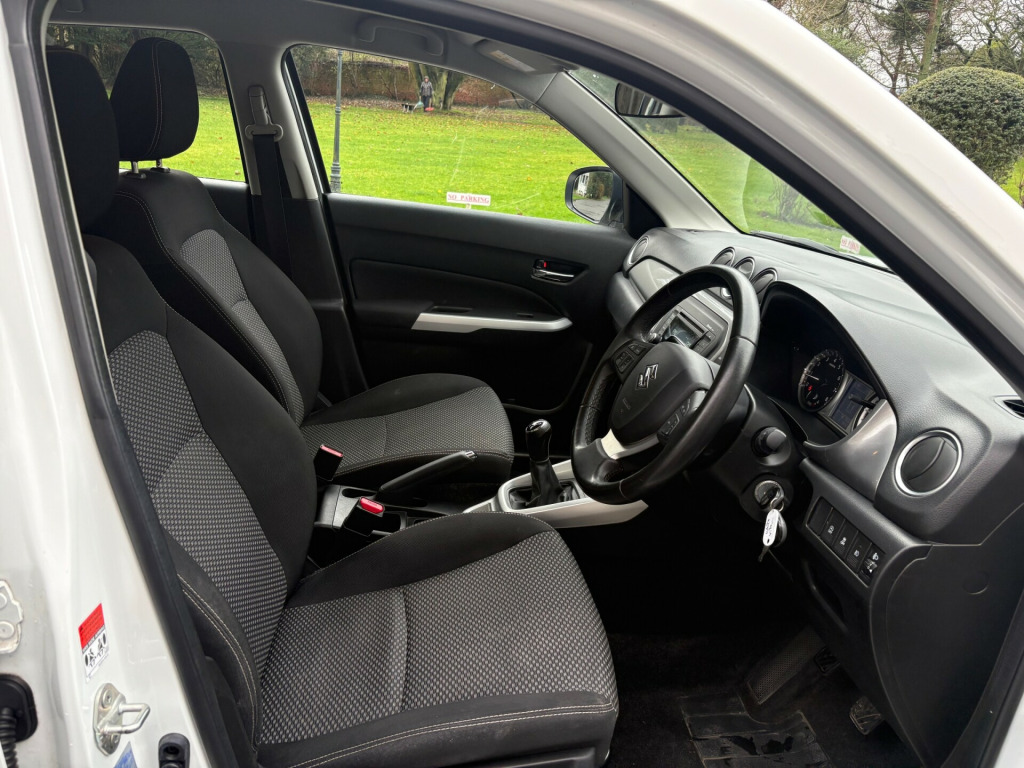 V CAR CAT N. This 2016 Suzuki Vitara 1.6 SZ4 SUV with 5 doors and 5 seats has covered 73000 miles and runs on petrol. It has a manual transmission with Euro 6 (s/s) and 120 ps. The MOT is valid until 01/02/2026, and it is ULEZ compliant. The car comes with features like 12V Accessory Socket in the Centre Lower Box and Luggage Area, Bluetooth integrated into the audio unit, CD Tuner, and DAB Digital Radio. This SUV is perfect for families and adventurers looking for a reliable and efficient vehicle., v accessory socket - centre lower box, 12v accessory socket - luggage area, bluetooth integrated into audio unit, cd tuner, dab digital radio, speakers x4, usb connector, 16in alloy wheels, body coloured exterior mirrors and door handles, electric front and rear windows, electrically adjustable and heated door mirrors, emergency flat tyre repair kit, front grille and side trim - silver, front and rear skid plates - silver, locking wheel bolts, roof rails - silver, wheel arch extensions, 2 x front cup holders, 2 x front door and 2 x rear door bottle holders, 3-spoke leather covered steering wheel, automatic air conditioning, centre-lower box, chrome interior door handles, driver and front passenger seat height adjuster, front footwell and centre lower console box lights, front map light - centre cabin and glovebox lights, front passenger seatback pocket, front sunvisors with vanity mirrors and ticket holder, front vanity mirror illumination, front wiper with adjustable intermittent, instrument panel colour - silver, luggage area cover, luggage area light, luggage area shopping bag hook and tie-down hook x2, passengers side and 2 x rear assist grips, pollen filter, rear seat with 60-40 split folding, removable double luggage room floor, steering wheel mounted audio controls, tilt and telescopic adjustable steering wheel, abs with brake assist function, child seat tether anchorages x 3, childproof rear door locks, curtain airbags, deadlocks, driver knee airbag, driver and front passenger airbags, esp - electronic stability program, freewheeling key cylinders, front 3-point elr seatbelts with pretensioner-force limiter and height adjuster, front passenger airbag deactivation system, front seatbelt reminder - warning light and alarm, hill hold control, isofix child seat anchorages x 2, immobiliser, rear 3-point elr seatbelts x 3, rear seatbelt reminder, rear wiper with intermittent, remote central door locking, security alarm, side airbags, side impact protection beams, traction control, visible vin, cruise control with speed limiter, information display, lights-on and key-in reminder, power steering, tpms - tyre pressure monitoring system, tachometer, daytime running lights - led, front fog lights, halogen projector headlamps, headlamp levelling switch