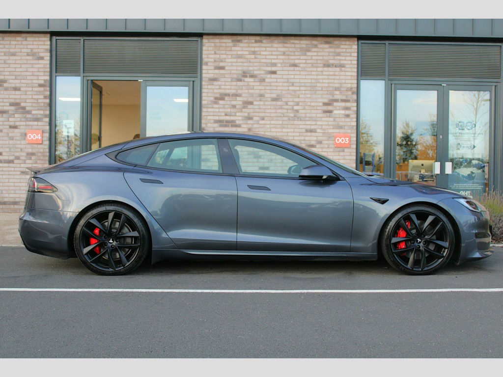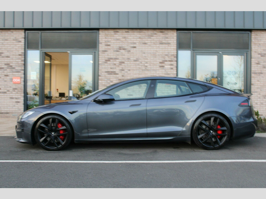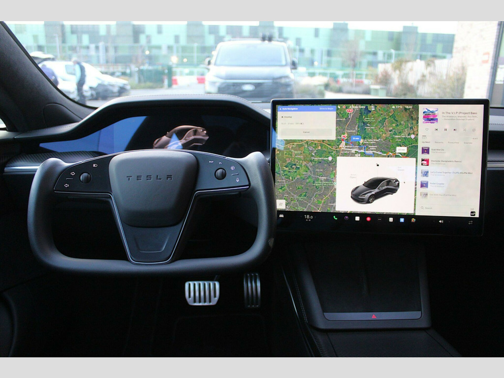 Experience the future of driving with this stunning Midnight Silver Metallic 2023 Tesla Model S Plaid AWD Tri Motor, full Black Leather interior with Carbon Fibre cockpit. This car includes Yoke Steering, Tow Package, Enhanced Autopilot with Summon and Auto park, Sub Zero Cold Weather pack which includes Heated seats all round Heated Steering Wheel and Heated Wipers. Immersive Dolby Surround Sound, Panoramic Roof, 21'' Arachnid alloy wheels, Electric tailgate, Full Electric seats, DAB Radio Bluetooth Audio and Spotify. LED Headlamps with LED day running lights. Viewing is by appointment only at our showroom in London. This car charges at a Tesla Supercharger from 10% to 80% in 20 minutes accepting 250KWH of charge. Still under Tesla Bumper to Bumper warranty until 15/12/2028 or 60K Miles and Battery and Motor warranty until 15/12/2031 or 150k Miles. We are an RAC approved dealer, All of our cars are prepared to the Highest Standards and are all fully inspected. All vehicles come with RAC roadside assist. Finance available, Credit and debit cards accepted, Nationwide delivery available. All vehicles purchased are subject to an admin fee of £150.00. Congestion charge exempt once set up, ULEZ Exempt. REF. Plaid. 11kW Capable On-Board Charger, 12v Power Outlet, 17in Touchscreen with Media - Communication - Cabin and Vehicle Controls, 19in Alloy Wheels - Tempest, ABS - Anti-lock Braking System, AM-FM-DAB+ and Internet Streaming Radio, Active Safety Technologies, Airbags - 6, Armrest - Centre, Armrest - Stowable with Integrated Storage and Wireless Charging, Audio - Ultra High Fidelity Sound, Automatic Emergency Braking, Automatic LED Headlights, Automatic Opening and Closing Rear Trunk, Automatic Rear Liftgate, Basic Autopilot, Blind Spot Warning, Cabin Conditioning, Carbon Fibre Spoiler, Carbon Fibre Upgrade, Child Door Safety Locks - Rear, Climate Control - Dual Zone, Crash Sensor - High Voltage Disconnect, Cruise Control, Cupholders - 2x Front Centre Armrest, Daytime Running Lights - LED, Door Handles - Lighted, Door Handles - Retracting, Electric Parking Brake, Electric Windows - Power One Touch - Front and Rear, Electrically Adjustable Steering Column - Tilt-Telescopic, Electronic Stability Control and Traction Control, Front LED Map Lights, Front and Side Collision Avoidance, Gaming Computer, Glass Roof, Glove Compartment, HEPA Air Filtration System, Headliner - Alcantara - Black, Heated Seats Throughout the Cabin, High Amperage Charger Upgrade, High Definition Backup Camera, High Mounted Rear Light - LED, Interior Decor - Dark Ash Wood, Keyless Entry, LED Foglights, Lane Departure Warning, Location-Aware Automatic Garage Door Opener, Ludicrous Speed Upgrade, Maps and Navigation with Real Time Traffic Information, Mirrors - Electrochromatic, Mobile App Remote, Motion Activated Intrusion Alarm, Multi-Device Bluetooth, Parcel Shelf, Parking Sensors - Front and Rear, Power Folding-Heated Side Mirrors with Memory, Power Steering - Speed Sensitive, Premium Connectivity - 3 Years Complimentary, Premium Upgrade Package, Rain Sensing Automatic Windshield Wipers, Rear LED Reading Lights, Rear Taillights - LED, Rollover Crash Sensor, Sat Nav - Onboard Maps for Europe with 7yrs Free Updates, Seat Belt Warning Sysytem - Acoustic, Seats - Driver and Front Passenger Seat Sensors, Seats - Front 12-way Electrically Adjustable, Seats - Rear 60-40 Split Fold, Seats - Rear Facing, Smart Air Suspension, Soft LED Ambient Interior Lighting, Speed Limit Display, Steering Wheel - Minimal Design, Steering Wheel - Multi-function with Tactile Controls, Subzero Weather Package, Sunvisors - Front, Supercharger Enabled, Tesla Red Brake Calipers, Three Position Dynamic LED Turning Lights, Trip Computer, Two Second Row ISOFIX Attachments for Child Seat Installations, Two USB Ports for Media and Power, Tyre Pressure Monitoring System, USB-C Fast Charging, Universal Mobile Connector, Voice Activated Controls, WiFi Internet Connectivity, Windscreen - UV and Infrared Blocking Safety Glass, Enhanced Autopilot, Premium Engineered Material - Black with Carbon Fibre, Yoke Steering, Tow Package, 21in Alloy Wheels - Arachnid.