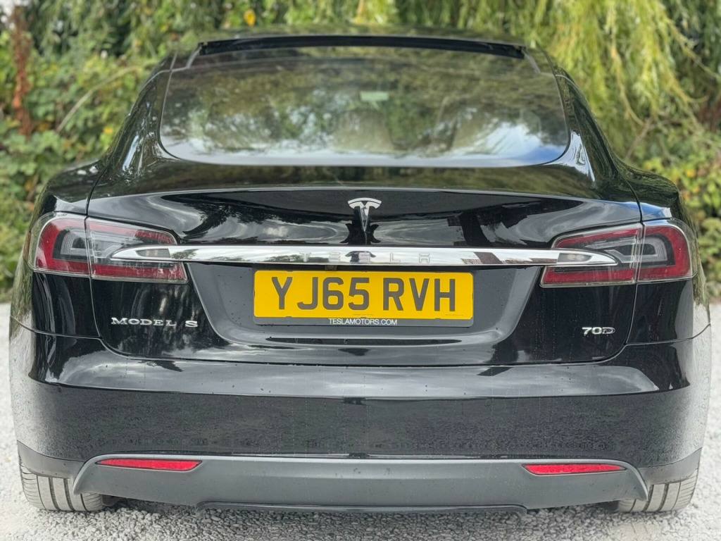 1 OWNER FROM NEW2 KEYSFREE TESLA UNLIMITED SUPERCHARGING WITH THIS CAR CCS UPGRADE19in Alloy Wheels - Cyclone - SilverVery rareValuablePanoramic RoofRareValuable19in Alloy Wheels - Pirelli Winter Wheel SetVery rareNappa Leather - Next Generation Seats - TanRareSubzero Weather PackageVery rareThis 2015 Tesla Model S 70D presents a remarkable ownership history, having been cherished by just one owner from new and boasting exceptionally low mileage for its age at only 65,999 miles. As an all electric vehicle, it offers a compelling blend of performance and practicality. This four wheel drive model is equipped with a 71 kWh battery, providing an impressive maximum range of 275 miles when new. Charging is convenient, with a full charge at home taking approximately 11 hours using a 7kW charger, while rapid public charging can replenish the battery from empty to 80% in as little as 46 minutes. Notable features include a desirable panoramic roof with an opening sunroof, stylish 19 inch silver Cyclone alloy wheels, and a separate set of 19 inch Pirelli winter wheels for year round readiness. Inside, you'll find luxurious Nappa leather upholstery on the next generation seats in a tasteful tan colour, complemented by automatic headlights for enhanced visibility.The Tesla Model S 70D stands out with its exhilarating acceleration, achieving 0 to 60 miles per hour in a swift 5.2 seconds, demonstrating its dynamic capabilities. This performance, combined with its substantial boot space, makes it a versatile choice for both daily commutes and longer journeys. The inclusion of both summer and winter wheel sets further enhances its appeal, offering flexibility and value compared to similar vehicles on the market.Currently shows ''Free Unlimited Supercharging'' in Tesla account at the time of listing.This feature is provided solely by Tesla and is subject to their terms, conditions, and continued operation.Availability of this benefit after purchase is not guaranteed by the seller. in alloy wheels - cyclone - silver, panoramic roof, 19in alloy wheels - pirelli winter wheel set, nappa leather - next generation seats - tan, subzero weather package, headliner - alcantara - white, interior decor - obeche wood matte, 12v power outlet, 17in touchscreen with media - communication - cabin and vehicle controls, 19in alloy wheels, abs - anti-lock braking system, airbags - curtain, airbags - driver, airbags - head, airbags - knee, airbags - passenger, airbags - pelvis, armrest - centre, automatic emergency braking, blind spot warning, blue charging adaptor, bluetooth connectivity, bluetooth connectivity - audio, child door safety locks - rear, climate control - dual zone, crash sensor - high voltage disconnect, cruise control, cupholders - 2x front centre armrest, daytime running lights - led, door handles - retracting, door mirrors - heated and powerfold, door mirrors - memory with driver profile, esc - electronic stability control, electric parking brake, electric windows - power one touch - front and rear, electrically adjustable steering column - tilt-telescopic, front led map lights, glove compartment, headlight cleaning system, headlights - automatic on, headlights - xenon, headliner - textile, high mounted rear light - led, isofix - 2x second row, interior decor - piano black, keyless entry, lane departure warning, mirrors - electrochromatic, mobile app remote, motion activated intrusion alarm, parcel shelf, parking sensors - front, parking sensors - rear, pollen filter, power steering - speed sensitive, radio - am-fm - internet streaming, rear led reading lights, rear taillights - led, rear view camera, rollover crash sensor, roof - solid black, sat nav - onboard maps for europe with 7yrs free updates, seat belt warning sysytem - acoustic, seats - driver and front passenger seat sensors, seats - drivers height adjustment, seats - front 12-way electrically adjustable, seats - front with memory and driver profile, seats - heated front, seats - lumbar support, seats - rear 60-40 split fold, speakers - 7, speed limit display, steering wheel - 3-spoke leather, steering wheel - multi-function with tactile controls, storage - open centre console storage area, sunvisors - front, supercharger enabled, traction control, trip computer, tyre pressure monitoring system, usb port - dual front, voice activation, wifi internet connectivity, windscreen - uv and infrared blocking safety glass, wipers - rain sensing