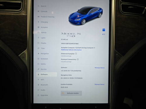 Latest Apps MCU2 Upgrade (£1500).....This 2017 Tesla Model S 75D boasts exceptionally low mileage for its age, having covered just 57,000 miles, and comes with a clear vehicle history check. As an all electric, four wheel drive vehicle, it offers a smooth and efficient driving experience. The 75kWh battery provided a maximum range of 304 miles when new, and can be fully charged at home using a 7kW charger in approximately 12 hours, or rapidly charged to 80% in just 45 minutes at a compatible public charging station. This Model S is equipped with Enhanced Autopilot, including adaptive cruise control, and Full Self-Driving Capability, alongside dual zone climate control and blind spot warning.The Tesla Model S 75D stands out with its impressive performance, achieving 0 to 60mph in a swift 5.2 seconds, demonstrating its advanced electric powertrain. This acceleration capability is a key indicator of how this vehicle performs compared to others in its class. Furthermore, the generous boot space offers practicality for everyday use and longer journeys, making it a versatile choice for those seeking an electric vehicle that combines performance, technology, and ample storage.. 11kW Capable On-Board Charger, 12v Power Outlet, 17in Touchscreen with Media - Communication - Cabin and Vehicle Controls, 19in Alloy Wheels - Slipstream, ABS - Anti-lock Braking System, AM-FM-DAB+ and Internet Streaming Radio, Airbags - 6, Armrest - Centre, Audio - Ultra High Fidelity Sound, Automatic Emergency Braking, Automatic LED Headlights, Automatic Rear Liftgate, Blind Spot Warning, Child Door Safety Locks - Rear, Climate Control - Dual Zone, Crash Sensor - High Voltage Disconnect, Cruise Control, Cupholders - 2x Front Centre Armrest, Daytime Running Lights - LED, Door Handles - Retracting, Electric Parking Brake, Electric Windows - Power One Touch - Front and Rear, Electrically Adjustable Steering Column - Tilt-Telescopic, Electronic Stability Control and Traction Control, Front LED Map Lights, Front and Side Collision Avoidance, Glass Roof, Glove Compartment, Handsfree Talking with Bluetooth, Headliner - Alcantara - Black, High Definition Backup Camera, High Mounted Rear Light - LED, Interior Decor - Dark Ash Wood, Keyless Entry, Lane Departure Warning, Mirrors - Electrochromatic, Mobile App Remote, Motion Activated Intrusion Alarm, Parcel Shelf, Parking Sensors - Front and Rear, Power Folding-Heated Side Mirrors with Memory, Power Steering - Speed Sensitive, Premium Upgrade Package, Rain Sensing Automatic Windshield Wipers, Rear LED Reading Lights, Rear Taillights - LED, Rollover Crash Sensor, Sat Nav - Onboard Maps for Europe with 7yrs Free Updates, Seat Belt Warning Sysytem - Acoustic, Seats - Driver and Front Passenger Seat Sensors, Seats - Front 12-way Electrically Adjustable, Seats - Rear 60-40 Split Fold, Smart Air Suspension, Speakers - 7, Speed Limit Display, Steering Wheel - 3-Spoke Leather, Steering Wheel - Multi-function with Tactile Controls, Storage - Open Centre Console Storage Area, Subzero Weather Package, Sunvisors - Front, Supercharger Enabled, Three Second Row ISOFIX Attachments, Trip Computer, Two USB Ports for Media and Power, Tyre Pressure Monitoring System, Universal Mobile Connector, Voice Activated Controls, WiFi Internet Connectivity, Windscreen - UV and Infrared Blocking Safety Glass, Full Self-Driving Capability, Enhanced Autopilot, Opening Panoramic Sunroof.