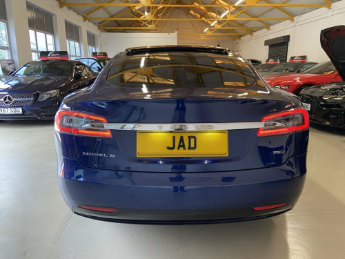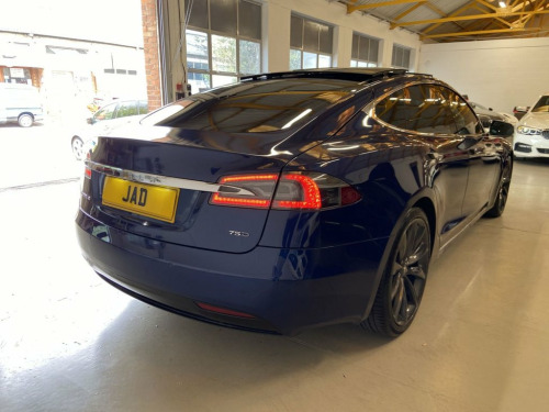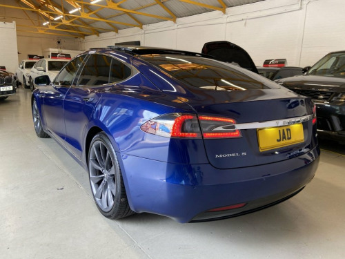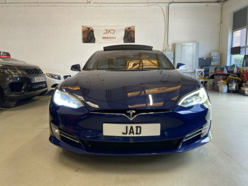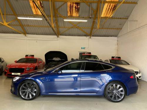 JAD MOTOR would like to proudly present this wonderful 2017 TESLA MODEL S 75D DUAL MOTOR 4WD. 2 Keys. 3 Former Owner. DESCRIPTION: Exterior: Sleek, aerodynamic, and unapologetically futuristic, this 2017 Tesla Model S 75D is presented in stunning Deep Blue Metallic, a shade that enhances the car's sculpted lines and commanding road presence. The flush door handles, full-length glass panoramic roof, and minimalist design language embody Tesla's clean and modern aesthetic. The car sits on upgraded 21" alloy wheels, complementing it's performance-oriented profile. Interior: Step into a cabin where Scandinavian simplicity meets cutting-edge innovation. The black premium leather interior is immaculately kept and features electric, memory heated front seats for those colder winter months, and soft Alcantara accents throughout. The centrepiece is Tesla's expansive 17-inch portrait touchscreen, seamlessly integrated into the minimalist dashboard, eliminating the need for traditional buttons and switches. The full-length panoramic glass roof floods the cabin with natural light, creating an airy and spacious environment for all five passengers. With generous boot space front and rear, this is a practical luxury saloon as much as it is a technological marvel. Performance & Driving Dynamics: Equipped with Tesla's Dual Motor all-wheel-drive system, the Model S 75D offers all-weather confidence and electrifying performance. Producing instant torque and nea 11kW Capable On-Board Charger, 12v Power Outlet, 17in Touchscreen with Media - Communicat, 19in Alloy Wheels - Slipstream, ABS - Anti-lock Braking System, AM-FM-DAB+ and Internet Streaming Radio, Airbags - 6, Armrest - Centre, Audio - Ultra High Fidelity Sound, Automatic Emergency Braking, Automatic LED Headlights, Automatic Rear Liftgate, Blind Spot Warning, Child Door Safety Locks - Rear, Climate Control - Dual Zone, Crash Sensor - High Voltage Disconnect, Cruise Control, Cupholders - 2x Front Centre Armrest, Daytime Running Lights - LED, Door Handles - Retracting, Electric Parking Brake, Electric Windows - Power One Touch - Fro, Electrically Adjustable Steering Column , Electronic Stabili