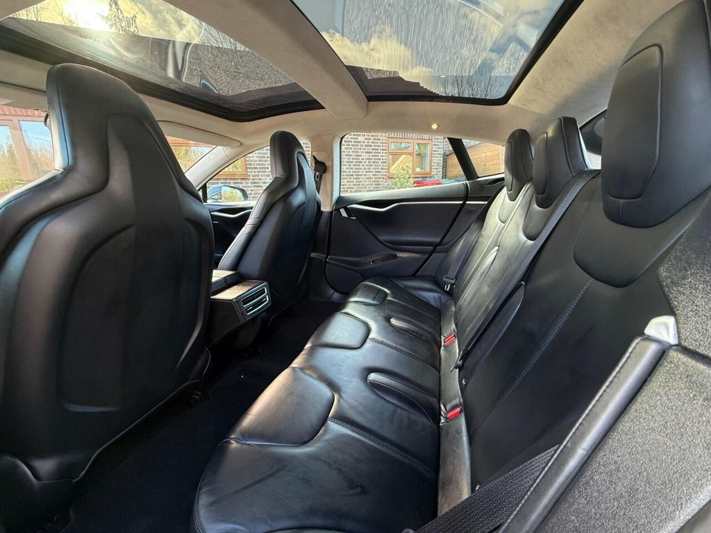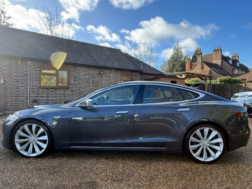This 2015 Tesla Model S 85D presents an exceptional opportunity with its remarkably low mileage of just 56,000 miles, especially for a vehicle of its age, and has been cared for by only two owners. As a fully electric vehicle, it offers a sophisticated driving experience with its Four Wheel Drive drivetrain. The 82 kWh battery provides a maximum range of 305 miles when new, and can be fully charged at home using a 7kW charger in approximately 12 hours, while rapid charging to 80% on a public charger takes just 43 minutes. Notable features include heated front seats for comfort, Bluetooth connectivity for audio streaming, Xenon headlights for clear visibility, a rear view camera to aid parking, and convenient keyless entry. The performance of this Model S is truly impressive, with an acceleration of 0 to 60 miles per hour in a swift 5.2 seconds, demonstrating its dynamic capabilities. This electric saloon also boasts a large boot space, offering practical storage solutions for everyday needs and longer journeys. These attributes, combined with its advanced electric technology and low ownership history, set this Tesla Model S apart from other vehicles in its class. 12v Power Outlet, 17in Touchscreen with Media - Communicat, 19in Alloy Wheels, ABS - Anti-lock Braking System, Airbags - Curtain, Airbags - Driver, Airbags - Head, Airbags - Knee, Airbags - Passenger, Airbags - Pelvis, Armrest - Centre, Automatic Emergency Braking, Blind Spot Warning, Blue Charging Adaptor, Bluetooth Connectivity, Bluetooth Connectivity - Audio, Child Door Safety Locks - Rear, Climate Control - Dual Zone, Crash Sensor - High Voltage Disconnect, Cruise Control, Cupholders - 2x Front Centre Armrest, Daytime Running Lights - LED, Door Handles - Retracting, Door Mirrors - Heated and Powerfold, Door Mirrors - Memory with Driver Profil, ESC - Electronic Stability Control, Electric