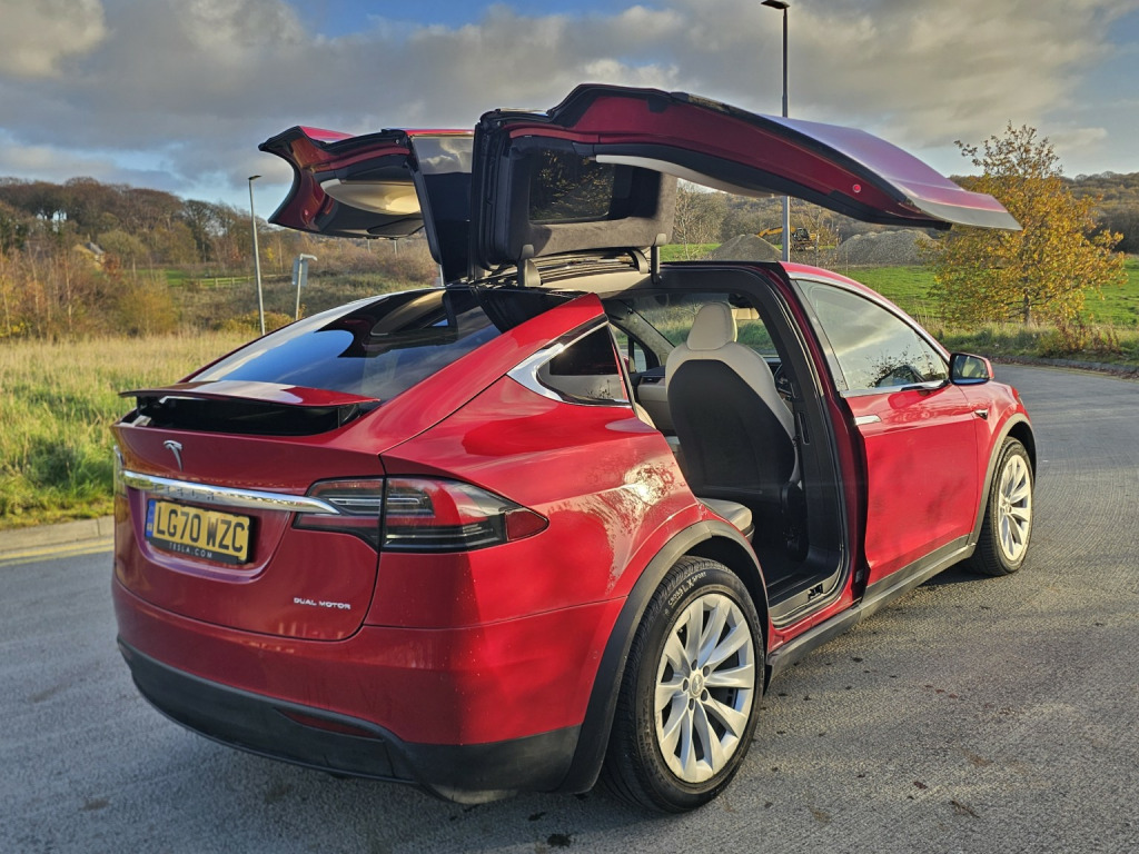 * TESLA MODEL X, * (Dual Motor) Long Range, * 2020 70 plate, * 90,000 miles, * 60,000 mile Tesla warranty remaining, * Full heated leather seats, * Raven Software, * Gullwing electric rear doors, * 4WD, * Reversing camera, * LED headlights, * Substantial 102 kWh battery, * Dual climate control, * Large 17 multimedia screen, * maximum range of 315 miles, * 4 X electric windows & mirrors, * Sat Nav / DAB radio, * 20 alloy wheels , * Electric rear spoiler, * isofix seats, * Cupholders, * Electric folding mirrors, * Cruise control,