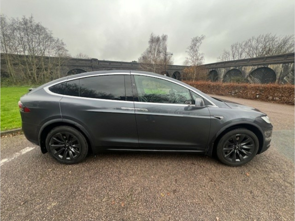 This 2019 Tesla Model X 100D (Dual Motor) SUV 5dr Electric Auto 4WDE (417 bhp) is a spacious and powerful SUV with 62000 miles on the clock, making it a reliable choice for those in need of a long-lasting vehicle. The electric motor ensures a smooth and quiet ride, while its ULEZ compliance means it's environmentally friendly and can enter Ultra Low Emission Zones hassle-free. With MOT valid until 26/01/2026, this 5-door vehicle offers ample space for passengers and cargo, with its 5 seats providing comfort for all occupants. Its dual motor setup delivers an impressive 417 bhp, providing plenty of power for any driving situation. This Tesla Model X is the perfect blend of performance, efficiency, and practicality, making it a top choice for those in the market for a reliable and eco-friendly SUV. uetooth connection, climate control, door mirrors electrically foldable, full leather, keyless go, memory seats, panoramic sunroof, rain-sensing wipers, satellite navigation, adaptive cruise control, adaptive steering, autopilot function, blind spot information, collision avoidance braking, digital instrument cluster, esp, front cross traffic camera, front view camera, lane departure warning, multi-function steering wheel, parking camera, parking sensors, power steering, rear cross traffic camera, rear parking sensor, reverse parking aid, surround view, traffic sign recognition, trip computer, abs, brake assist, child locks, isofix child seat anchor points, multiple airbags, quick-clear screen, service indicator, tyre pressure monitor, keyless entry, privacy glass, remote central locking, automated high-beam assist, automatic electric windows, electric hinged side doors - front, electric mirrors, electric tailgate, self-levelling suspension , soft close automatic, windscreen heating, electric seats, electrically adjustable passenger seat, heated front seat, heated seats, height adjustable drivers seat, lumbar support, retractable headrests, folding rear seats, rear headrests, fixed panoramic glass roof, twin sunroofs, auto lighting, front fog lights, metallic paintwork, tow pack, towbar - detachable