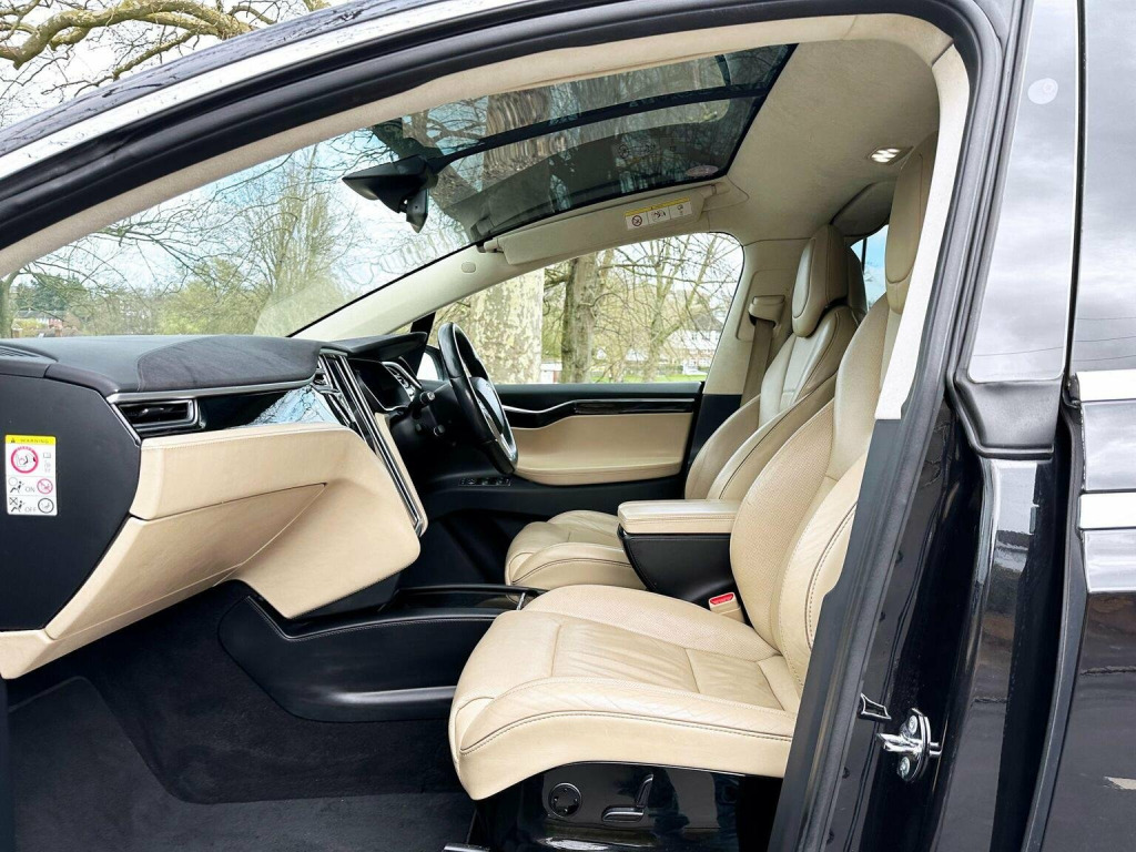 SC01 FREE SUPERCHARGING FOR LIFE (transferable) With only one owner and exceptionally low mileage for its age, this 2017 Tesla Model X 75D presents a remarkable opportunity. This all electric, Four Wheel Drive SUV boasts a 75 kWh battery offering a maximum range of 259 miles when new. Charging at home on a 7kW charger takes approximately 12 hours, while rapid public charging can replenish the battery from empty to 80% in just 45 minutes. Its impressive towing weight stands at 2268 kg, and a clear vehicle history check confirms its sound condition. Notable features include parking sensors and blind spot warning with assistance, dual zone climate control, automatic LED headlights, handsfree talking with Bluetooth, and a striking glass roof. This Tesla Model X stands out with its swift acceleration, achieving 0 to 60 mph in a mere 6.0 seconds, a performance that surpasses many vehicles in its class. The generous boot space further enhances its practicality, making it an ideal choice for families or those needing ample storage. The combination of its advanced technology, electric powertrain, and spacious interior ensures a refined and capable driving experience.