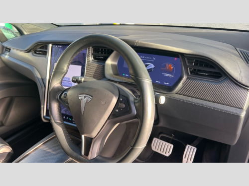 Tesla Model X Performance Ludicrous AWD 5dr Auto [7 Seat] 17" touchscreen, Acoustic seat-belt warning, Automatic rear liftgate, Autopilot Hardware (8 Cameras, 12 ultrasonic sonar, forward-facing radar), Blind spot monitoring, Bluetooth system, Custom driver profiles, Front and rear parking sensors, High definition reversing camera, Homelink (programmable garage door opener), Lane departure warning system, Maps and navigation with real time traffic based routing, Mobile App interface, Regular over the air updates add safety and navigation features, enhance performance and improve the driver experience, Roll over sensor, Service indicator, Speed sensitive power steering, Touch screen centre multi info display, Voice control system, Higher Amperage Charger Upgrade, Ludicrous speed upgrade, Smart air suspension, 5 USB ports, DAB digital radio and AM/FM radio, Premium audio system with 17 speakers and immersive sound, Satellite Radio, Wi-Fi Hotspot - 4G Enabled, Adaptive rear spoiler, Auto dimming mirrors, Auto high beam, Automatic, adaptive, auto level LED headlights, Body colour bumpers, Door sill - Branded, Electric windows with one touch open, Electrically operated heated and folding mirrors, Falcon Wing doors, Flush fitting exterior door handles, Glass roof, LED daytime running lights, LED fog lights, LED tail lights, Panoramic windscreen, Rain sensitive windscreen wipers, Rear window defroster, Self presenting front door, Side marker bumper illumination, Solar reflect windshield, Three position dynamic LED turning lights, 12 way power adjustable, heated front seats with memory and driver profile, 12V power outlet, 3 spoke multifunction steering wheel, 60/40 split fold rear seat back, 7 seat (2nd row - 3 bench seats), Auto dual-zone climate control system, Centre console removable dividers, Centre console with covered storage, Driver/passenger sunvisors and vanity mirrors, Front centre armrest with 2 cupholders, Front head restraints, Front trunk with room for luggage, Glove compartment, Heated steering wheel, HEPA air filtration system, Isofix rear child seat preparation in 2nd row, LED ambient lighting, LED map reading lights, Lighted door handles, Lumbar support, Parcel shelf, Pollen filter, Power adjustable steering wheel, Rear head restraints, Rear seat ventilation, Supercharger access, Subzero weather pack - Model X, Tow pack - Model X, 3 point front seatbelts with pre-tensioners, 5 x 3 point seatbelts, 8 airbags - head, knee and pelvis airbag in the front, 2 side curtain airbag, ABS + traction control, Active safety technologies including collision avoidance and automatic emergency braking, Brake calipers in red, EBD + Brake Assist, Electronic parking brake, Electronic stability control, Rear door child safety locks, Tyre pressure monitoring system, Anti theft alarm, Automatic keyless entry, Immobiliser, Black instrument panel