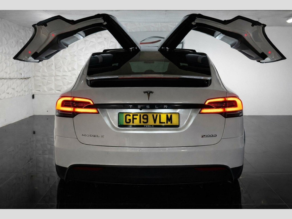 This 2019 Tesla Model X P100DL boasts a full dealership service history and a clear vehicle history check, ensuring peace of mind. This all electric, four wheel drive SUV offers impressive performance with its 102 kWh battery providing a maximum range of 336 miles when new. It features a versatile 7 seat interior, striking 22 inch Onyx Black Turbine alloy wheels, and distinctive Tesla Red brake calipers. For added convenience, it comes equipped with Full Self-Driving Capability and a Ludicrous Speed Upgrade.Experience exceptional acceleration with this Model X, capable of reaching 0-60mph in a remarkable 2.9 seconds, a performance that sets it apart from many similar vehicles. Charging is convenient, with a full charge at home taking approximately 15 hours and 30 minutes on a 7kW charger, while rapid public charging can achieve 80% in just 43 minutes. This model also offers a substantial towing weight of 2268 kg and generous boot space, making it a practical choice for families and adventurers alike. The MOT is valid until May 2026.. 12v Power Outlet, 17in Touchscreen with Media - Communication - Cabin and Vehicle Controls, 20in Alloy Wheels - Silver, ABS - Anti-lock Braking System, Active Safety Technologies, Active Spoiler, Airbags - Curtain, Airbags - Driver, Airbags - Passenger, Armrest - Centre, Audio - Ultra High Fidelity Sound, AutoPilot, Automatic LED Headlights, Automatic Rear Liftgate, Carbon Fibre Upgrade, Center Console with Quick Connection Phone Dock, Center Console with Removable Dividers, Climate Control - Dual Zone, Cruise Control, Cupholders - 2x Front Centre Armrest, DAB+ Radio Capability, Daytime Running Lights - LED, Door Mirrors - Heated and Powerfold, Electric Windows - Power One Touch - Front and Rear, Electrically Adjustable Steering Column - Tilt-Telescopic, Electronic Stability Control and Traction Control, Falcon Wing Doors, Four ISOFIX Attachments, Front LED Map Lights, Front Trunk, GPS Enabled Homelink, Glass Roof, Handsfree Talking with Bluetooth, Headliner - Alcantara - Black, High Amperage Charger Upgrade, Interior Decor - Dark Ash Wood, Keyless Entry, Ludicrous Speed Upgrade, Maps and Navigation with Real Time Traffic Information, Mirrors - Electrochromatic, Motion Activated Intrusion Alarm, Panoramic Windshield, Parking Sensors and Blind Spot Warning, Power Steering - Speed Sensitive, Premium Upgrade Package, Rain Sensing Automatic Windshield Wipers, Rear LED Reading Lights, Rear Taillights - LED, Regular Over the Air Updates, Seats - Front 12-way Electrically Adjustable, Smart Air Suspension, Steering Wheel - 3-Spoke Leather, Subzero Weather Package, Supercharger Enabled, Tesla Red Brake Calipers, Towing Package, Trip Computer, Two USB Ports for Media and Power, Tyre Pressure Monitoring System, 22in Alloy Wheels - Turbine - Onyx Black, 7 Seat Interior, Full Self-Driving Capability, Premium Engineered Material with Ventilation - Black. Full dealership history