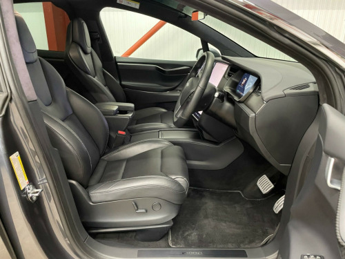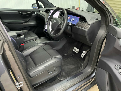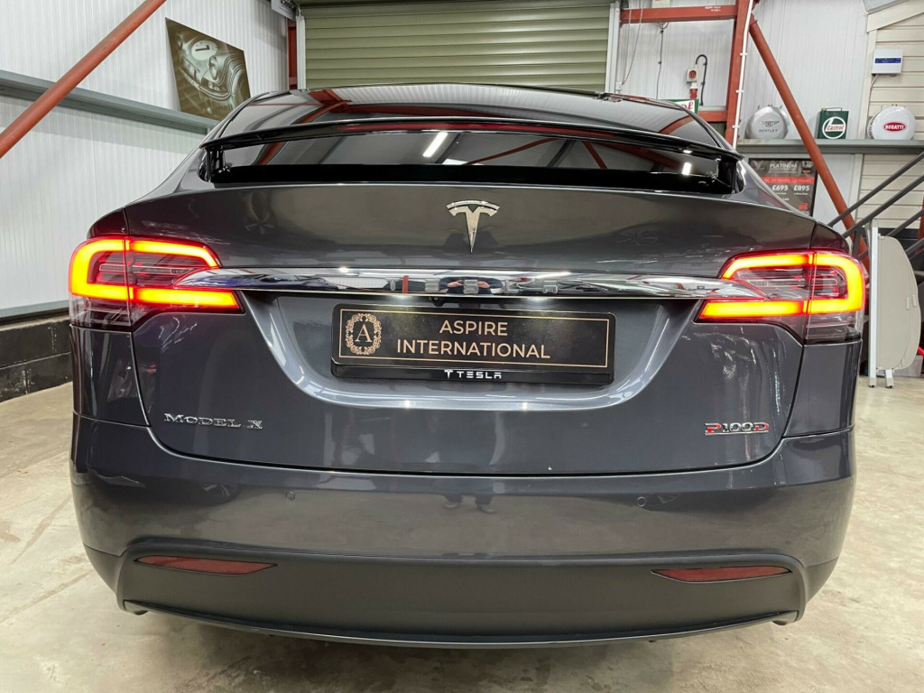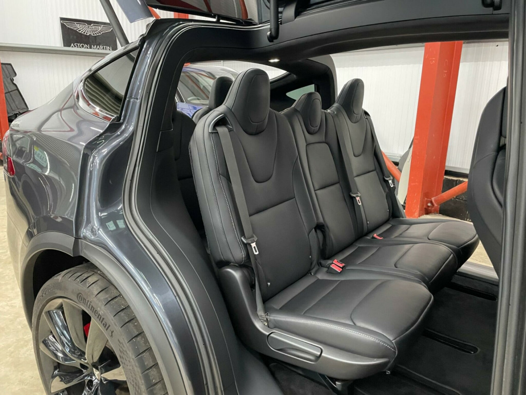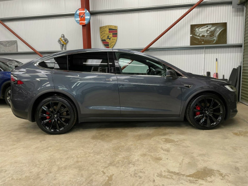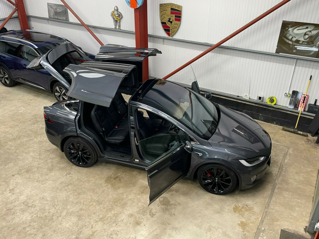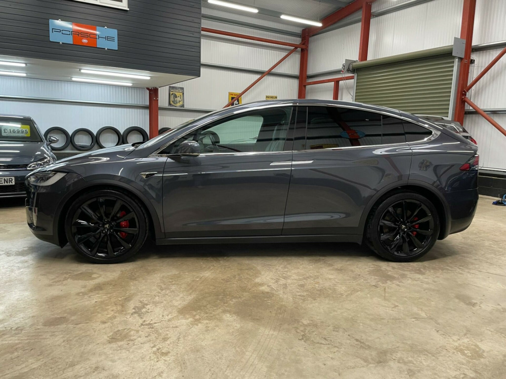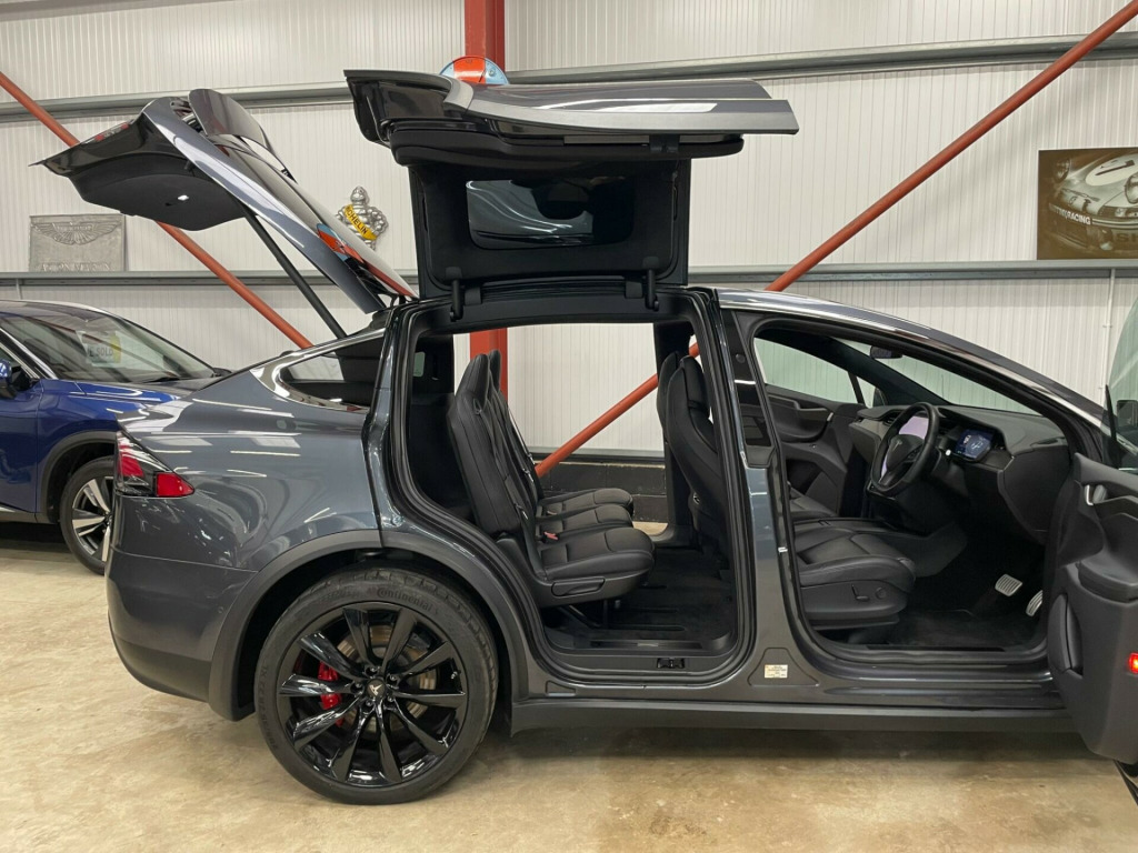 Experience exhilarating performance with this extremely rare 7 seater 2019 Tesla Model X P100DL Ludicrous offering an incredible 600+bhp, Finished in Stealth Grey Metallic with premium black leather heated electric cooled/ventilated seats complete with a heated steering wheel and detachable tow bar. A remarkable electric vehicle offering an impressive 0-60mph time of just 2.9 seconds. This Four Wheel Drive model boasts a substantial 102 kWh battery, providing a maximum range, ensuring you can travel further on a single charge. With its spacious 7 seat interior, this Model X is perfect for families or those who need versatile seating arrangements. Charging is convenient, taking approximately 15 hours and 30 minutes for a full charge at home using a 7kW charger, while rapid charging to 80% can be achieved in as little as 43 minutes at a public charging station. The vehicle also features a generous boot space, ideal for luggage or shopping.This vehicle is also provided with an independent Battery test certificate giving his model X the highest possible score putting it into a grade A Heath. This Tesla Model X P100DL stands out with its premium features, including striking 22 inch Turbine Onyx Black alloy wheels and a Carbon Fibre Upgrade for a touch of sophistication. Enhanced Autopilot, Full self drive capability complete with Adaptive Cruise Control offers a more relaxed and assisted driving experience. The Tesla Red Brake Callipers not only add a visual flair but also signify the high performance capabilities of this electric SUV. The substantial towing weight of 2268 kg means this vehicle is as practical as it is powerful and complete with a detachable tow bar and a ccs combo 2 adaptor upgrade for use with the latest gen 3 superchargers capable of handling significant loads. These highlights demonstrate how this Model X surpasses expectations for electric vehicles in its class. in alloy wheels - turbine - onyx black, 7 seat interior, premium engineered material with ventilation - black, enhanced autopilot, full self-driving capability, 12v power outlet, 17in touchscreen with media - communication - cabin and vehicle controls, 20in alloy wheels - silver, abs - anti-lock braking system, active safety technologies, active spoiler, airbags - curtain, airbags - driver, airbags - passenger, armrest - centre, audio - ultra high fidelity sound, autopilot, automatic led headlights, automatic rear liftgate, carbon fibre upgrade, center console with quick connection phone dock, center console with removable dividers, climate control - dual zone, cruise control, cupholders - 2x front centre armrest, dab+ radio capability, daytime running lights - led, door mirrors - heated and powerfold, electric windows - power one touch - front and rear, electrically adjustable steering column - tilt-telescopic, electronic stability control and traction control, falcon wing doors, four isofix attachments, front led map lights, front trunk, gps enabled homelink, glass roof, handsfree talking with bluetooth, headliner - alcantara - black, high amperage charger upgrade, interior decor - dark ash wood, keyless entry, ludicrous speed upgrade, maps and navigation with real time traffic information, mirrors - electrochromatic, motion activated intrusion alarm, panoramic windshield, parking sensors and blind spot warning, power steering - speed sensitive, premium upgrade package, rain sensing automatic windshield wipers, rear led reading lights, rear taillights - led, regular over the air updates, seats - front 12-way electrically adjustable, smart air suspension, steering wheel - 3-spoke leather, subzero weather package, supercharger enabled, tesla red brake calipers, towing package, trip computer, two usb ports for media and power, tyre pressure monitoring system