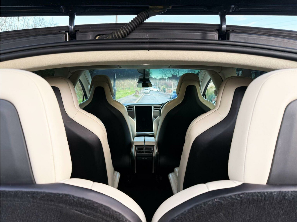Synergy Motors Are Pleased To Present This Fantastic 6 Seat P100DL Performance Ludicrous Tesla Model X. Tesla Drive Unit & Battery Warranty Till February 2027 with No Mileage Limit, Black Cream Interior, Sub-Zero Weather Pack - 6x Heated Seats and Heated Steering Wheel, Ultra Hi-Fidelity Audio / Immersive Sound, Enhanced Autopilot Features Enabled inc distance cruise control, Summon, lane steering and Safety Features using 8 cameras, Premium Interior & Lighting Upgrade, Alcantara Headliner, Fog Lights, Parking Sensors, Full Vegan Leather Trim, MCU 2 With Theatre Mode - YouTube & Netflix, CCS Charging Upgrade inc Adapter, Panoramic Glass Roof. This Vehicle Has Smart Air Suspension, which can change the Height Of Car When Required, You Can Then Choose To Remember The Location, So It can Raise Itself When You Are Next At The Same Location. 22 Alloy Wheels finished in Onyx Black, The HomeLink Garage & Gate Opener Will Also Remember Your Location And Open These When You Return. Tesla uses a 17in Capacitive Touchscreen with Media, Communication, Cabin and Vehicle Controls, Which has Up To Date Google Maps inc Satellite Maps with Live Traffic Information. Bluetooth Audio Streaming, Internet Radio, DAB, USB and Radio Options. Front & Rear Parking Sensors Combined With a High Definition Rear View Reverse Camera with side view