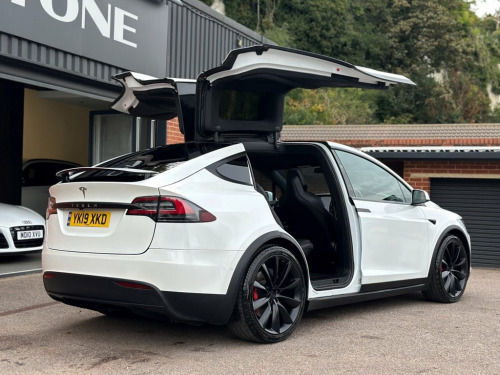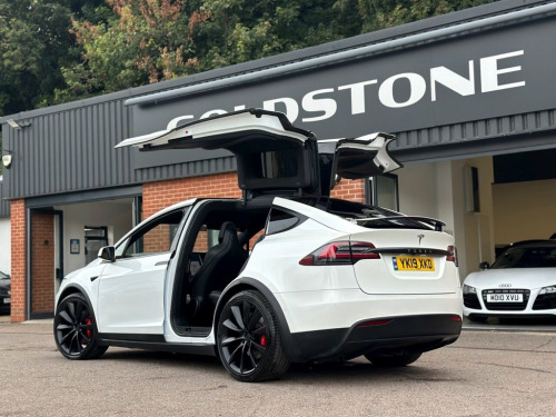 STUNNING MODEL X LUDICROUS | 6 SEATER | PEARL WHITE | FULL SELF DRIVING CAPABILITY | SMART AIR SUSPENSION | POWER FALCON DOORS | PREMIUM INTERIOR WITH CARBON INLAYS | PANORAMIC ROOF | ALCANTARA HEADLINING | MUSIC STREAMING | CHARGING CABLE | A VERY RARE TOP OF THE RANGE MODEL X | Goldstone Cars is proud to offer this exceptional 2019 Tesla Model X Ludicrous, finished in elegant Pearl White and boasting an incredibly rare 6-seat configuration. This top-of-the-range Model X blends blistering performance with cutting-edge technology and practicality—an incredibly rare find in the premium EV market. Key Features: Ludicrous+ Mode – Extreme acceleration and unmatched all-electric performance 6 Seater Layout – A rare and highly sought-after configuration, ideal for families or those needing maximum space Full Self-Driving Capability – The latest in Tesla's autonomous driving tech, including Navigate on Autopilot Smart Air Suspension – Automatically adjusts ride height for comfort, handling, and efficiency Power Falcon Wing Doors – Effortless access with iconic upward-opening rear doors Premium Interior with Carbon Fibre Inlays – A refined, high-end cabin finish with sporty detailing Panoramic Roof – An expansive glass roof offering a bright and open driving experience Alcantara Headlining – Subtle luxury that enhances the interior ambiance Music Streaming – Integrated entertainment with premium sound This Full Self-Driving Capability, 22in Alloy Wheels - Turbine - Onyx Black, 6 Seat Interior, Pearl White, 12v Power Outlet, 17in Touchscreen with Media - Communicat, 20in Alloy Wheels - Silver, ABS - Anti-lock Braking System, Active Safety Technologies, Active Spoiler, Airbags - Curtain, Airbags - Driver, Airbags - Passenger, Armrest - Centre, Audio - Ultra High Fidelity Sound, AutoPilot, Automatic LED Headlights, Automatic Rear Liftgate, Carbon Fibre Upgrade, Center Console with Quick Connection Pho, Center Console with Removable Dividers, Climate Control - Dual Zone, Cruise Control, Cupholders - 2x Front Centre Armrest, DAB+ Radio Capability, Daytime Running Lights - LED, Door Mirrors - Heated