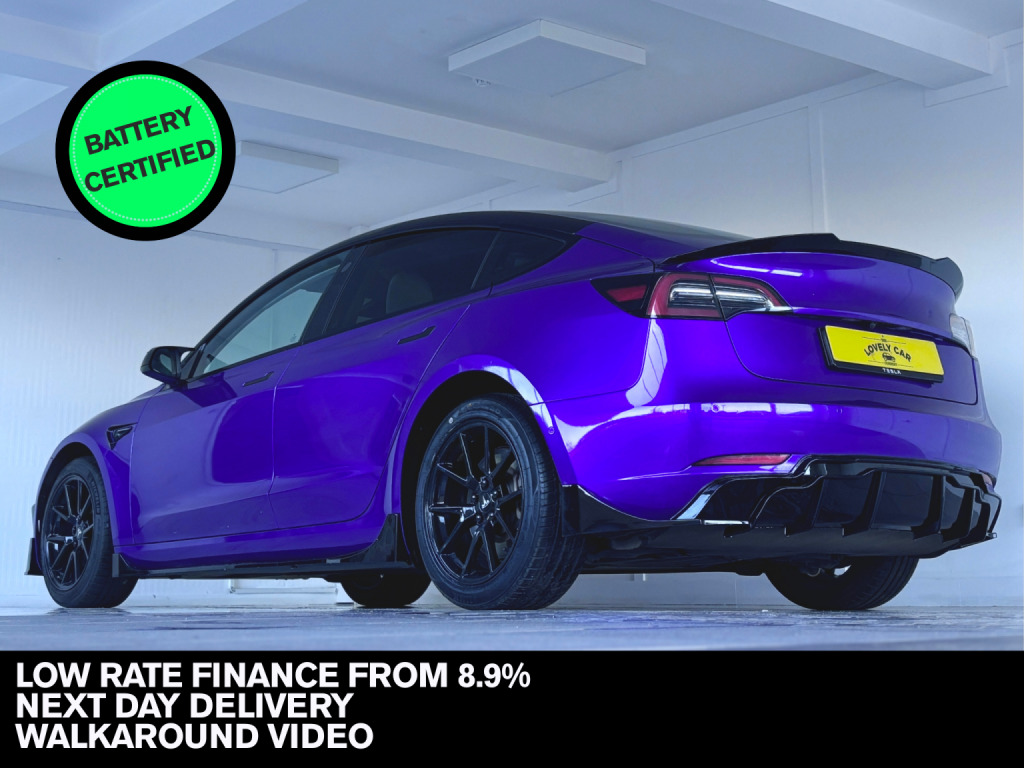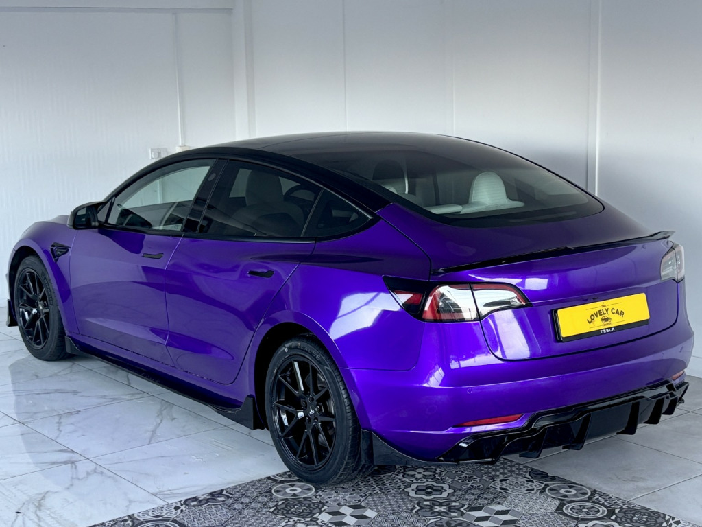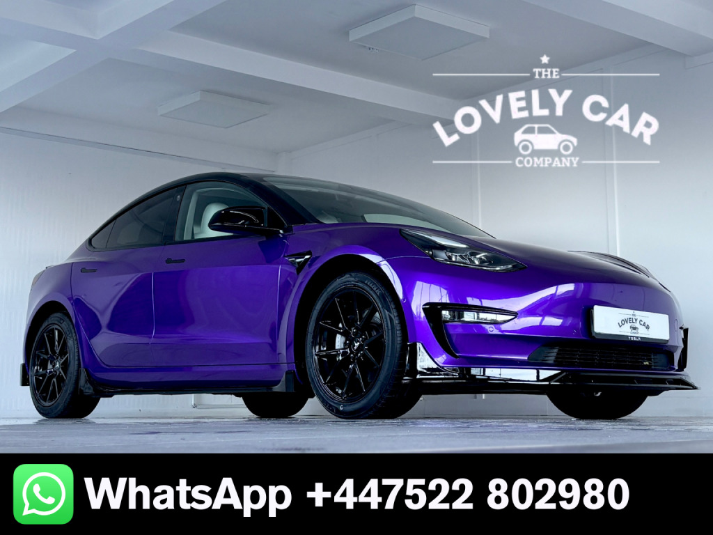 The Lovely Car Company are excited to offer this 2021 Tesla Model 3, having just been professionally wrapped in Gloss purple, this really does stand out from the crowd. With its impressive performance and low running costs, this car is perfect for those looking for a reliable and affordable vehicle. , This Tesla Model 3 comes equipped with a range of features, including, 360 degree cameras, heated electric seats, sat nav, and reversing aid. The panoramic glass roof provides a bright and airy feel to the interior, making it a pleasure to drive. , One of the standout features of this car is its fantastic range of over 300 miles per full charge, making it ideal for those who want to reduce their carbon footprint without sacrificing performance. Plus, with its Electric engine, youll enjoy lower running costs and reduced maintenance. , At The Lovely Car Company, we understand that buying a car can be a significant investment, which is why were happy to offer finance options with affordable monthly payments. Our experienced team will work with you to find a payment plan that suits your budget and lifestyle. , All of our cars are prepared at our in-house garage, where they undergo a thorough inspection and preparation process to ensure they meet our high standards. This means you can drive away in confidence, knowing your new car has been carefully checked and maintained. , If youre looking for a reliable, affordable, and environmentally friendly car, look no further than this 2021 Tesla Model 3. Contact us today to arrange a viewing and take the first step towards owning your dream car. , (£399 admin charge for arranging finance externally), , We do this because many of our customers prefer the clean, original Tesla look — while others like to add the kit for a sportier appearance. The choice is completely yours! The body kit can be added at your request for an additional cost — please contact us for full details or to see photos of the car in standard form.