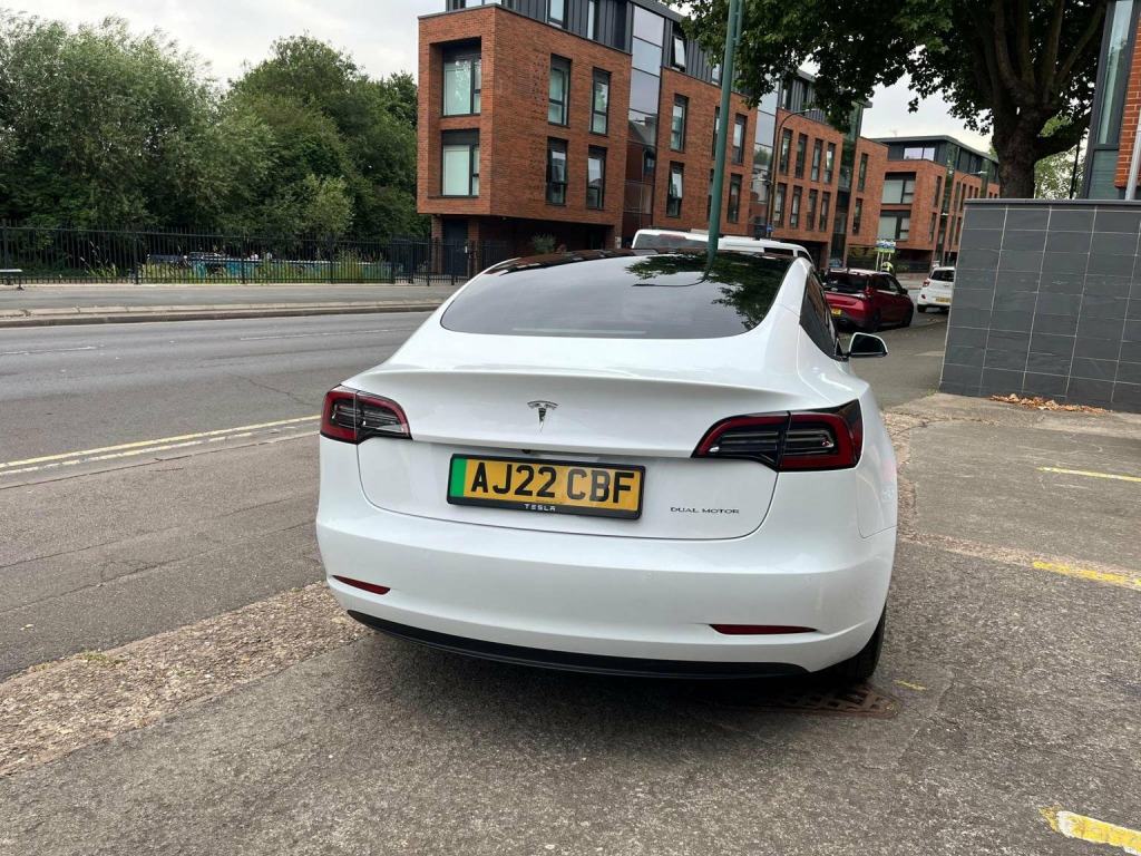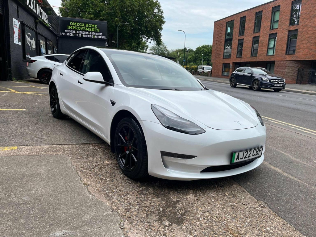 AJ22CBF-Tesla Model 3 (Dual Motor) Long Range Auto 4WDE 4dr. *INSTANT TESLA APP ACCESS ON COMPLETION*, CAR FEATURES INCLUDE, ELECTRIC WINDOWS, NAVIGATION, HEAT PUMP, BLACK LEATHER INTERIOR, REVERSE CAMERA, HEATED SEATS, ELECTRIC SEATS, PANORAMIC ROOF, AMD RYZEN. MANUFACTURES WARRANTY 22/06/2026 or 50,000 MILES, BATTERY WARRANTY 22/06/2030 or 100,000*, * *BUY WITH CONFIDENCE**, **HPI CLEAR**, ** Evening And Weekend Viewings Also Available**, **All Major Debit Card Payments Accepted**, **Vat Registered**Part exchange Welcome**No offers please**delivery available**Finance available**, With only one previous owner and low mileage of just 26943, this 2022 Tesla Model 3 Long Range is an appealing choice. As an electric vehicle with four-wheel drive and a Long Range trim, it offers a blend of performance and efficiency. The vehicle is equipped with practical features such as front parking sensors with parking assistance, 12-way power-adjustable front and rear heated seats, and a park assist camera. The fixed panoramic glass roof enhances the driving experience, while blind spot information provides added safety on the road. The Model 3 boasts a large boot space, making it more practical than similar vehicles. When new, the battery had a maximum range of 389 miles, showing its potential for long journeys. Charging at home using a 7kW charger takes approximately 12 hours for a full charge. For quicker top-ups, the fastest public charging time from empty to 80% is just 26 minutes.