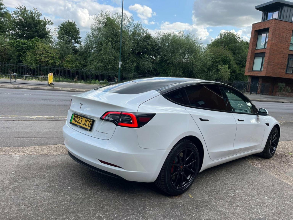 MD23JCO -Tesla Model 3 (Dual Motor) Long Range Auto 4WDE 4dr. *INSTANT TESLA APP ACCESS ON COMPLETION*, CAR FEATURES INCLUDE, ELECTRIC WINDOWS, NAVIGATION, HEAT PUMP, BLACK LEATHER INTERIOR, REVERSE CAMERA, HEATED SEATS, ELECTRIC SEATS, PANORAMIC ROOF, AMD RYZEN. MANUFACTURES WARRANTY 14/06/2026 or 50,000 MILES, BATTERY WARRANTY 14/06/2030 or 100,000*, * *BUY WITH CONFIDENCE**, **HPI CLEAR**, ** Evening And Weekend Viewings Also Available**, **All Major Debit Card Payments Accepted**, **Vat Registered**Part exchange Welcome**No offers please**delivery available**Finance available**, With only one previous owner and very low mileage of just 8130 miles for a 2023 vehicle, this Tesla Model 3 Long Range is a superb example of this popular electric car. Boasting four-wheel drive and a substantial 78 kWh battery, this Long Range trim offers a blend of performance and efficiency. The interior is well-appointed with 12-way power-adjustable front and rear heated seats, ensuring comfort for all passengers, complemented by a 2-zone climate control system. The fixed panoramic glass roof enhances the sense of space and light within the cabin, while the LED headlights provide excellent visibility. For added convenience, it features inductive charging mats for two smartphones, including wireless phone charging capability. This Model 3 offers a large boot space, making it more practical than similar vehicles. The battery provides a maximum range of 389 miles when new, allowing for longer journeys with fewer stops. Charging at home using a 7kW charger takes approximately 12 hours for a full charge. For quicker top-ups, the fastest public charging stations can charge the battery from empty to 80% in just 26 minutes.