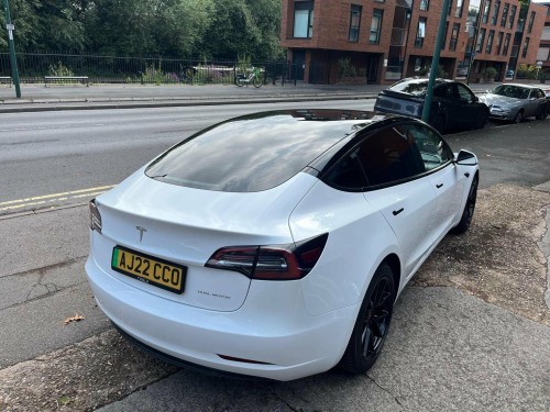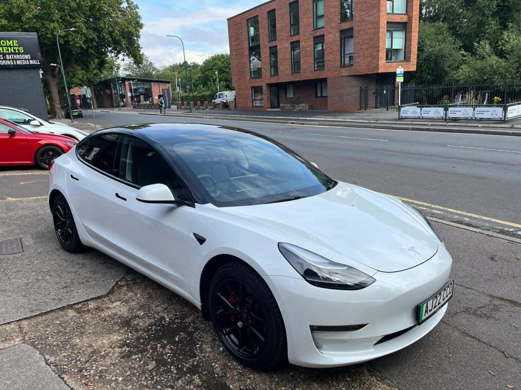 AJ22CCO -Tesla Model 3 (Dual Motor) Long Range Auto 4WDE 4dr, *INSTANT TESLA APP ACCESS ON COMPLETION*, CAR FEATURE INCLUDE, ELECTRIC WINDOWS, NAVIGATION, HEAT PUMP, BLACK LEATHER INTERIOR, REVERSE CAMERA, HEATED SEATS, ELECTRIC SEATS, PANORAMIC ROOF, AMD RYZEN. MANUFACTURES WARRANTY 23/06/2026 or 50,000 MILES, BATTERY WARRANTY 23/06/2030 or 100,000*, * *BUY WITH CONFIDENCE**, **HPI CLEAR**, ** Evening And Weekend Viewings Also Available**, **All Major Debit Card Payments Accepted**, **Vat Registered**Part exchange Welcome**No offers please**delivery available**Finance available**, With only one previous owner and low mileage of just 26651, this 2022 Tesla Model 3 Long Range is an appealing choice. As an electric vehicle with four-wheel drive, this Model 3 Long Range offers a smooth and responsive driving experience. It comes equipped with adaptive cruise control, including cruise control, Bluetooth connectivity, and front and rear parking sensors to assist with maneuvering. Safety is enhanced with blind spot monitoring. The large boot space makes this vehicle more practical than similar vehicles, offering ample room for luggage and shopping. The impressive new battery range of 389 miles means fewer stops on long journeys. Charging at home using a 7kW charger takes approximately 12 hours for a full charge. For quicker top-ups, the fastest public charging time from empty to 80% is just 26 minutes.