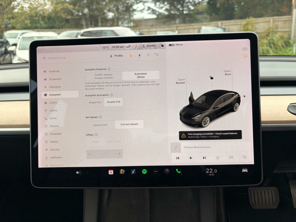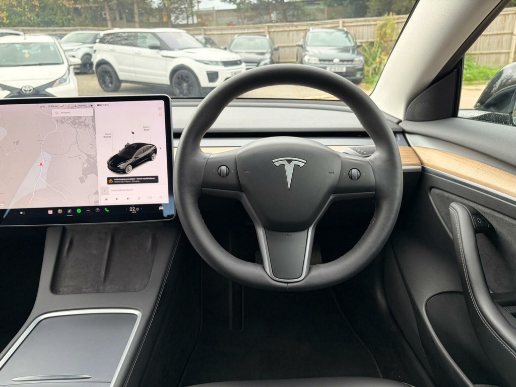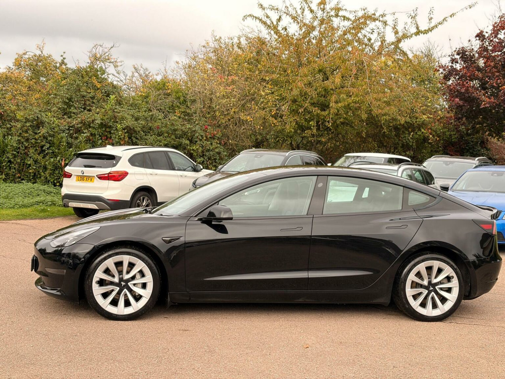 1 year MOT, HPI clear, VAT Qualifying, This 2021 Tesla Model 3 Long Range boasts a clear vehicle history and has had only one owner from new. As an electric vehicle with Four Wheel Drive, it offers an impressive battery capacity of 78 kWh, providing a maximum range of 360 miles when new. Charging at home on a 7kW charger takes approximately 12 hours for a full charge, while rapid public charging can take it from empty to 80% in just 26 minutes. This Model 3 also comes equipped with a heated steering wheel, blind spot information system, rear parking sensors with assistance, Bluetooth connectivity, and a 2 zone climate control system. The Long Range variant of this Tesla Model 3 stands out with its exceptional range of 360 miles, a key advantage over many other electric vehicles. Furthermore, the generous boot space offers practical storage solutions for everyday needs and longer journeys. This combination of extended driving capability and ample room makes it a compelling choice for those seeking an efficient and versatile electric car.