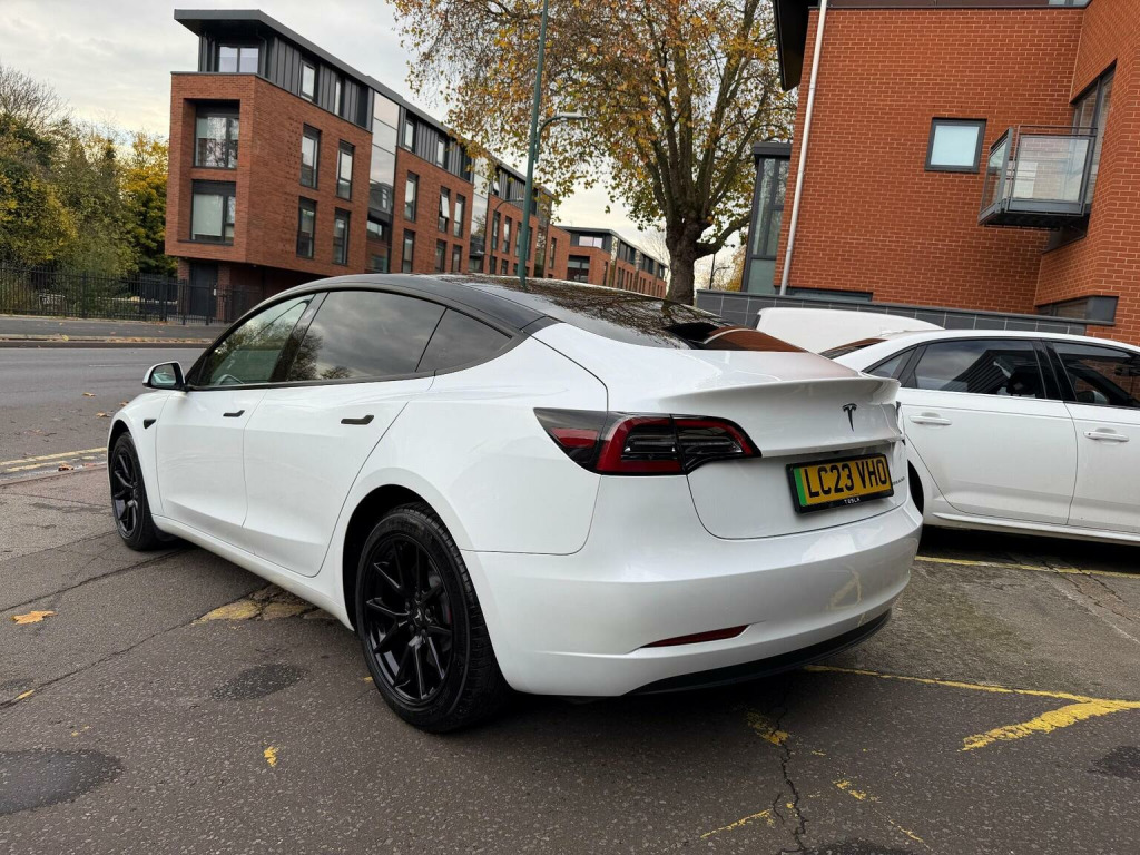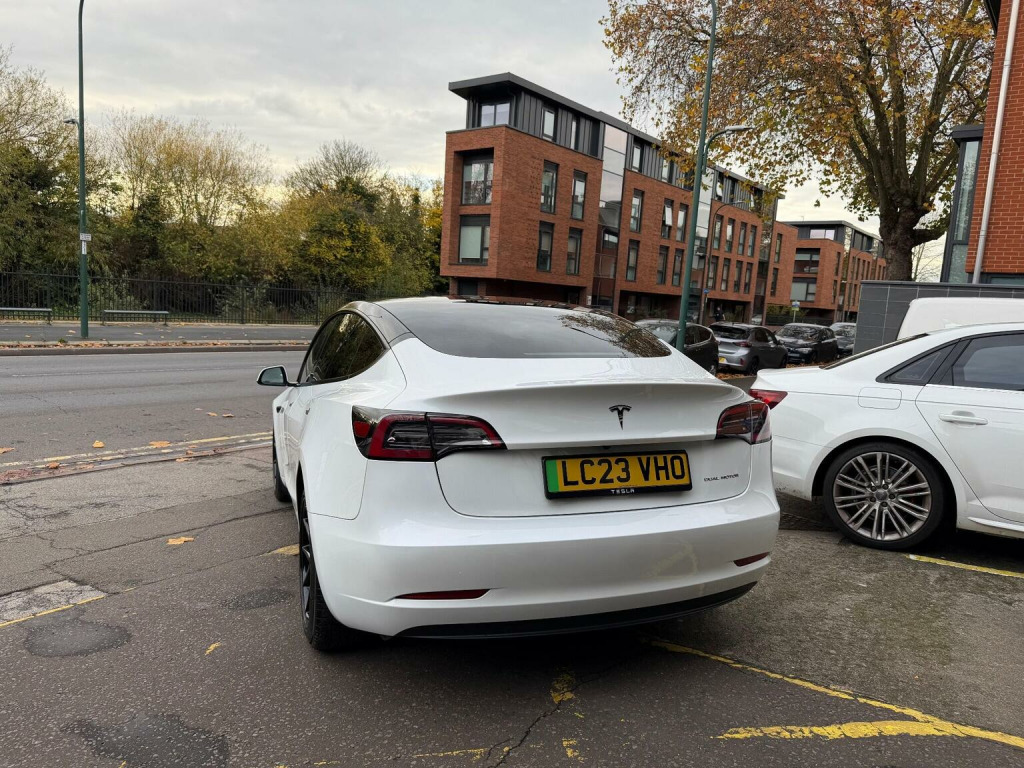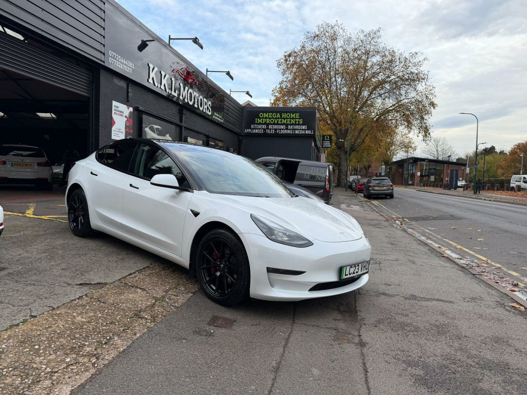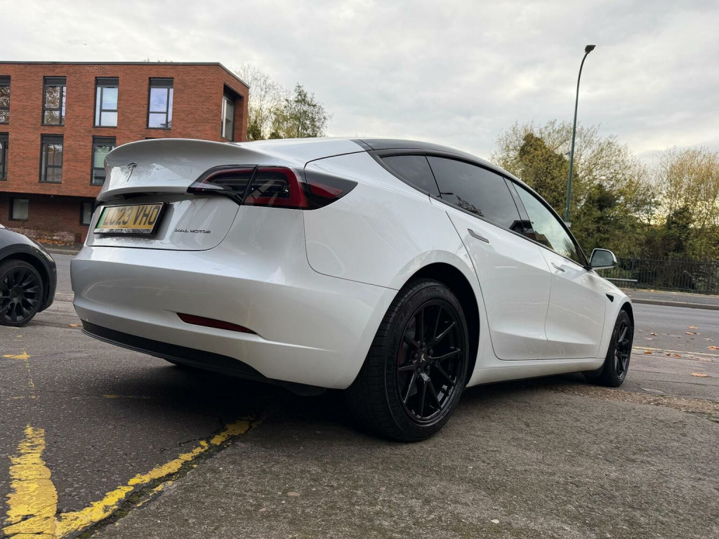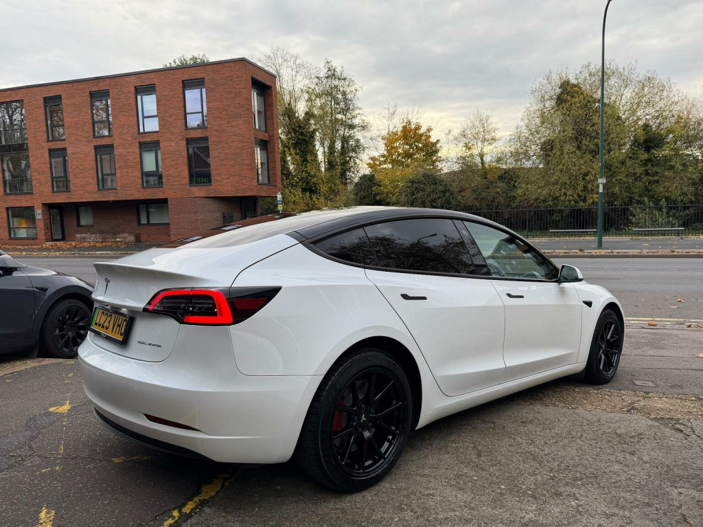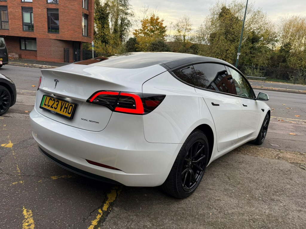 Tesla Model 3 (Dual Motor) Long Range Auto 4WDE , *AMD RYZEN*VAT Q*, CAR FEATURES INCLUDE, ELECTRIC WINDOWS, NAVIGATION, REVERSE CAMERA,BLACK INTERIOR, HEATED SEATS, ELECTRIC SEATS,PANORAMIC ROOF, AMD RYZEN PROCESSOR. *MANUFACTURES WARRANTY 30/06/2027 OR 50,000 MILES*BATTERY AND UNIT DRIVE WARRANTY TILL 30/06/2031 or 100,000 MILES*, * *BUY WITH CONFIDENCE**, **, *INSTANT TESLA APP ACCESS ON COMPLETION*, *AMD RYZEN*VAT Q*, CAR FEATURES INCLUDE, ELECTRIC WINDOWS, NAVIGATION, REVERSE CAMERA,BLACK INTERIOR, HEATED SEATS, ELECTRIC SEATS,PANORAMIC ROOF, AMD RYZEN PROCESSOR. *MANUFACTURES WARRANTY 30/2027 OR 50,000 MILES*BATTERY AND UNIT DRIVE WARRANTY TILL 02/09/2025 or 100,000 MILES*, * *BUY WITH CONFIDENCE**, **HPI CLEAR**, ** Evening And Weekend Viewings Also Available**, **All Major Debit Card Payments Accepted**, **Vat Registered**Part exchange Welcome**No offers please**delivery available**Finance available** , This 2023 Tesla Model 3 Long Range presents a superb ownership opportunity, having had only one owner since new. As an electric vehicle, it boasts a four wheel drive drivetrain and a substantial 78 kWh battery, offering an impressive maximum range of 389 miles. This Model 3 also features convenient inductive charging mats for two smartphones, keyless entry and go, and a fixed panoramic glass roof. For added safety and awareness, it includes blind spot information with blind spot assistance, and you can enjoy a comfortable cabin environment thanks to the two zone climate control. The highlights of this Tesla Model 3 Long Range truly set it apart. Experience exhilarating acceleration with a 0 to 60 mph time of just 4.2 seconds, demonstrating its dynamic performance. Charging is both flexible and rapid; a full charge at home using a 7kW charger takes approximately 12 hours, while the fastest public charging can take the battery from empty to 80% in a mere 26 minutes. Furthermore, the generous boot space provides ample room for all your luggage and shopping needs, making this Model 3 a practical and advanced choice.