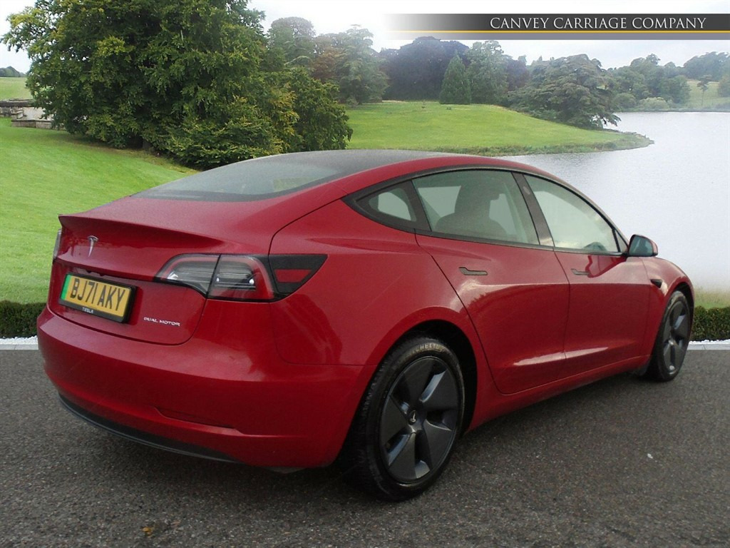 This 2021 Tesla Model 3 Long Range boasts a single owner from new, offering a pristine example of electric motoring. As a Long Range variant, it features a substantial 78 kWh battery, providing an impressive maximum range of 360 miles when new. This all electric, four wheel drive vehicle is equipped with a suite of modern conveniences, including inductive charging mats for two smartphones, a heated steering wheel, and front heated seats for enhanced comfort. Parking is made easier with a front park assist camera, and seamless connectivity is assured through its Bluetooth connection. Experience exceptional performance with this Model 3, capable of accelerating from 0 to 60 mph in a swift 4.2 seconds, a testament to its electric powertrain. The charging capabilities are equally impressive, with a full charge achievable at home in approximately 12 hours using a 7kW charger, and a rapid charge to 80% possible in just 26 minutes at a public charging station. Beyond its dynamic capabilities and charging convenience, this Tesla Model 3 also offers generous boot space, making it a practical choice for everyday use and longer journeys alike. 12-Way Power Adjustable Front and Rear Heated Seats,15in Touchscreen with Onboard Maps and Navigation,18in Alloy Wheels - Aero,2 Zone Climate Control,3x3 Point Rear Seat Belts,60-40 Split Folding Rear Seats,ABS - Anti-lock Braking System,Adaptive Cruise Control,Adaptive Steering,Additional USB-A Port - Glove Compartment,Air Conditioning,Airbags - Curtain,Airbags - Driver,Airbags - Passenger,Airbags - Side,Ambient - Interior Lighting,Audio Remote Control,Auto Dimming - Power Folding - Heated Side Mirrors,Automated High-Beam Assist,Automatic Emergency Braking,Autopilot Function,Blind Spot Information,Bluetooth Connection,Body Coloured Bumpers,Centre Console with Storage - 4 USB Ports and Docking for 2 Smartphones,Collision Avoidance,Custom Driver Profiles,DVD,Daytime Running Lights - LED,Digital Radio,Electric Hinged Side Doors - Front,Electric Hinged Side Doors - Rear,Electrically Adjustable Drivers Seat,Electrically Adjustable Passenger Seat,Electrically Adjustable Steering Column - Tilt-Telescopic,Electronic Stability Control and Traction Control,Exterior Satin Black,Fixed Panoramic Glass Roof,Front Armrest,Front Cross Traffic Camera,Front Electric Windows,Front Fog Lights,Front Head Restraints,Front Parking Sensor,Graphite Finish Seat Controls,Heat Pump,Heated Steering Wheel,Height Adjustable Drivers Seat,In-Car Internet Streaming Music and Media,Inductive Charging Mats - Two Smartphones,Interior Carpeting,Interior Floor Mats,Internet Browser,Internet Connection,Isofix Child Seat Anchor Points,Keyless Entry and Remote Control with App,Keyless Go,LED Foglights,LED Headlights,Lane Departure Warning,Location-Aware Automatic Garage Door Opener,Map and Reading Lights,Matt Finish Trim,Media Storage,Metalised Scroll Wheels - Steering Wheel,Mobile Phone App Interface,Navigation System,Non-Safety-Critical Software Updates over Cellular,OEM Sound System,Park Assist Camera,Power Steering - Speed Sensitive,Powerlift Trunk,Premium Audio - 14 Speakers - 1 Subwoofer - 2 Amps and Immersive Sound,Radio - AM-FM - Internet Streaming,Rear Cross Traffic Camera,Rear Electric Windows,Rear Headrests,Rear Light - LED,Rear Parking Sensor,Remote Central Locking,Reverse Parking Aid,Satellite-View Maps with Live Traffic Visualisation and Navigation,Satin Black Sill Plates,Seats - Heated Front,Service Indicator,Software Updates over WIFI,Steer-By-Wire Technology,Steering Wheel Mounted Controls,Telephone,Tinted Glass Roof with Ultraviolet and Infrared Protection,Traction Control,Traffic Sign Recognition,Trip Computer,Two Additional USB-C Port,Type 2 Public Charging Connector,Tyre Pressure Monitoring System,USB-iPod Interface,Voice Activated Controls,Wi-Fi and LTE Internet Connectivity