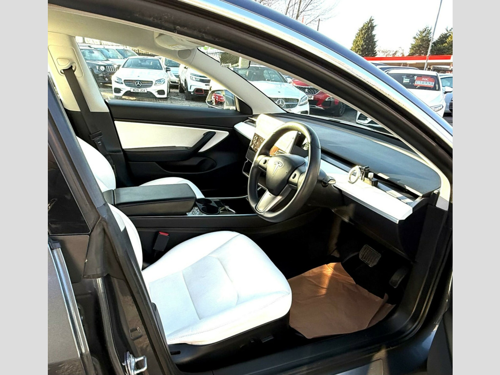 This 2020 Tesla Model 3 Long Range offers an impressive electric driving experience with a substantial new battery range of 348 miles. As a Four Wheel Drive electric vehicle, it boasts a 78 kWh battery, providing ample power and efficiency. Charging at home on a 7kW charger will take approximately 12 hours for a full charge, while rapid public charging can take you from empty to 80% in just 26 minutes. Inside, you'll find comfort and convenience with 12 way power adjustable front and rear heated seats, a fixed panoramic glass roof, and Bluetooth connectivity for seamless entertainment and communication. Parking is made easier with rear parking sensors, and the cabin remains a pleasant temperature thanks to its air conditioning system.The Long Range variant of this Tesla Model 3 stands out with its exceptional battery maximum range of 348 miles when new, demonstrating its capability for longer journeys compared to many other electric vehicles. This extended range, combined with the efficient electric powertrain and Four Wheel Drive system, ensures a confident and capable drive. The inclusion of features like heated seats and a panoramic glass roof enhances the overall comfort and enjoyment for all occupants, making this Model 3 a well equipped and desirable electric car. -way power adjustable front and rear heated seats, 15in touchscreen with onboard maps and navigation, 18in alloy wheels - aero, 2 zone climate control, 3x3 point rear seat belts, 60-40 split folding rear seats, abs - anti-lock braking system, adaptive cruise control, adaptive steering, air conditioning, airbags - 6, airbags - curtain, airbags - driver, airbags - passenger, airbags - side, ambient - interior lighting, audio remote control, auto dimming - power folding - heated side mirrors, automated high-beam assist, automatic emergency braking, autopilot function, blind spot information, bluetooth connection, body coloured bumpers, centre console with storage - 4 usb ports and docking for 2 smartphones, collision avoidance, custom driver profiles, dvd, daytime running lights - led, digital radio, electric hinged side doors - front, electric hinged side doors - rear, electrically adjustable drivers seat, electrically adjustable passenger seat, electrically adjustable steering column - tilt-telescopic, electronic stability control and traction control, fixed panoramic glass roof, front armrest, front cross traffic camera, front electric windows, front fog lights, front head restraints, front parking sensor, front trunk and interior floor mats, height adjustable drivers seat, in-car internet streaming music and media, interior carpeting, internet browser, internet connection, isofix child seat anchor points, keyless entry and remote control with app, keyless go, led foglights, led headlights, lane departure warning, location-aware automatic garage door opener, map and reading lights, media storage, mobile phone app interface, navigation system, non-safety-critical software updates over cellular, oem sound system, park assist camera, power steering - speed sensitive, premium audio - 14 speakers - 1 subwoofer - 2 amps and immersive sound, radio - am-fm - internet streaming, rear cross traffic camera, rear electric windows, rear headrests, rear parking sensor, remote central locking, reverse parking aid, satellite-view maps with live traffic visualisation and navigation, seats - heated front, service indicator, software updates over wifi, steer-by-wire technology, steering wheel mounted controls, telephone, tinted glass roof with ultraviolet and infrared protection, traction control, traffic sign recognition, trip computer, type 2 public charging connector, tyre pressure monitoring system, usb-ipod interface, voice activated controls, wi-fi and lte internet connectivity