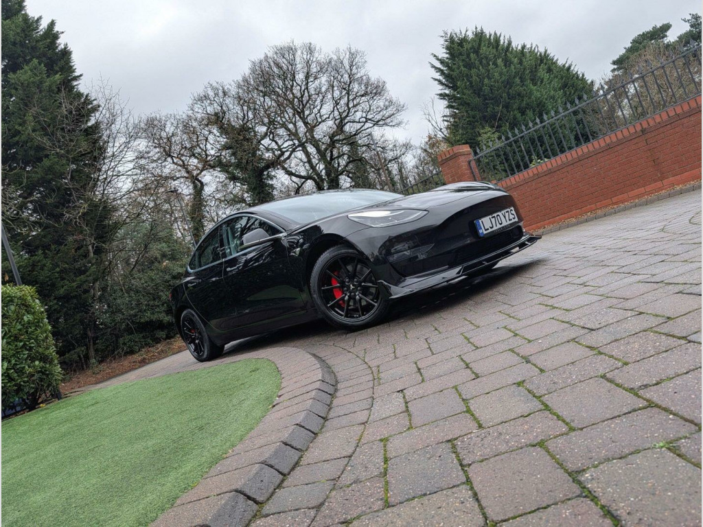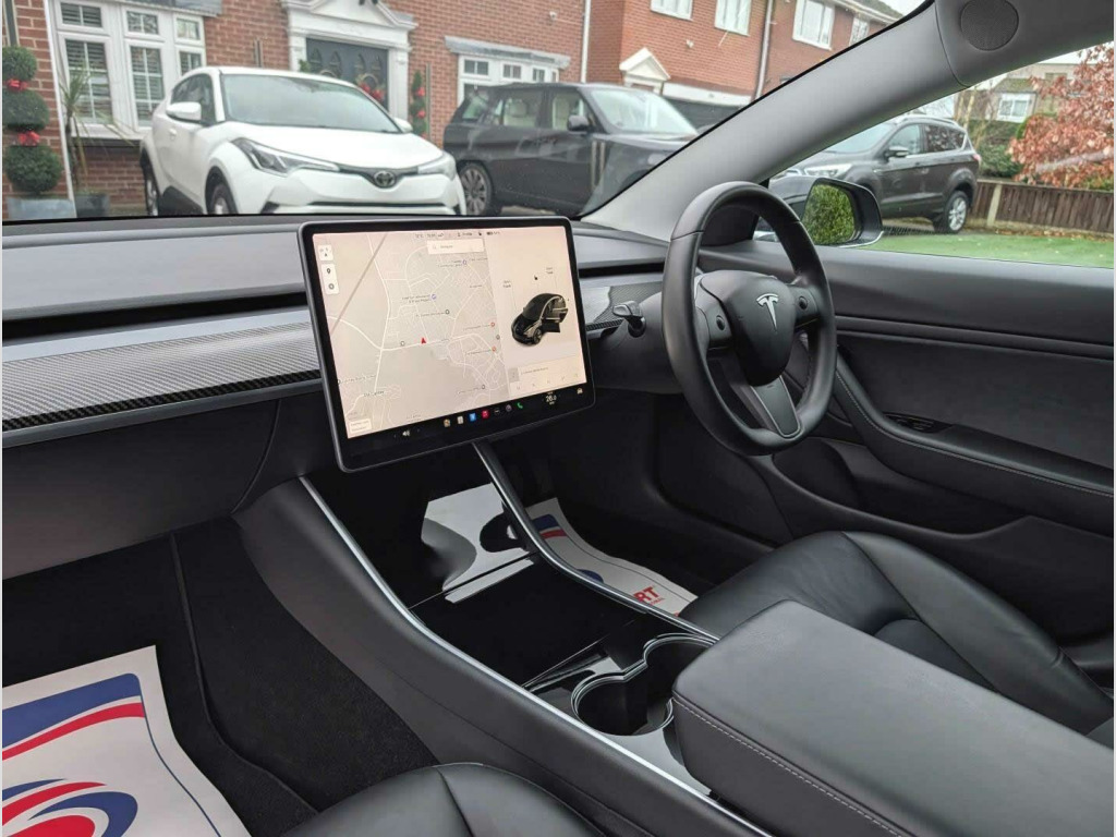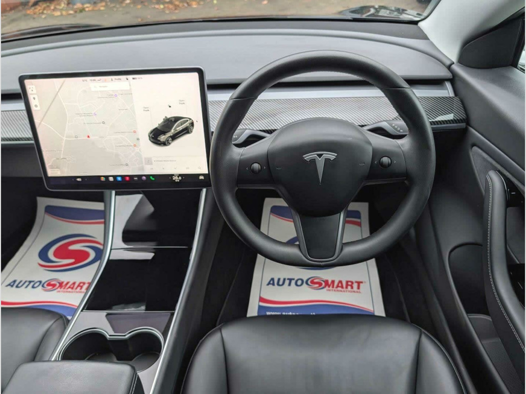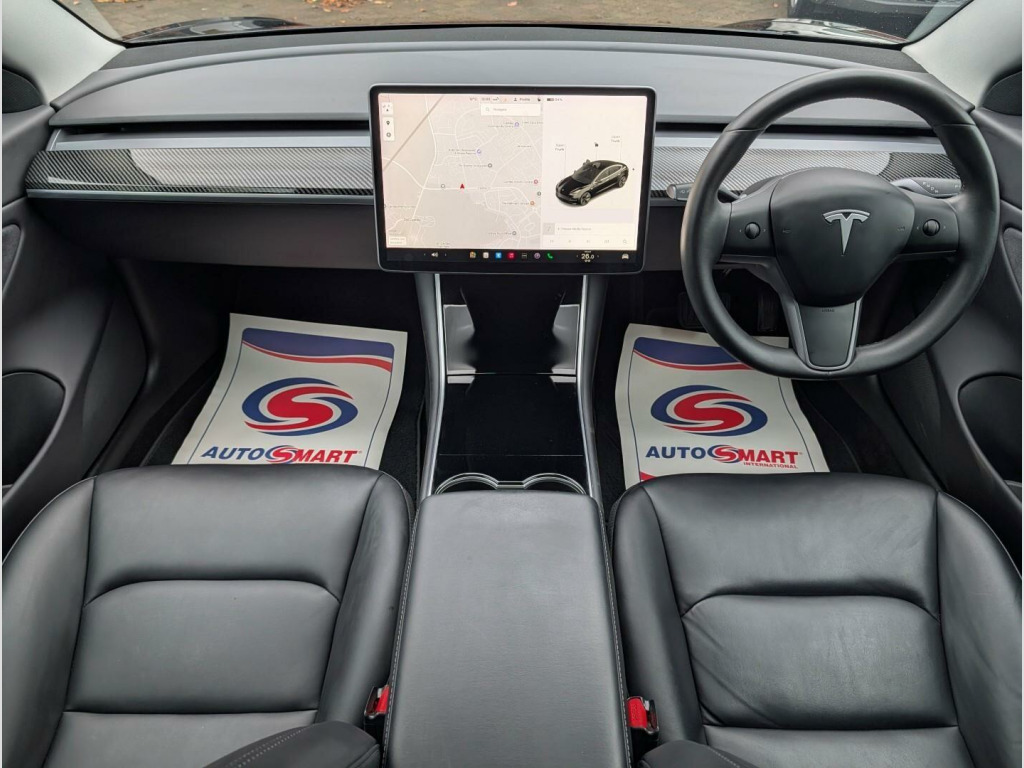 * BLACK PACK * 1 Owner From New, Last Serviced in November 2025, MOTed Until 9th October 2026, VAT Qualifying :: 78kWh Fully Electric Battery, Dual Motor, Tesla One-Speed Automatic Gear System :: Black Metallic Paintwork with Chrome Exterior Trim, LED Daytime Running Lights, Premium Engineered Black Leather Upholstery, Carbon Fibre Interior Trim, Front & Rear Boots :: 4 Door Saloon, 5 Seats :: BLACK PACK including 18'' Black Gloss Alloy Wheels (Unmarked) with Red Calipers, Black Front Splitter & Black Rear Spoiler :: 'AUTOPILOT' PACKAGE including Full Self-Driving Computer 3, Lane Departure Warning, Forward Collision Avoidance Warning & Automatic Emergency Braking :: Full Panoramic Glass Roof, 15'' Infotainment Touch-Screen Interface, Individual Personalised Profiles, Navigation, Autosteer, Bluetooth Phone & Music Streaming, DAB Digital Radio, Twin Wireless Charging Pads, Tesla Apps including Spotify & TuneIn, Onboard WiFi with Internet Capability, Audio System with 8 Speakers & Immersive Sound, USB & USB-C Connections, LED Headlamps, Twelve Way Electrically Adjustable Front Seats, Heated Seats with 3-Levels, Front & Rear Parking Sensors, High Definition Reversing Camera, Front Cross Traffic Camera, Adaptive Traffic-Aware Cruise Control, Automatic Climate Control with Dual Zone Temperature Settings, Air Distribution Controls & Recirculation, Front & Rear Centre Armrests, Keyless Entry & Go, Multi-Functional Steering Wheel, All Electric Windows, Electric Heated Folding Mirrors, Electrically Adjustable Steering Column, Autodimming Rearview & Side Mirrors, Electric Lumbar Adjusters, Electric Boot Release, Steer-By-Wire Technology, Changable Interior Ambiente Lighting, Rain Sensing Wipers, LED Foglights, Cupholders, Charging Cable Included :: A stunning Model 3 with excellent specification!. 12-Way Power Adjustable Front and Rear Heated Seats, 15in Touchscreen with Onboard Maps and Navigation, 18in Alloy Wheels - Aero, 2 Zone Climate Control, 3x3 Point Rear Seat Belts, 60-40 Split Folding Rear Seats, ABS - Anti-lock Braking System, Adaptive Cruise Control, Adaptive Steering, Air Conditioning, Airbags - 6, Airbags - Curtain, Airbags - Driver, Airbags - Passenger, Airbags - Side, Ambient - Interior Lighting, Audio Remote Control, Auto Dimming - Power Folding - Heated Side Mirrors, Automated High-Beam Assist, Automatic Emergency Braking, Autopilot Function, Blind Spot Information, Bluetooth Connection, Body Coloured Bumpers, Centre Console with Storage - 4 USB Ports and Docking for 2 Smartphones, Collision Avoidance, Custom Driver Profiles, DVD, Daytime Running Lights - LED, Digital Radio, Electric Hinged Side Doors - Front, Electric Hinged Side Doors - Rear, Electrically Adjustable Drivers Seat, Electrically Adjustable Passenger Seat, Electrically Adjustable Steering Column - Tilt-Telescopic, Electronic Stability Control and Traction Control, Fixed Panoramic Glass Roof, Front Armrest, Front Cross Traffic Camera, Front Electric Windows, Front Fog Lights, Front Head Restraints, Front Parking Sensor, Front Trunk and Interior Floor Mats, Height Adjustable Drivers Seat, In-Car Internet Streaming Music and Media, Interior Carpeting, Internet Browser, Internet Connection, Isofix Child Seat Anchor Points, Keyless Entry and Remote Control with App, Keyless Go, LED Foglights, LED Headlights, Lane Departure Warning, Location-Aware Automatic Garage Door Opener, Map and Reading Lights, Media Storage, Mobile Phone App Interface, Navigation System, Non-Safety-Critical Software Updates over Cellular, OEM Sound System, Park Assist Camera, Power Steering - Speed Sensitive, Premium Audio - 14 Speakers - 1 Subwoofer - 2 Amps and Immersive Sound, Radio - AM-FM - Internet Streaming, Rear Cross Traffic Camera, Rear Electric Windows, Rear Headrests, Rear Parking Sensor, Remote Central Locking, Reverse Parking Aid, Satellite-View Maps with Live Traffic Visualisation and Navigation, Seats - Heated Front, Service Indicator, Software Updates over WIFI, Steer-By-Wire Technology, Steering Wheel Mounted Controls, Telephone, Tinted Glass Roof with Ultraviolet and Infrared Protection, Traction Control, Traffic Sign Recognition, Trip Computer, Type 2 Public Charging Connector, Tyre Pressure Monitoring System, USB-iPod Interface, Voice Activated Controls, Wi-Fi and LTE Internet Connectivity, Full Self-Driving Capability, Premium Engineered Material - Black.