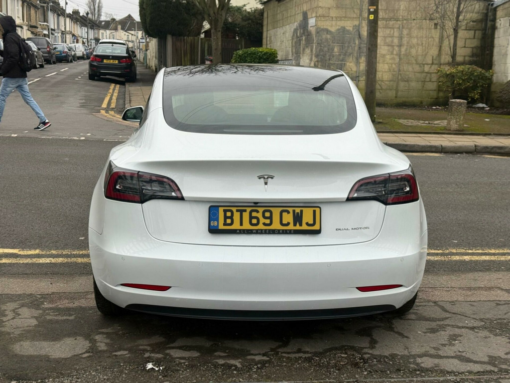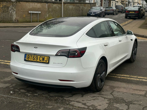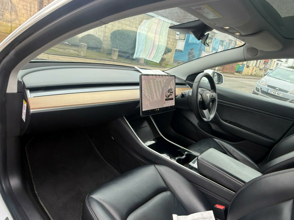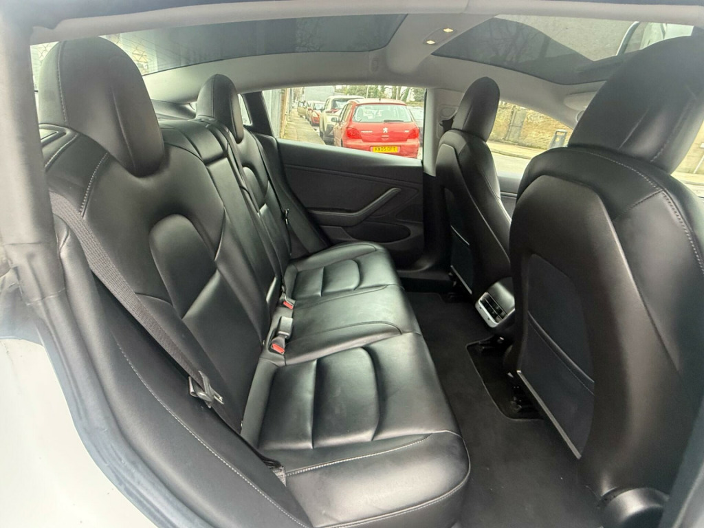This 2019 Tesla Model 3 Long Range offers an impressive electric driving experience with a substantial new range of 348 miles. As a Long Range variant, this four wheel drive electric vehicle boasts a 78 kWh battery, capable of a full charge at home in approximately 12 hours using a 7kW charger. For quicker top ups, it can reach 80% charge in just 26 minutes at a compatible public charging station.The Model 3 Long Range is equipped with advanced features designed for comfort and safety. These include Blind Spot Information with Blind Spot Assistance, a 2 Zone Climate Control system, and Rear Parking Sensors as part of its Parking Assistance. The vehicle also features LED Headlights for enhanced visibility and 12 way power adjustable front and rear heated seats, ensuring a comfortable journey in all conditions. These highlights demonstrate the Model 3's superior capability and advanced technology compared to other vehicles in its class.. 12-Way Power Adjustable Front and Rear Heated Seats, 15in Touchscreen with Onboard Maps and Navigation, 18in Alloy Wheels - Aero, 2 Zone Climate Control, 3x3 Point Rear Seat Belts, 60-40 Split Folding Rear Seats, ABS - Anti-lock Braking System, Adaptive Cruise Control, Adaptive Steering, Air Conditioning, Airbags - 6, Airbags - Curtain, Airbags - Driver, Airbags - Passenger, Airbags - Side, Ambient - Interior Lighting, Audio Remote Control, Auto Dimming - Power Folding - Heated Side Mirrors, Automated High-Beam Assist, Automatic Emergency Braking, Autopilot Function, Blind Spot Information, Bluetooth Connection, Body Coloured Bumpers, Centre Console with Storage - 4 USB Ports and Docking for 2 Smartphones, Collision Avoidance, Custom Driver Profiles, DVD, Daytime Running Lights - LED, Digital Radio, Electric Hinged Side Doors - Front, Electric Hinged Side Doors - Rear, Electrically Adjustable Drivers Seat, Electrically Adjustable Passenger Seat, Electrically Adjustable Steering Column - Tilt-Telescopic, Electronic Stability Control and Traction Control, Fixed Panoramic Glass Roof, Front Armrest, Front Cross Traffic Camera, Front Electric Windows, Front Fog Lights, Front Head Restraints, Front Parking Sensor, Front Trunk and Interior Floor Mats, Height Adjustable Drivers Seat, In-Car Internet Streaming Music and Media, Interior Carpeting, Internet Browser, Internet Connection, Isofix Child Seat Anchor Points, Keyless Entry and Remote Control with App, Keyless Go, LED Foglights, LED Headlights, Lane Departure Warning, Location-Aware Automatic Garage Door Opener, Map and Reading Lights, Media Storage, Mobile Phone App Interface, Navigation System, Non-Safety-Critical Software Updates over Cellular, OEM Sound System, Park Assist Camera, Power Steering - Speed Sensitive, Premium Audio - 14 Speakers - 1 Subwoofer - 2 Amps and Immersive Sound, Radio - AM-FM - Internet Streaming, Rear Cross Traffic Camera, Rear Electric Windows, Rear Headrests, Rear Parking Sensor, Remote Central Locking, Reverse Parking Aid, Satellite-View Maps with Live Traffic Visualisation and Navigation, Seats - Heated Front, Service Indicator, Software Updates over WIFI, Steer-By-Wire Technology, Steering Wheel Mounted Controls, Telephone, Tinted Glass Roof with Ultraviolet and Infrared Protection, Traction Control, Traffic Sign Recognition, Trip Computer, Type 2 Public Charging Connector, Tyre Pressure Monitoring System, USB-iPod Interface, Voice Activated Controls, Wi-Fi and LTE Internet Connectivity.