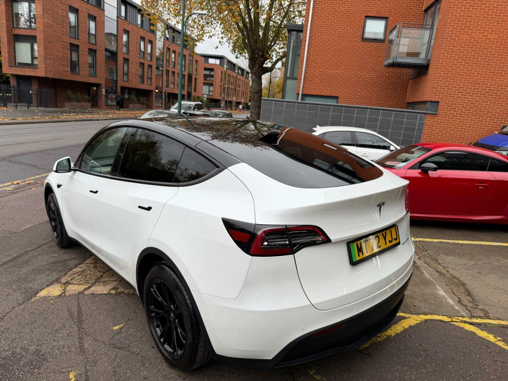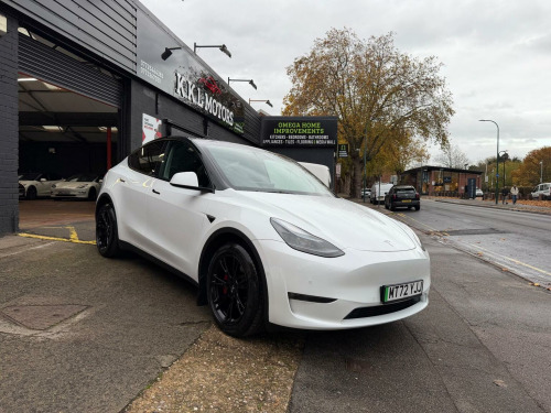 Tesla Model Y (Dual Motor) Long Range Auto 4WDE 5dr, *INSTANT TESLA APP ACCESS ON COMPLETION*, CAR FEATURES INCLUDE, ELECTRIC WINDOWS, NAVIGATION, REVERSE CAMERA, BLACK INTERIOR, HEATED SEATS, ELECTRIC SEATS,PANORAMIC ROOF, AMD RYZEN PROCESSOR. *MANUFACTURES WARRANTY 28/11/2026 OR 50,000 MILES*BATTERY AND UNIT DRIVE WARRANTY TILL 28/11/2030 or 120,000 MILES*, * *BUY WITH CONFIDENCE**, **HPI CLEAR**, ** Evening And Weekend Viewings Also Available**, **All Major Debit Card Payments Accepted**, **Vat Registered**, This 2022 Tesla Model Y Long Range presents an exceptional ownership proposition, having been meticulously maintained by its single owner and boasting impressively low mileage for its age at just 25,872 miles. As a fully electric vehicle, it offers a smooth and responsive driving experience with its Four Wheel Drive system, powered by an 85 kWh battery that provided a maximum range of 331 miles when new. This Model Y comes equipped with desirable features such as Dual Zone Climate Control, Automatic On headlights, Front Parking Sensors for added convenience, and Heated Front Seats for comfort in all conditions. The Expansive Glass Roof, complete with Ultraviolet and Infrared Protection, enhances the sense of space and light within the cabin, while the generous boot space offers ample practicality for everyday needs and longer journeys. The performance of this Tesla Model Y Long Range is truly noteworthy, with an acceleration of 0-60mph achieved in a swift 4.8 seconds, demonstrating its electric power. These highlights indicate that this vehicle offers a superior driving experience compared to many others in its class. Recharging is convenient, with a full charge at home on a 7kW charger taking approximately 12 hours, and rapid charging to 80% achievable in as little as 25 minutes at a public charging station. This combination of low mileage, single ownership, impressive range, rapid charging capabilities, and exhilarating performance makes this 2022 Tesla Model Y Long Range a compelling choice for those seeking an advanced and practical electric vehicle.