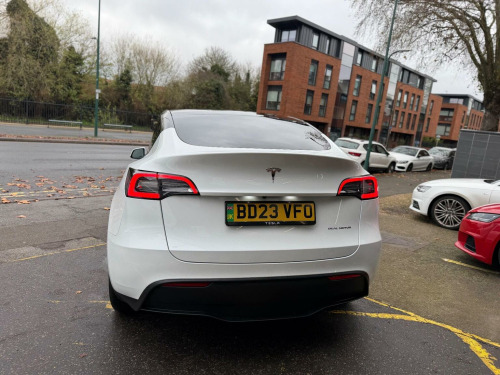 Tesla Model Y (Dual Motor) Long Range Auto 4WDE 5dr, *INSTANT TESLA APP ACCESS ON COMPLETION*, CAR FEATURES INCLUDE, ELECTRIC WINDOWS, NAVIGATION, REVERSE CAMERA, BLACK INTERIOR, HEATED SEATS, ELECTRIC SEATS,PANORAMIC ROOF, AMD RYZEN PROCESSOR. *MANUFACTURES WARRANTY 28/04/2027 OR 50,000 MILES*BATTERY AND UNIT DRIVE WARRANTY TILL 28/04/2031 or 120,000 MILES*, * *BUY WITH CONFIDENCE**, **HPI CLEAR**, ** Evening And Weekend Viewings Also Available**, **All Major Debit Card Payments Accepted**, **Vat Registered**, This 2023 Tesla Model Y Long Range presents a superb ownership opportunity, having had only one owner since new. As an electric vehicle, it boasts a substantial 85 kWh battery, providing an impressive maximum range of 331 miles on a full charge. This Four Wheel Drive model offers a smooth and responsive driving experience, with convenient features such as dual zone climate control and heated front and rear seats for year round comfort. The automatic headlights and blind spot monitoring enhance safety, while wireless phone charging keeps you connected on the go. The Model Y Long Range truly excels with its performance and practicality. Its acceleration is remarkable, reaching 0 to 60mph in just 4.8 seconds, demonstrating its electric power. The generous boot space offers ample room for luggage or shopping, making it a versatile choice for families or those with active lifestyles. Charging is also efficient, with a full charge at home taking approximately 12 hours, and rapid public charging capable of reaching 80% capacity in as little as 25 minutes from empty. These attributes highlight its advantage over many other vehicles in its class.
