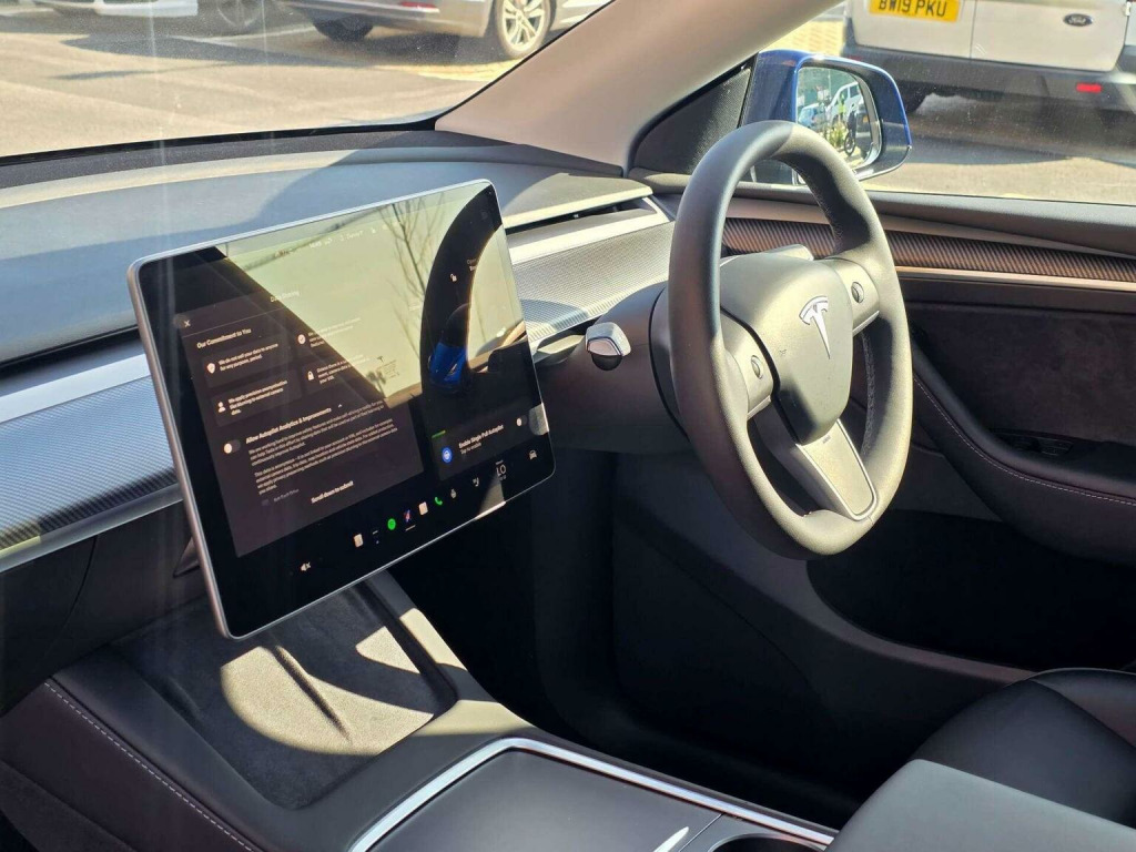 Experience the future of driving with this stunning Deep Sea Blue Metallic 2023 Tesla Model Y Long Range AWD, full Black Leather interior with Carbon Fibre cockpit. This car includes Autopilot, Comfort Suspension, Sub Zero Cold Weather pack which includes Heated seats all round Heated Steering Wheel and Heated Wipers. Immersive Dolby Surround Sound, Panoramic Roof, 19 Turbine style hubcaps finished in Onyx black, Electric tailgate, Full Electric seats, DAB Radio Bluetooth Audio and Spotify. LED Headlamps with LED day running lights. Viewing is by appointment only at our showroom in London. This car charges at a Tesla Supercharger from 10% to 80% in 20 minutes accepting 250KWH of charge. Still under Tesla Bumper to Bumper warranty until 01/07/2027 or 50K Miles and Battery and Motor warranty until 01/07/2031 or 120k Miles. We are an RAC approved dealer, All of our cars are prepared to the Highest Standards and are all fully inspected. All vehicles come with RAC roadside assist. Finance available, Credit and debit cards accepted, Nationwide delivery available. All vehicles purchased are subject to an admin fee of £150.00. Congestion charge exempt once set up, ULEZ Exempt. This Vehicle is VAT Qualifying, meaning if you are buying the car to export outside the EU, we can sell the car to you for £21,245 If you are a business owner you maybe able to claim back the VAT amount of £4,249 or a proportion of it(Speak with your accountant first.). REF.DAU