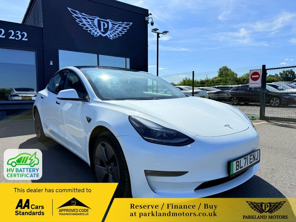 With only one previous owner, this 2022 Tesla Model 3 Long Range offers an exceptional opportunity to experience electric vehicle ownership. This four-wheel drive electric vehicle combines performance with practicality. The vehicle's history is clear, and its road worthiness is guaranteed with an MOT valid until February 2026. Enjoy the convenience of Keyless Go and the enhanced visibility of LED headlights. The cabin offers 12-way power adjustable front and rear heated seats, ensuring comfort for all passengers, and Blind Spot Information provides an extra layer of safety on the road. The Long Range trim includes a 78 kWh battery, offering a range of up to 389 miles when new, meaning fewer stops on long journeys. Charging is convenient, with a full charge achievable in 12 hours using a 7kW home charger. For those needing a quicker boost, public charging can take the battery from empty to 80% in just 26 minutes. 12-Way Power Adjustable Front and Rear H, 15in Touchscreen with Onboard Maps and N, 18in Alloy Wheels - Aero, 2 Zone Climate Control, 3x3 Point Rear Seat Belts, 60-40 Split Folding Rear Seats, ABS - Anti-lock Braking System, Adaptive Cruise Control, Adaptive Steering, Additional USB-A Port - Glove Compartmen, Air Conditioning, Airbags - Curtain, Airbags - Driver, Airbags - Passenger, Airbags - Side, Ambient - Interior Lighting, Audio Remote Control, Auto Dimming - Power Folding - Heated Si, Automated High-Beam Assist, Automatic Emergency Braking, Autopilot Function, Blind Spot Information, Bluetooth Connection, Body Coloured Bumpers, Centre Console with Storage - 4 USB Port, Collision Avoida