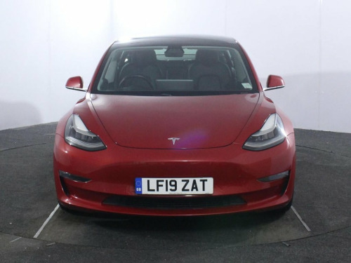 2 Owners. The 2019 Tesla Model 3 Long Range Dual Motor is a high-performance, all-wheel-drive electric saloon that combines groundbreaking technology with exceptional range. Powered by a dual-motor setup producing 346 ps (341 hp) and 364 lb-ft of torque, it achieves an impressive 0–62 mph time of 4.6 seconds and a top speed of 145 mph. Equipped with a 75kWh battery, this model offers a WLTP-rated range of 350 miles (560 km), with real-world mixed driving typically delivering up to 310 miles (WLTP) of range. For long-distance travel, the Model 3 supports Tesla's Supercharger network at speeds up to 250kW, adding roughly 130 miles of range in just 30 minutes. The interior of the Model 3 is defined by its minimalist "Premium" aesthetic, dominated by a central 15-inch touchscreen that controls almost all vehicle functions, from navigation and climate to custom driver profiles. Standard features include 12-way power-adjustable heated front and rear seats, a fixed panoramic glass roof with ultraviolet and infrared protection, and a high-end 14-speaker audio system with immersive sound. Connectivity is a major focus, featuring in-car internet streaming, an internet browser, and a mobile phone app that serves as the vehicle's primary key. Safety and automation are hallmarks of the Tesla brand, with this model featuring the Autopilot suite as standard. This includes adaptive cruise control, lane departure warning, traffic sign recognition, and automatic eme 12-Way Power Adjustable Front and Rear H, 15in Touchscreen with Onboard Maps and N, 18in Alloy Wheels - Aero, 2 Zone Climate Control, 3x3 Point Rear Seat Belts, 60-40 Split Folding Rear Seats, ABS - Anti-lock Braking System, Adaptive Cruise Control, Adaptive Steering, Air Conditioning, Airbags - 6, Airbags - Curtain, Airbags - Driver, Airbags - Passenger, Airbags - Side, Ambient - Interior Lighting, Audio Remote Control, Auto Dimming - Power Folding - Heated Si, Automated High-Beam Assist, Automatic Emergency Braking, Autopilot Function, Blind Spot Information, Bluetooth Connection, Body Coloured Bumpers, Centre Console with Storage - 4 USB Port, Collision Avoidance, Custom Driver Profiles,