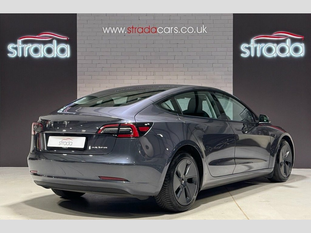 +++ Strada Cars are delighted to present for sale this 2022 Tesla Model 3 Long Range. This car presents an exceptional ownership proposition, having had only one owner from new with a clear vehicle history check. As an electric vehicle, it boasts a substantial 78 kWh battery, offering an impressive maximum range of 389 miles when new. This Model 3 is equipped with Four Wheel Drive for enhanced traction and control. Inside, you'll find a host of desirable features including heated front seats, adaptive cruise control for relaxed journeys, and a 2 zone climate control system to ensure comfort for all occupants. The fixed panoramic glass roof floods the cabin with light, creating an airy atmosphere, while the park assist camera makes manoeuvring simple and stress free. The performance of this Long Range variant is truly remarkable, with a rapid acceleration from 0-60mph in just 4.2 seconds, demonstrating its dynamic capabilities. This acceleration figure is a key indicator of how this vehicle outperforms many others in its class. Furthermore, the impressive 389 mile maximum range highlights its suitability for both daily commutes and longer trips, setting it apart from less capable electric vehicles. Recharging is convenient, with a full charge at home taking approximately 12 hours using a 7kW charger, and rapid public charging can replenish the battery from empty to 80% in as little as 26 minutes. This is a stunning car that is gping to delight its next lucky owner +++ Premium Engineered Material - Black, Midnight Silver, 12-Way Power Adjustable Front and Rear H, 15in Touchscreen with Onboard Maps and N, 18in Alloy Wheels - Aero, 2 Zone Climate Control, 3x3 Point Rear Seat Belts, 60-40 Split Folding Rear Seats, ABS - Anti-lock Braking System, Adaptive Cruise Control, Adaptive Steering, Additional USB-A Port - Glove Compartmen, Air Conditioning, Airbags - Curtain, Airbags - Driver, Airbags - Passenger, Airbags - Side, Ambient - Interior Lighting, Audio Remote Control, Auto Dimming - Power Folding - Heated Si, Automated High-Beam Assist, Automatic Emergency Braking, Autopilot Function, Blind Spot Information, Bluetooth Connection, Body Coloured Bumpers, Cent