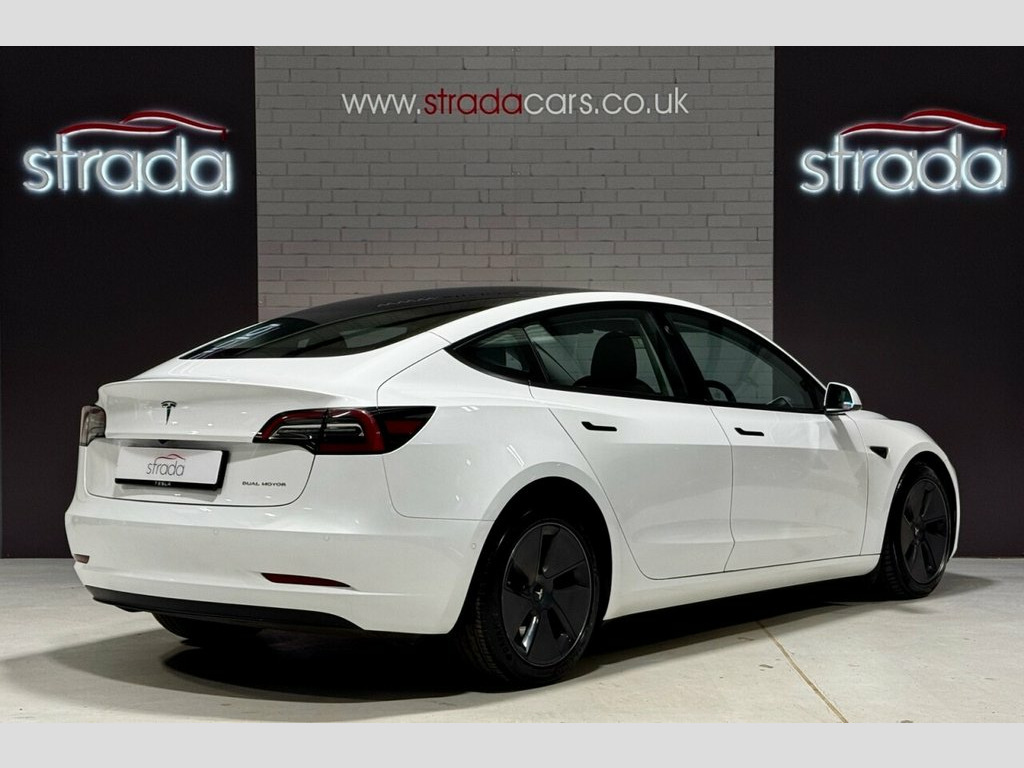 +++ Strada Cars are delighted to present for sale this 2021 Tesla Model 3 Long Range. This car boasts a clear vehicle history and has had only one owner from new. As an electric vehicle with Four Wheel Drive, it offers an impressive battery total capacity of 78 kWh, providing a maximum range of 360 miles when new. This Model 3 comes equipped with LED headlights for enhanced visibility, heated front and rear seats for comfort in all conditions, and advanced parking assistance including front parking sensors and a park assist camera. Experience exceptional performance with this Tesla Model 3, capable of accelerating from 0 to 60 mph in just 4.2 seconds, a highlight that sets it apart from many other vehicles. Charging is convenient, with a full charge at home on a 7kW charger taking approximately 12 hours, while rapid charging to 80% on a public charger can be achieved in as little as 26 minutes. These capabilities demonstrate the advanced technology and efficiency of this electric saloon. This is a stunning car with combining practicality with style, performance and an excellent range +++ Premium Engineered Material - Black, Pearl White, 12-Way Power Adjustable Front and Rear H, 15in Touchscreen with Onboard Maps and N, 18in Alloy Wheels - Aero, 2 Zone Climate Control, 3x3 Point Rear Seat Belts, 60-40 Split Folding Rear Seats, ABS - Anti-lock Braking System, Adaptive Cruise Control, Adaptive Steering, Additional USB-A Port - Glove Compartmen, Air Conditioning, Airbags - Curtain, Airbags - Driver, Airbags - Passenger, Airbags - Side, Ambient - Interior Lighting, Audio Remote Control, Auto Dimming - Power Folding - Heated Si, Automated High-Beam Assist, Automatic Emergency Braking, Autopilot Function, Blind Spot Information, Bluetooth Connection, Body Coloured Bumpers, Centre C