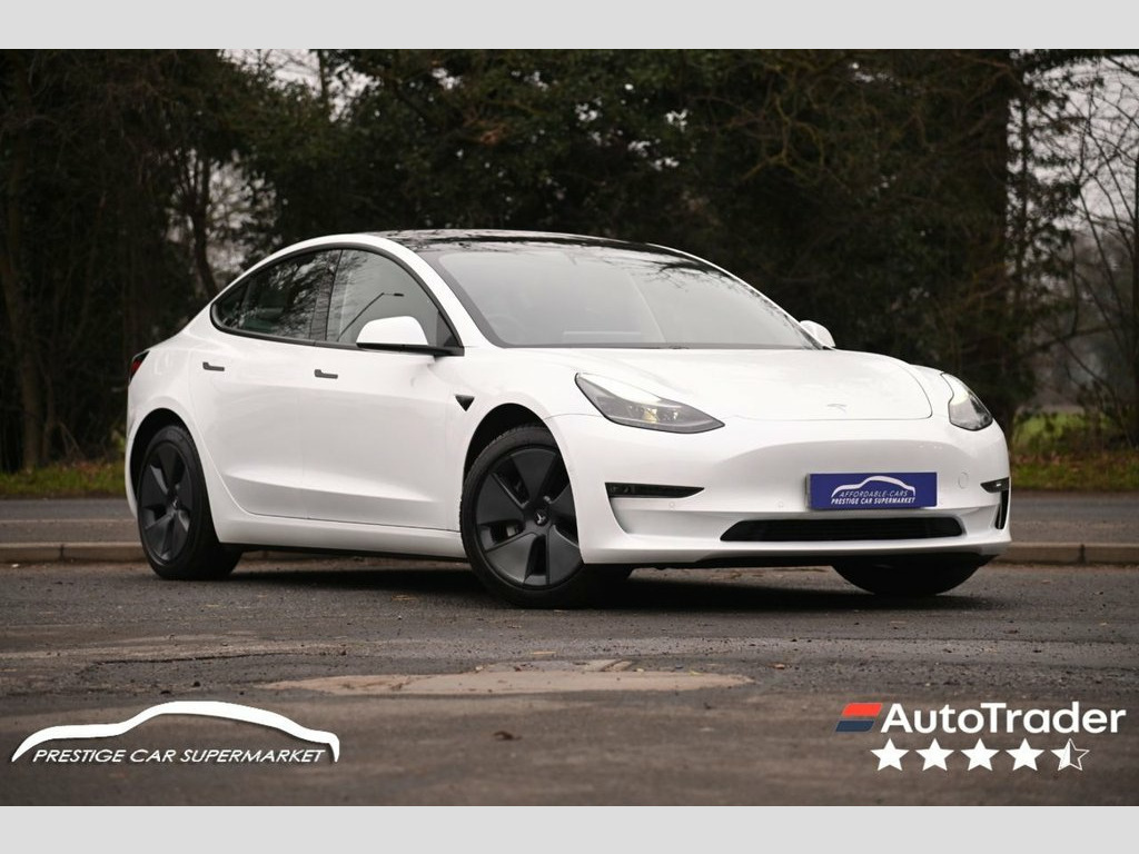 Prestige Car Supermarket in York presents this 2021 Tesla Model 3 Dual Motor Long Range finished in Pearl White with Premium Engineered Material upholstery in Black. The cabin features 12-way power-adjustable front and rear heated seats, a 15in touchscreen with onboard maps and navigation, dual-zone climate control, 60-40 split folding rear seats, ambient interior lighting, premium 14-speaker audio with subwoofer, inductive charging mats for two smartphones, and a centre console with storage and multiple USB ports. Comfort and convenience include keyless entry with remote app, fixed panoramic glass roof, electrically adjustable tilt-telescopic steering column, heated steering wheel, powerlift trunk, front and rear electric windows, and front armrest. Safety and driver assistance features include adaptive cruise control, autopilot functionality, automatic emergency braking, lane departure warning, blind spot information, traffic sign recognition, front and rear parking sensors, park assist camera, rear cross traffic camera, collision avoidance, LED headlights and fog lights, and airbags for driver, passenger, side, and curtain. The exterior is complemented by 18in Aero alloy wheels, satin black sill plates, and body-coloured bumpers, combining Tesla's distinctive styling with electric performance and advanced technology for an immersive driving experience. Premium Engineered Material - Black, Pearl White, 12-Way Power Adjustable Front and Rear H, 15in Touchscreen with Onboard Maps and N, 18in Alloy Wheels - Aero, 2 Zone Climate Control, 3x3 Point Rear Seat Belts, 60-40 Split Folding Rear Seats, ABS - Anti-lock Braking System, Adaptive Cruise Control, Adaptive Steering, Additional USB-A Port - Glove Compartmen, Air Conditioning, Airbags - Curtain, Airbags - Driver, Airbags - Passenger, Airbags - Side, Ambient - Interior Lighting, Audio Remote Control, Auto Dimming - Power Folding - Heated Si, Automated High-Beam Assist, Automatic Emergency Braking, Autopilot Function, Blind Spot Information, Bluetooth Connection, Body Coloured Bumpers, Centre C