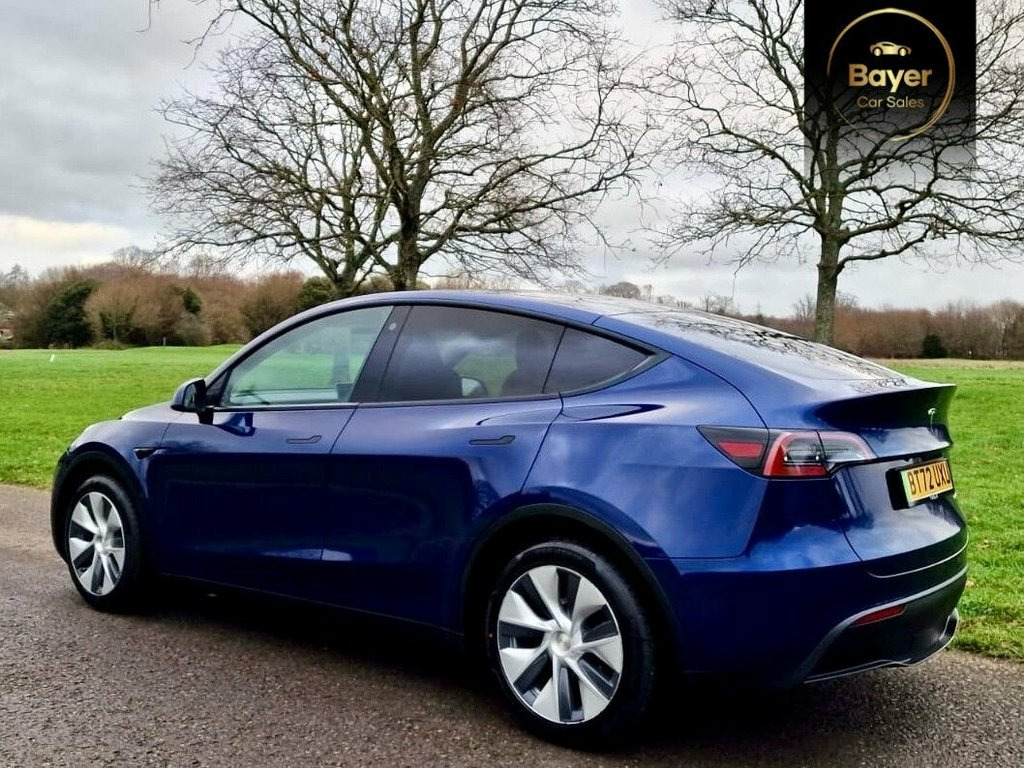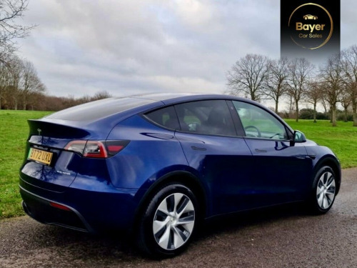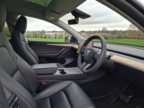 1 OWNER GREAT SPEC. This 2022 Tesla Model Y Long Range presents a superb ownership opportunity, having had only one owner since new. As an electric vehicle, it boasts a Four Wheel Drive drivetrain powered by an 85 kWh battery, offering an impressive maximum range of 331 miles when new. This Model Y is equipped with a fixed expansive glass roof providing ultraviolet and infrared protection, a tow hitch with a towbar, and dual zone climate control. For added safety and comfort, it includes blind spot monitoring and heated rear seats. The performance of this Model Y is truly remarkable, with a rapid 0-60mph acceleration time of just 4.8 seconds, demonstrating its dynamic capabilities. When it comes to charging, a full charge at home using a 7kW charger takes approximately 12 hours, while rapid public charging can replenish the battery from empty to 80% in as little as 25 minutes. These highlights, including the substantial range and swift charging times, position this Tesla Model Y Long Range as an exceptional choice for those seeking advanced electric vehicle technology and performance. 12-Way Power Adjustable Driver Seat with, 15in Touchscreen with Onboard Maps and N, 19in Alloy Wheels - Gemini Dark, 4 USB-C Port, ABS - Anti-lock Braking System, Airbags - Driver, Airbags - Passenger, All Vegan Interior, Ambient - Interior Lighting, Auto Dimming - Power Folding - Heated Si, Automated High-Beam Assist, Automatic Emergency Braking, AutoPilot, Blind Spot Monitoring, Centre Console with Storage - 2 Cupholde, Climate Control - Dual Zone, Collision Warning, Cupholders - 2x Rear Centre Armrest, Custom Driver Profiles, DAB+ Radio, Dashcam, Deep Blue, Electric Assisted Front and Rear Door, Electronic Fold-Flat Seat Release 40/20/, Expansive Glass Roof with Ultraviolet an, Front Elec