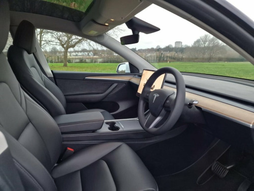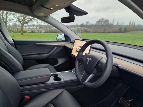 This 2022 Tesla Model Y Long Range is a superb example, having had only one owner since new. As an electric vehicle, it offers a Four Wheel Drive drivetrain and boasts an impressive 85 kWh battery, providing a maximum range of 331 miles when new. This Model Y comes equipped with automatic headlights, Bluetooth connectivity for music and media, and blind spot monitoring for enhanced safety. You'll also appreciate the expansive glass roof with ultraviolet and infrared protection, and the comfort of a heated steering wheel. The performance of this Model Y is truly noteworthy, with a rapid 0-60mph acceleration time of just 4.8 seconds, demonstrating its capability compared to other vehicles in its class. When it comes to charging, a full charge at home using a 7kW charger takes approximately 12 hours, while the fastest public charging can take you from empty to 80% in a mere 25 minutes. These highlights underscore the convenience and efficiency this electric SUV offers. 12-Way Power Adjustable Driver Seat with, 15in Touchscreen with Onboard Maps and N, 19in Alloy Wheels - Gemini Dark, 4 USB-C Port, ABS - Anti-lock Braking System, Airbags - Driver, Airbags - Passenger, All Vegan Interior, Ambient - Interior Lighting, Auto Dimming - Power Folding - Heated Si, Automated High-Beam Assist, Automatic Emergency Braking, AutoPilot, Blind Spot Monitoring, Centre Console with Storage - 2 Cupholde, Climate Control - Dual Zone, Collision Warning, Cupholders - 2x Rear Centre Armrest, Custom Driver Profiles, DAB+ Radio, Dashcam, Electric Assisted Front and Rear Door, Electronic Fold-Flat Seat Release 40/20/, Expansive Glass Roof with Ultraviolet an, Front Electric Window