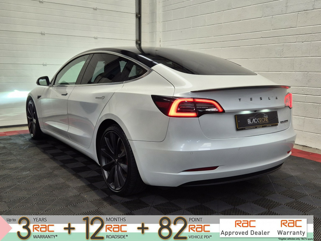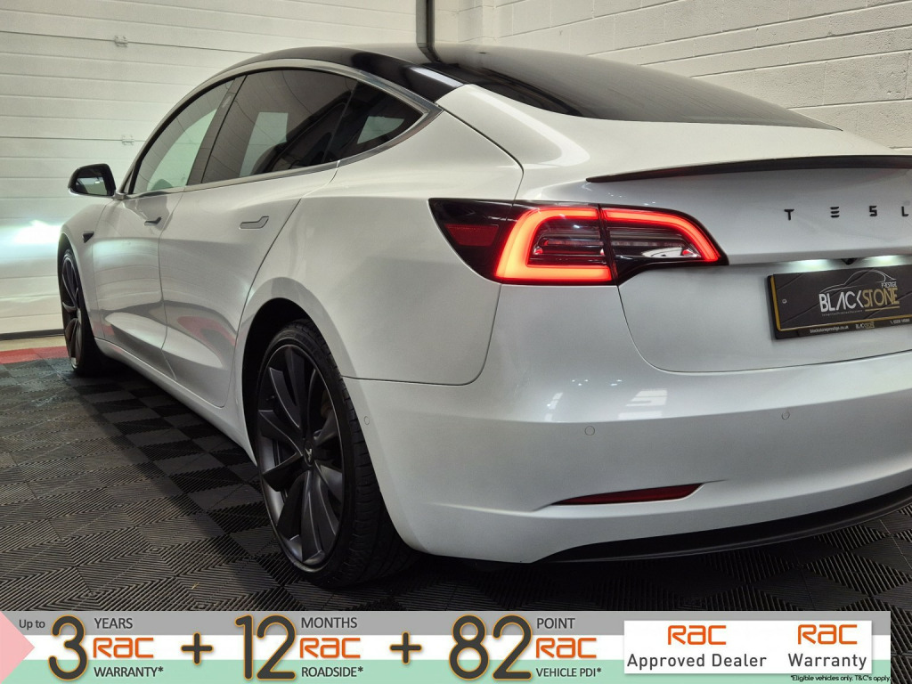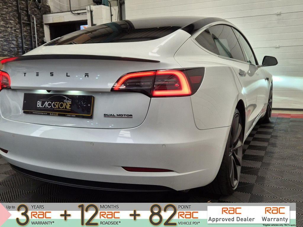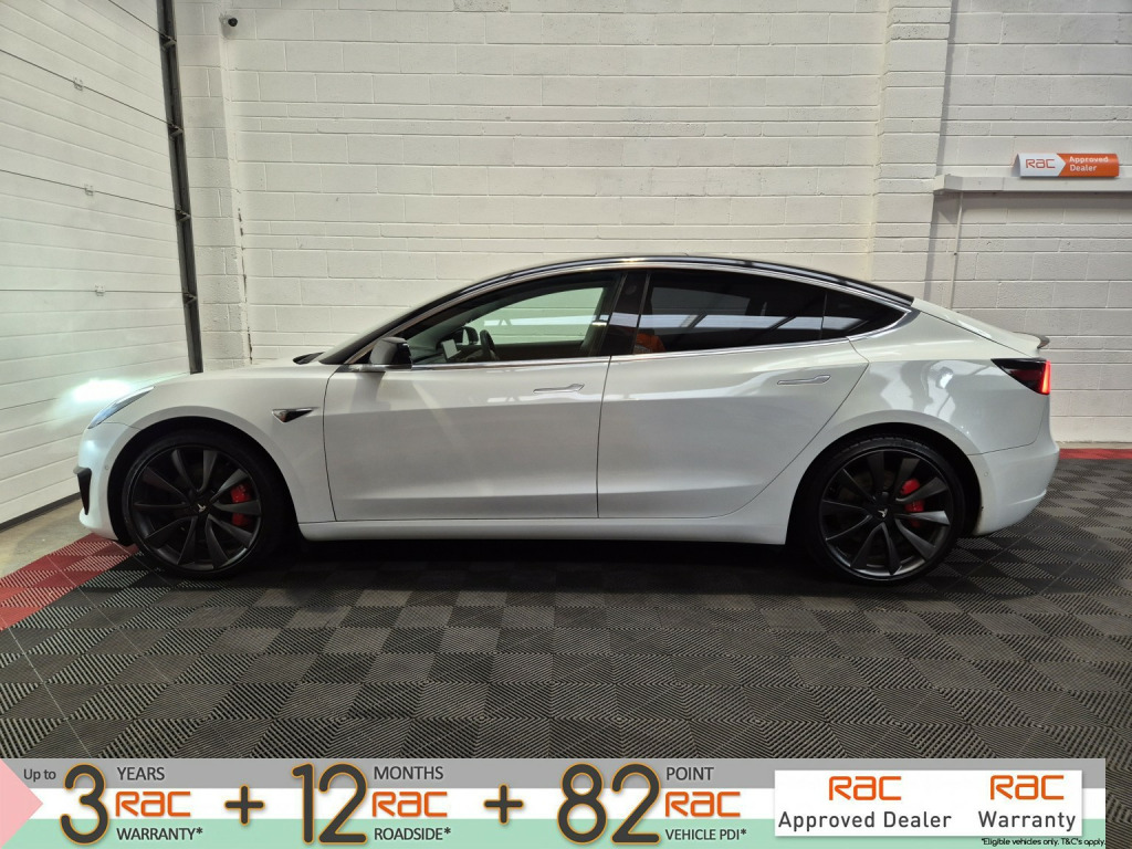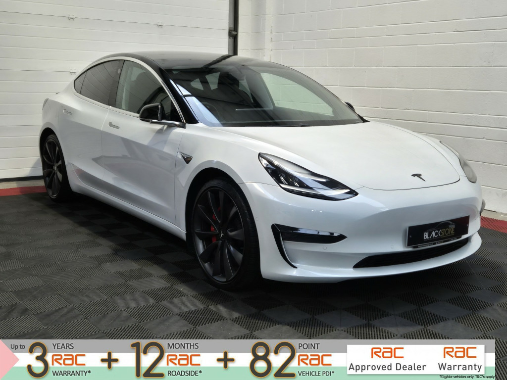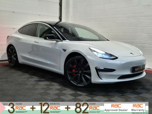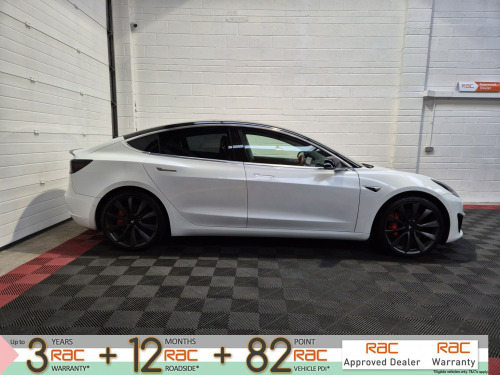 Here we present an exceptional 2020 all-wheel drive Dual Motor Model 3 PERFORMANCE with just 39,000 miles and 1 Owner from new. TESLA Battery Warranty until May 2028 or 120,000 miles. TESLA Drive warranty also until May 2028 or 120,000 miles. , - FREE 6 Months RAC Warranty (upgradeable to 36 Months)*, - FREE 12 Months RAC Roadside Rescue*, - FREE 12 month MOT if less than 6 Months remaining*, - 82 Point RAC Pre-Delivery Inspection Standard*, - BUY WITH CONFIDENCE: We are independently audited by the RAC every year to ensure we meet the requirements set by the Trading Standards Institute. - BUY WITH MORE CONFIDENCE: RAC Inspectors regularly carry out un-announced checks on our vehicles to ensure they meet their stringent standards. - 1 Owner from new, - TESLA Battery Warranty until May 2028, - TESLA Drive Warranty until May 2028, - Gloss black door mirrors and fog light detail, - Additional Driver display, - Alcantara dash trim, - Autopilot with Full Self Driving Computer, - Panoramic roof, - Heated seats, - Carbon rear spoiler, - Tesla Performance brakes with red calipers, - Tesla Performance rear carbon spoiler, - Auto everything (lights, wipers etc), - Privacy glass, - USB ports, - Dash cam, Rear camera, Side cameras, - Lane Assist, - Adaptive cruise, - 20 Turbine Anthracite alloy wheels, - Folding mirrors, - Plus all usual Tesla Peformance extras, , - Visit our website for up to 100 IMAGES. Purchase from an RAC APPROVED DEALER with upto 36 MONTHS RAC WARRANTY*, 12 MONTHS ROADSIDE RESCUE*. HPI CLEAR WITH REPORT, 82 POINT RAC PREPARATION STANDARD* & SERVICE BOOK/PRINT/DIGITAL. Part exchange welcome. Low rate PCP/HP/ECP finance up to 84 months. Indoor showroom. Viewings by appointment. Showroom: 03330 145984. Mobile: 07535 112113. Most cars VAT Qualifying. Virtual viewing. Purchase VAT free for export. Specification information is supplied by a third party and as such may vary to the actual car. This data does not form any part of a buying contract. Please confirm specification prior to purchase. *For all qualifying vehicles, T&Cs apply. e&oe.