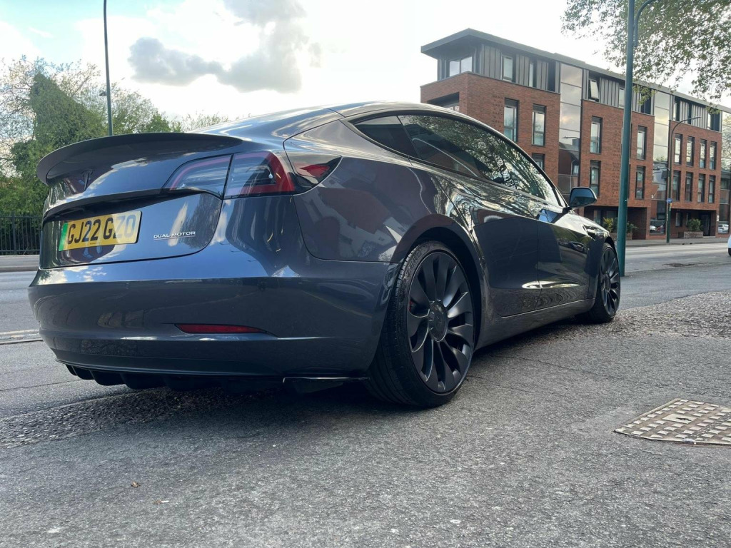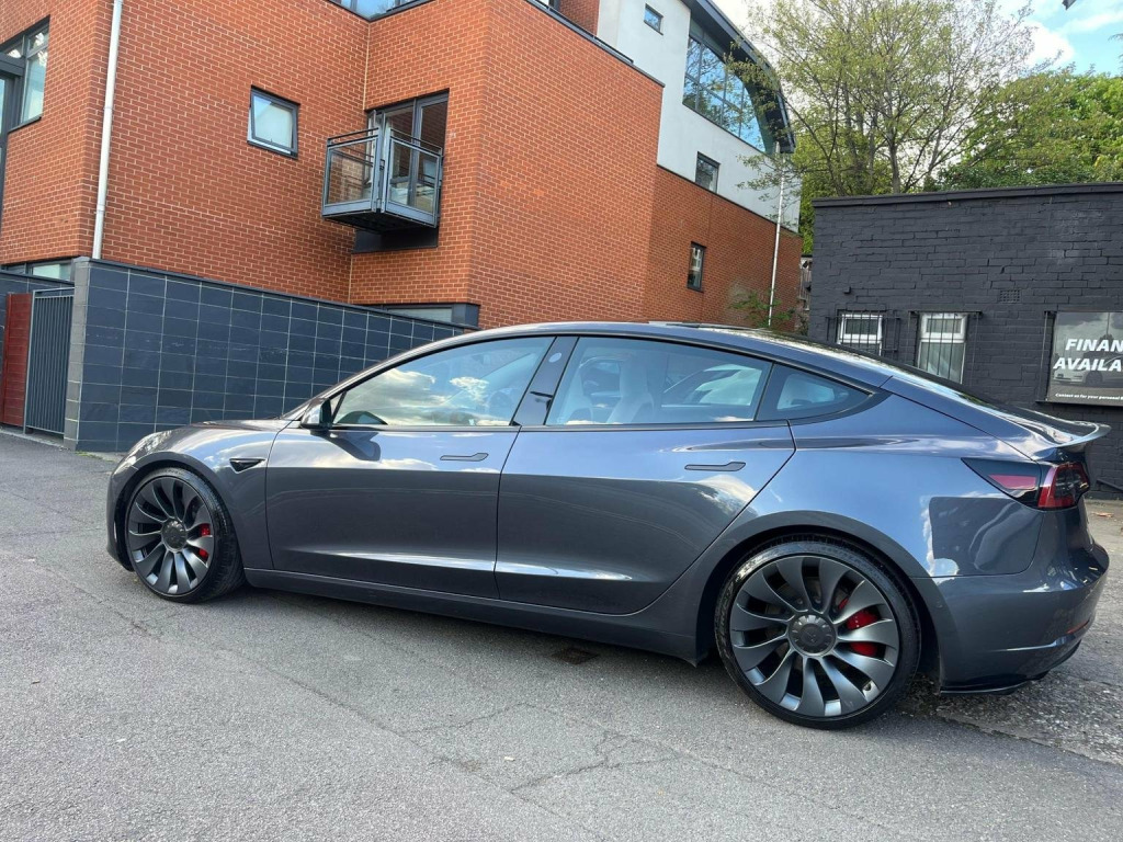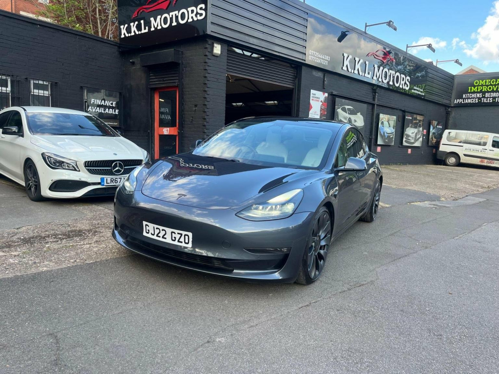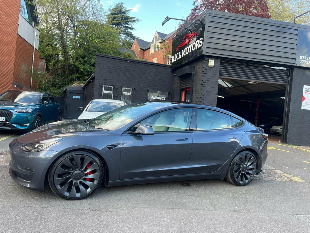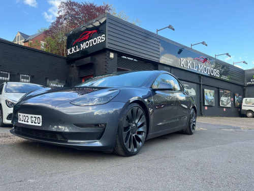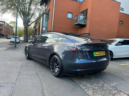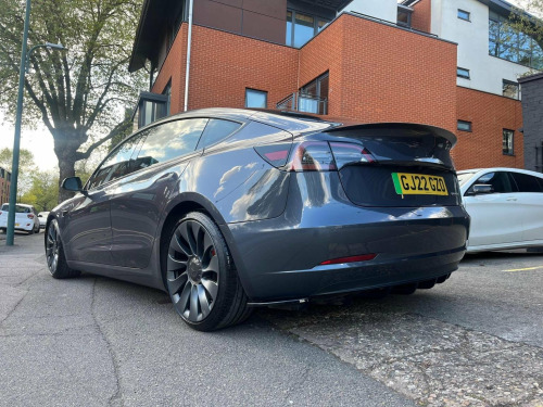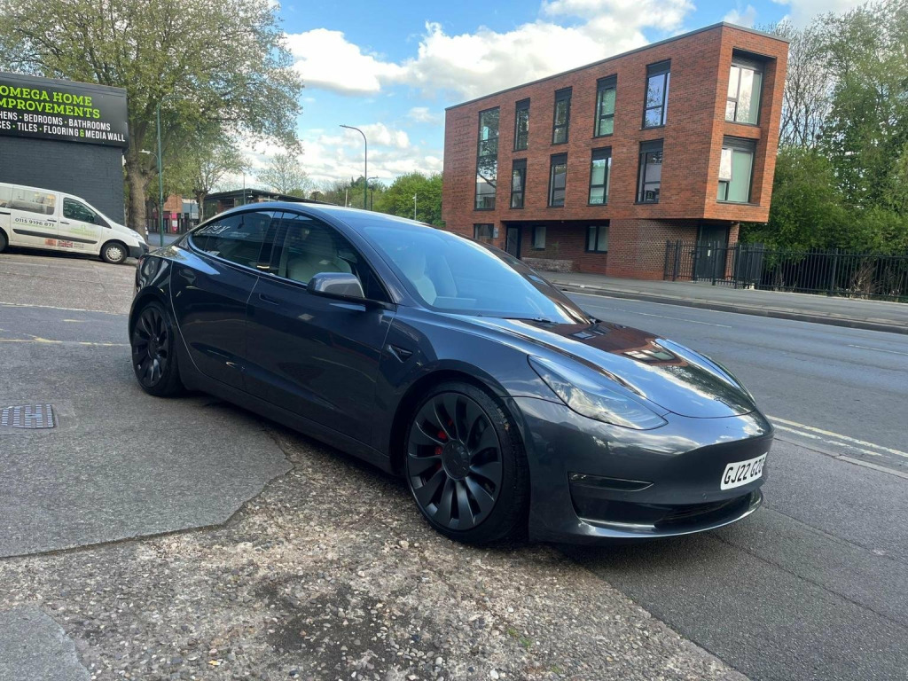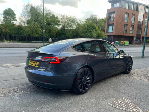 Tesla Model 3 (Dual Motor) Performance Auto 4WDE 4dr (Performance Upgrade) , CAR FEATURES INCLUDE, HEATED SEATS FRONT AND REAR, HEATED STEERING, WHITE INTERIOR, LATEST AMD RYZEN PROCESSOR, NAVIGATION, HEAT PUMP, 20ALLOYS. *TESLA SET UP COMPLETED UPON SALE*, FCA Regulated and Approved Dealership, * Excellent Customer Reviews - We Value our Customers, * All Cars are HPI cleared with Full HPI check certificate provided, * All Major Debit & Credit Card Payments Accepted, * Evening and Weekend Appointments also Available, * Finance Option Available - Registered with all big Finance Lenders, * Warranty - 3 to 36 Months Warranty Available, * Buy With Confidence - VAT Registered Ltd Company, * Part Exchange Welcome, * No Offers Please, * Please visit our website to look at our other stock, With only one previous owner and low mileage of just 23626 miles for a 2022 registration, this Tesla Model 3 Performance is an enticing electric car. The Performance trim and four-wheel drive drivetrain add to the appeal. Enjoy the convenience of Keyless Go and Keyless Entry, along with the added safety of Blind Spot Information and BLIS - Blind Spot Assistance. Stay comfortable with Air Conditioning, and benefit from the efficiency of LED Headlights. The integrated Bluetooth Connection ensures you stay connected on the move. This Model 3 boasts a large boot space, making it more practical than similar vehicles. The 82 kWh battery provides a maximum range of 340 miles when new. Charging at home using a 7kW charger takes approximately 12 hours, while rapid public charging can take the battery from empty to 80% in just 26 minutes. The impressive acceleration, reaching 0-60mph in 3.1 seconds, makes it quicker than other comparable cars.