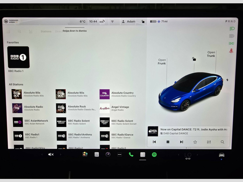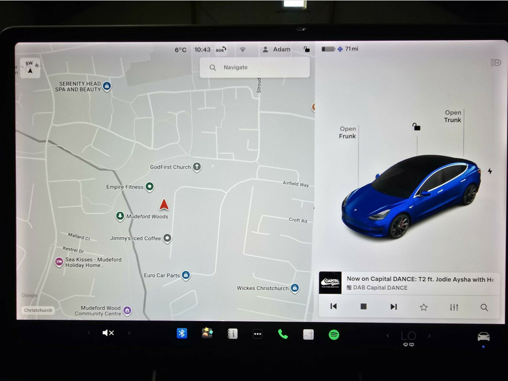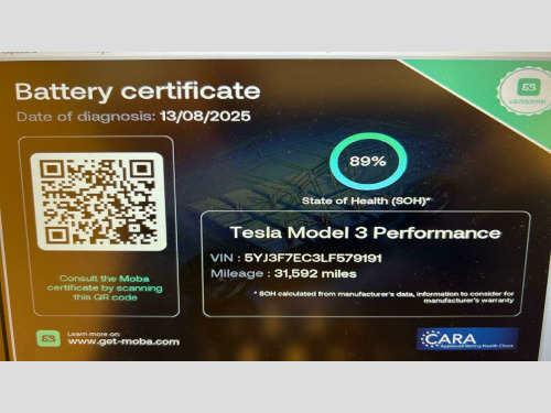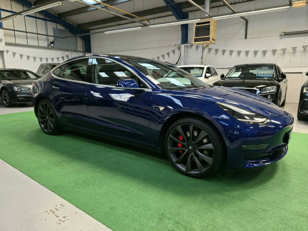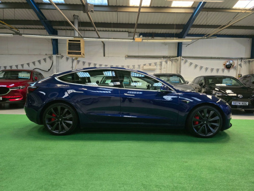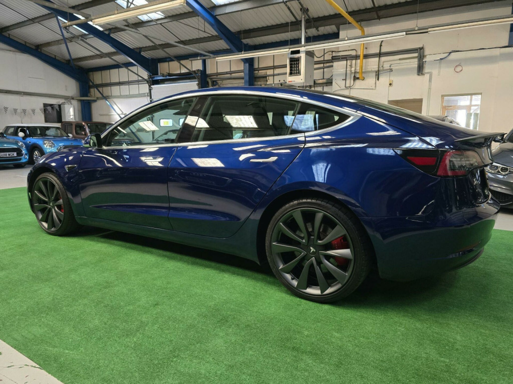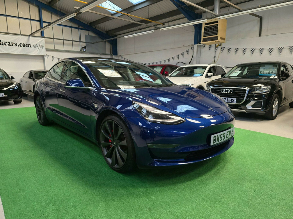This 2019 Tesla Model 3 Performance is a remarkable example, having been owned by just one person and boasting exceptionally low mileage for its age, having covered only 34,000 miles. As an electric vehicle with Four Wheel Drive, it offers a powerful and efficient driving experience. Inside, you'll find a host of premium features designed for comfort and convenience, including Air Conditioning, a Fixed Panoramic Glass Roof, 12 way power adjustable front and rear heated seats, Keyless Go, and front parking sensors.The Performance variant truly lives up to its name, delivering exhilarating acceleration with a 0 to 60mph time of just 3.2 seconds, demonstrating its superior performance compared to other vehicles in its class. With a substantial 82 kWh battery, this Model 3 offered a maximum range of 329 miles when new. Charging is convenient, taking approximately 12 hours for a full charge at home using a 7kW charger, or a rapid 26 minutes to reach 80% charge at a fast public charging station.. 12-Way Power Adjustable Front and Rear Heated Seats, 15in Touchscreen with Onboard Maps and Navigation, 2 Zone Climate Control, 20in Alloy Wheels - Performance, 3x3 Point Rear Seat Belts, 60-40 Split Folding Rear Seats, ABS - Anti-lock Braking System, Adaptive Cruise Control, Adaptive Steering, Air Conditioning, Airbags - 6, Airbags - Curtain, Airbags - Driver, Airbags - Passenger, Airbags - Side, Aluminium Alloy Pedals, Ambient - Interior Lighting, Audio Remote Control, Auto Dimming - Power Folding - Heated Side Mirrors, Automated High-Beam Assist, Automatic Emergency Braking, Autopilot Function, Blind Spot Information, Bluetooth Connection, Body Coloured Bumpers, Carbon Fibre Spoiler, Centre Console with Storage - 4 USB Ports and Docking for 2 Smartphones, Collision Avoidance, Custom Driver Profiles, DVD, Daytime Running Lights - LED, Digital Radio, Electric Hinged Side Doors - Front, Electric Hinged Side Doors - Rear, Electrically Adjustable Drivers Seat, Electrically Adjustable Passenger Seat, Electrically Adjustable Steering Column - Tilt-Telescopic, Electronic Stability Control and Traction Control, Fixed Panoramic Glass Roof, Front Armrest, Front Cross Traffic Camera, Front Electric Windows, Front Fog Lights, Front Head Restraints, Front Parking Sensor, Front Trunk and Interior Floor Mats, Height Adjustable Drivers Seat, In-Car Internet Streaming Music and Media, Interior Carpeting, Internet Browser, Internet Connection, Isofix Child Seat Anchor Points, Keyless Entry and Remote Control with App, Keyless Go, LED Foglights, LED Headlights, Lane Departure Warning, Location-Aware Automatic Garage Door Opener, Map and Reading Lights, Media Storage, Mobile Phone App Interface, Navigation System, Non-Safety-Critical Software Updates over Cellular, OEM Sound System, Park Assist Camera, Performance Brake Calipers, Power Steering - Speed Sensitive, Premium Audio - 14 Speakers - 1 Subwoofer - 2 Amps and Immersive Sound, Radio - AM-FM - Internet Streaming, Rear Cross Traffic Camera, Rear Electric Windows, Rear Headrests, Rear Parking Sensor, Remote Central Locking, Reverse Parking Aid, Satellite-View Maps with Live Traffic Visualisation and Navigation, Seats - Heated Front, Service Indicator, Software Updates over WIFI, Steer-By-Wire Technology, Steering Wheel Mounted Controls, Telephone, Tinted Glass Roof with Ultraviolet and Infrared Protection, Track Mode, Traction Control, Traffic Sign Recognition, Trip Computer, Type 2 Public Charging Connector, Tyre Pressure Monitoring System, USB-iPod Interface, Voice Activated Controls, Wi-Fi and LTE Internet Connectivity, Autopilot.