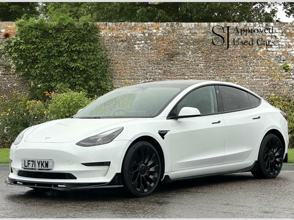 ????WHATSAPP OUR BUSINESS ON 07393833415 ????, ???? Finance available , ????Part Exchange welcome , ????Customer satisfaction is our priority, ⚙️ Extended warranty available (subject to car ), ????Aviloo battery health check showing 94.4% dated 27-01-2026, This 2021 Tesla Model 3 Performance is a remarkable example, boasting exceptionally low mileage for its age, having covered just 21,000 miles. As an all electric, four wheel drive vehicle, it offers a sophisticated driving experience. This Performance variant comes equipped with a substantial 82 kWh battery, providing an impressive maximum range of 340 miles when new. Convenience is further enhanced by keyless entry and remote control via a dedicated app, alongside essential features like air conditioning, front parking sensors, and a 2 zone climate control system. For seamless connectivity, it also includes Bluetooth. The highlights of this Tesla Model 3 Performance truly set it apart. Its acceleration is extraordinary, achieving 0 to 60 miles per hour in a mere 3.1 seconds, demonstrating its potent performance capabilities. This electric vehicle offers a substantial boot space, providing ample room for luggage and shopping. Recharging is efficient, with a full charge at home on a 7kW charger taking approximately 12 hours, and rapid charging on public networks can take you from empty to 80% in as little as 26 minutes. These attributes collectively signify a superior offering compared to other vehicles in its class. SJ Cars are FCA regulated therefore can act as a credit broker and supply finance through various lenders to get you the best deal, we can also accommodate poor credit applications depending on customer profile. Please visit www.sjapprovedusedcars.co.uk to see a full range of stock, what we offer and our customer 5 star reviews. , Please dont hesitate to get in touch with our friendly staff if you are interested in one of our vehicles.