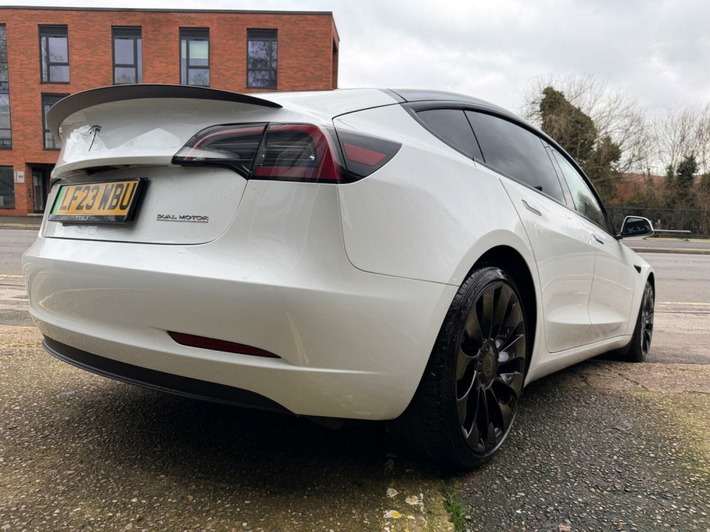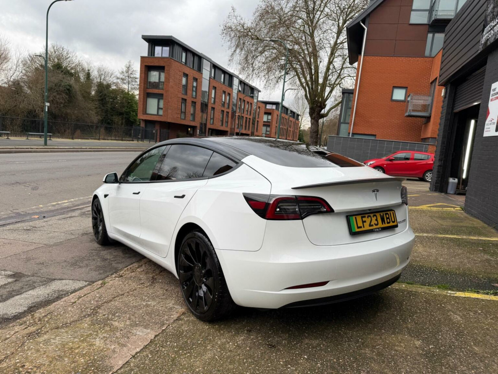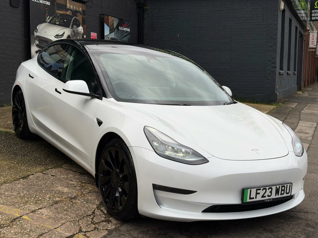 Tesla Model 3 (Dual Motor) Performance Auto 4WDE 4dr (Performance Upgrade) , *APP SET UP UPON COMPLETION*ALL OUR CARS COME WITH A AVILOO BATTERY HEALTH REPORT*, CAR FEATURES INCLUDE, HEATED SEATS FRONT AND REAR, HEATED STEERING,BLACK INTERIOR, LATEST AMD RYZEN PROCESSOR, NAVIGATION, HEAT PUMP, 20ALLOYS. MANUFACTURES WARRANTY 13/03/27 or 50,000. BATTERY/UNIT DRIVE WARRANTY 13/03/2031, FCA Regulated and Approved Dealership, * Excellent Customer Reviews - We Value our Customers, * All Cars are HPI cleared with Full HPI check certificate provided, * All Major Debit & Credit Card Payments Accepted, * Evening and Weekend Appointments also Available, * Finance Option Available - Registered with all big Finance Lenders, * Warranty - 3 to 36 Months Warranty Available, * Buy With Confidence - VAT Registered Ltd Company, * Part Exchange Welcome, * Please visit our website to look at our other stock, With exceptionally low mileage for its age, this 2023 Tesla Model 3 Performance represents a superb example of electric motoring. This four wheel drive electric vehicle boasts a substantial 82 kWh battery, offering a maximum range of 340 miles when new. Charging at home on a 7kW charger will take approximately 12 hours, while rapid public charging can replenish the battery from empty to 80% in as little as 26 minutes. This single owner vehicle comes equipped with a host of advanced features, including adaptive cruise control, keyless entry with app control, and dual inductive charging mats for smartphones. Comfort is further enhanced by heated rear seats and 12 way power adjustable front and rear heated seats. The performance of this Model 3 is truly remarkable, achieving 0 to 60 miles per hour in a mere 3.1 seconds, a figure that sets it apart from many other vehicles in its class. This impressive acceleration is complemented by a large boot space, offering practicality for everyday use and longer journeys. The very low mileage of 14550 miles indicates that this car has been lightly used, suggesting it is in excellent condition and ready for its next owner to enjoy.