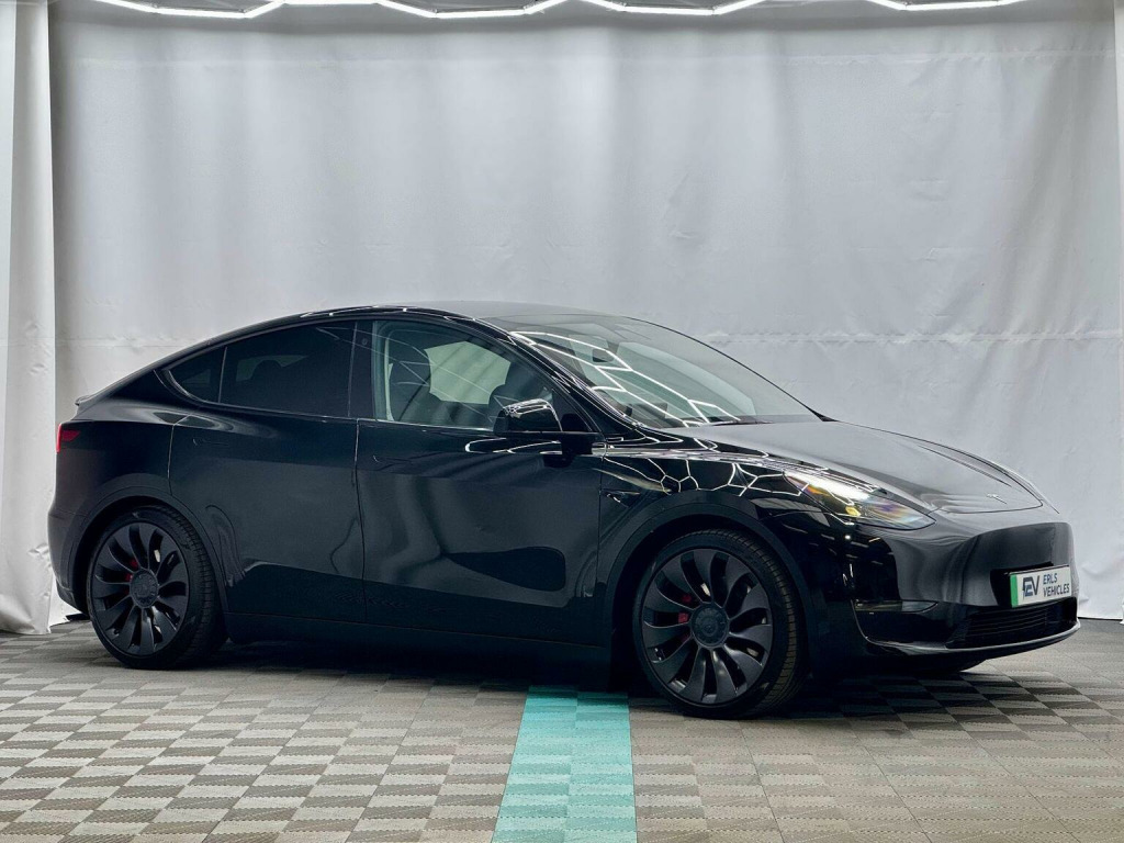 Erls Vehicles are pleased to offer this Black, 2023 (23), Tesla Model Y Performance (Dual Motor Auto 4WDE 5dr). Finished in Black - Solid, with the Premium Black Interior and 21 Satin Grey Überturbine Alloys. The interior and exterior are in fantastic condition. Features include Premium Audio, (14 speakers, 1 subwoofer, 2 amps) with Immersive Sound, Heated Front and Rear seats, Heated Steering Wheel, tinted glass roof with ultraviolet and infrared protection, twin wireless charging pads, and a Heat Pump for increased efficiency in the winter. With the giant 15 Infotainment screen youre able to watch Netflix, YouTube and more with Tesla Theatre. As a Performance, it comes with Red Brake Callipers, Carbon Fibre Spoiler, Aluminium Pedals, and will do 0-60mph in 3.7 seconds! Comes with the balance of Teslas Basic Vehicle Warranty (till June 2027/50k miles - whichever comes first) and Teslas Battery & Drivetrain Warranty for 8 years (till June 2031/120k miles - whichever comes first). A nice option on this car is Enhanced AutoPilot (£3,400), which adds Navigate on AutoPilot, Auto Lane Change, Summon, AutoPark and more. Over-the-air updates improve the system and AutoPilot, as well as adding new features, constantly. As expected, this Model Y has access to the entire Tesla SuperCharger network in the UK & Europe. Your smartphone can be used as a key and Teslas mobile app allows control of plenty of features from your phone. //\\ This vehicle is ready to view at our premises, The UKs first, truly Eco-Friendly Showroom, based in rural Northamptonshire. To ensure the highest quality of customer service we recommend booking an appointment. All our cars come with a 3-month, EV-specific warranty, which can be extended at a cost. Erls Vehicles are specialists in electric vehicles, with first-hand experience since 2015.//\\
