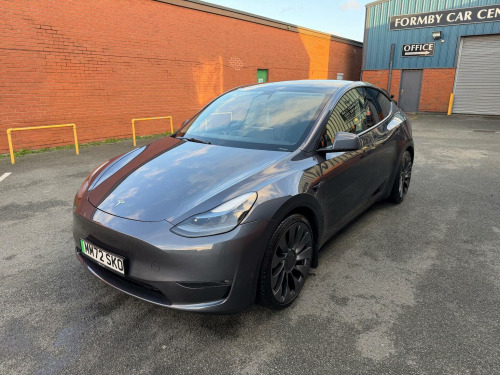 XXX FULLY ELECTRIC- NICE SPEC XXX 9.9% FINANCE AVAILABLE XXX STUNNING CONDITION INSIDE & OUT, DRIVES PERFECT, ONLY 1 OWNER FROM NEW, MOT UNTIL THE 12/11/2026, 90 DAY WARRANTY INCLUDED, GENUINE MILEAGE, HPI CLEAR, 2 KEYS & BOOK PACK, 3 PIN DOMESTIC SOCKET HOME CHARGER INCLUDED & PUBLIC CHARGE LEAD, REALLY IS A NICE CAR YOU WILL NOT BE DISAPPOINTED, ANY INSPECTION/TEST DRIVE WELCOME,ALL MAJOR DEBIT AND CREDIT CARDS ACCEPTED,GREAT PRICES ON YOUR PART EXCHANGE, TO VIEW MORE CARS AND SEE OUR OPENING TIMES VISIT OUR WEBSITE WWW.FORMBYCARCENTRE.CO.UK , WE CAN ALSO DO A WALK AROUND VIDEO OF THE CAR VIA WHATSAPP MESSENGER, HOME DELIVERY CAN ALSO BE ARRANGED, CAR FINANCE CALCULATOR ON OUR WEBSITE ADJUST YOUR DEPOSIT/TERM, YOU CAN ALSO APPLY FOR FINANCE ON OUR WEBSITE 24/7 FOR AN INSTANT DECISION, Terms and Conditions apply, This 2022 Tesla Model Y Performance is a remarkable example, having had only one owner from new and boasting a clear vehicle history check. As an electric vehicle with Four Wheel Drive, it offers an impressive battery total capacity of 85 kWh, providing a maximum range of 319 miles when new. This Model Y comes equipped with a suite of notable features, including music and media via Bluetooth, heated rear seats for added comfort, bright LED headlights, convenient wireless phone charging, and front parking sensors to assist with manoeuvring. The Performance variant truly lives up to its name, delivering exhilarating acceleration from 0 to 60mph in just 3.5 seconds, a highlight that sets it apart from many other vehicles. Furthermore, the generous boot space offers practicality for all your needs. Charging is also efficient, with a full charge at home taking approximately 12 hours on a 7kW charger, and a rapid charge to 80% achievable in as little as 25 minutes at a public charging station.