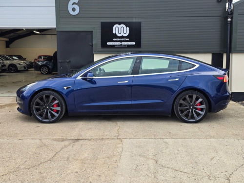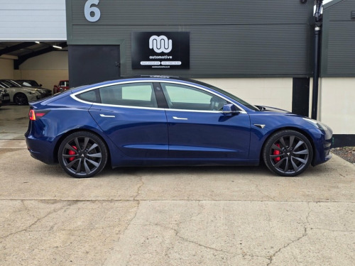 M&W Automotive are delighted to be able to offer for sale this specially selected Tesla Model 3 Performance in Metallic Blue with Stunning Black Leather interior. The car has been really well looked after and is in excellent condition and has just had a new MOT valid until November 2026 Unparalleled Electric Ability With Ground Breaking Technology And A Modern Interior With Driver Focus In Mind - This Tesla Model 3 Is A Fully Electric Vehicle That Can Utilize Ultra Rapid Charge Technology At A Outstanding Rate Of 350 Kw By Using A CCS Connector Which Enables You To Charge To 80% In As Little As 26 Minutes. You Also Have The Added Benefit Of Access To Tesla's Supercharging Network. All This Together Gives A Exceptional Range Of approx 340+ Miles. The Model 3 Showcases A Strong 483 Hp And An Instant Torque From Its dual Electric Motors, Launching 0 To 60 Mph In the blink of an eye . - 15 Inch Touchscreen Display With Gps Satellite Navigation System, Dab Digital Radio, Electrically Adjustable Steering Column, 12-Way Electrically Adjustable Drivers Seat, Bluetooth Wireless Smartphone Connectivity, Automatic High Beam Assist, Front And Rear Radar Type Parking Sensors, Tyre Pressure Monitoring System, Dual Zone Climate Control, Premium Open Pore Wood Interior Trim, Heated Front Seats, Led Headlights, Electric Tailgate, Stunning Cinematic Vista Of The Skies Glass Panoramic Roof With Ultraviolet And Infrared Protection, Wireless Phone Charging For Compatible Smartphones, El 12-Way Power Adjustable Front and Rear H, 15in Touchscreen with Onboard Maps and N, 2 Zone Climate Control, 20in Alloy Wheels - Performance, 3x3 Point Rear Seat Belts, 60-40 Split Folding Rear Seats, ABS - Anti-lock Braking System, Adaptive Cruise Control, Adaptive Steering, Air Conditioning, Airbags - 6, Airbags - Curtain, Airbags - Driver, Airbags - Passenger, Airbags - Side, Aluminium Alloy Pedals, Ambient - Interior Lighting, Audio Remote Control, Auto Dimming - Power Folding - Heated Si, Automated High-Beam Assist, Automatic Emergency Braking, Autopilot Function, Blind Spot Information, Bluetooth Connection, Body Coloured Bumpers, Carbon Fibre Spoiler, Centre Console with Storage - 4 US