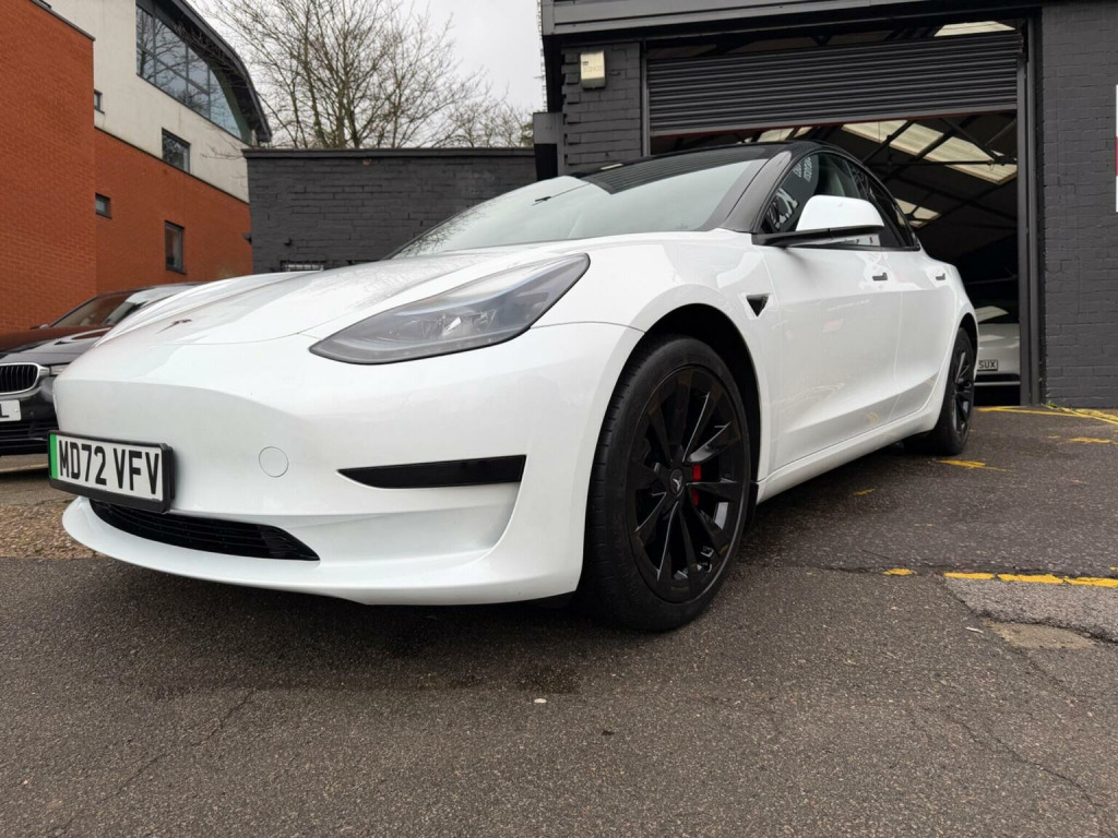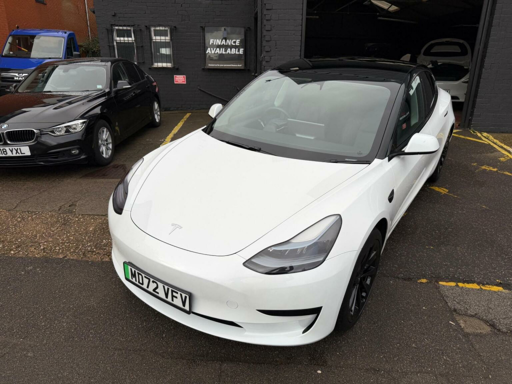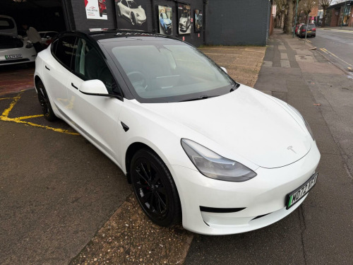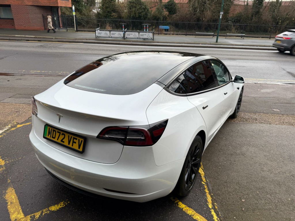 Tesla Model 3 Auto RWD 4dr, *INSTANT TESLA APP ACCESS ON COMPLETION*, CAR FEATURES INCLUDE, ELECTRIC WINDOWS, NAVIGATION, REVERSE CAMERA,BLACK INTERIOR, HEATED SEATS, ELECTRIC SEATS,PANORAMIC ROOF, AMD RYZEN PROCESSOR. *MANUFACTURES WARRANTY 28/02/2027 OR 50,000 MILES*BATTERY AND UNIT DRIVE WARRANTY TILL 28/02/2031 or 120,000 MILES*, * *BUY WITH CONFIDENCE**, **HPI CLEAR**, ** Evening And Weekend Viewings Also Available**, **All Major Debit Card Payments Accepted**, **Vat Registered**Part exchange Welcome**No offers please**delivery available**Finance available**, This 2023 Tesla Model 3 presents an exceptional ownership proposition with its remarkably low mileage of just 20790 miles, a testament to its single owner. As a fully electric vehicle, it boasts a 62 kWh battery. Charging is convenient, with a full charge at home using a 7kW charger taking approximately 8 hours, while rapid charging to 80% from empty can be achieved in as little as 29 minutes at a public station. This Model 3 also comes equipped with a suite of advanced features, including Park Assist Camera with front camera functionality, heated front and rear seats for enhanced comfort, Keyless Go for effortless entry and starting, and Blind Spot Information to aid awareness. The fixed panoramic glass roof adds a sense of spaciousness and light to the cabin. The generous boot space is a practical highlight, offering ample room for luggage or shopping, making this Model 3 a versatile choice for everyday use and longer journeys. The combination of its electric powertrain, impressive range, and rapid charging capabilities positions it favourably against many other vehicles in its class. The inclusion of features like heated seats and advanced parking assistance further enhances the driving and ownership experience, providing a comfortable and convenient drive.