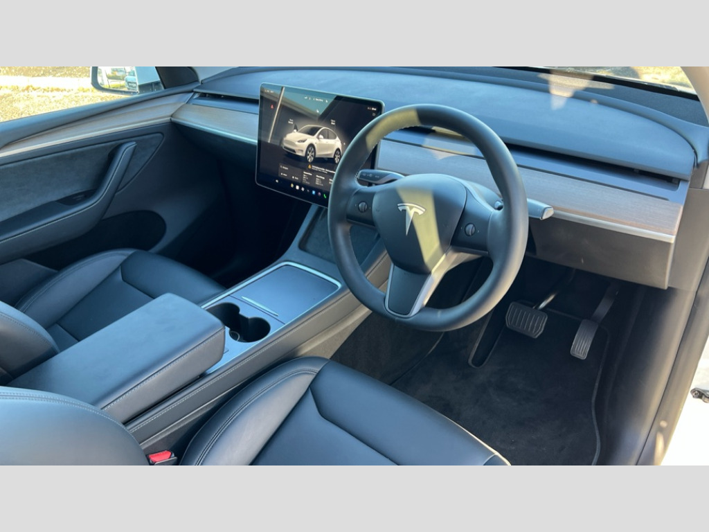 Tesla Model Y Long Range AWD 5dr Auto 15" Touchscreen display, Acoustic seat-belt warning, Blind spot monitoring, Bluetooth hands free phone with voice control system, Custom driver profiles, Electric assisted front and rear doors, Emergency call service, Mobile App interface, Navigation system, Power lift tailgate, Reversing camera, Software updates over WiFi, Speed limit recognition, Speed sensitive power steering, 11 kW AC onboard charger, CCS charging connector (250Kw Max), Dual motor AWD wheel drive, Type 2 connector, 4 USB C ports, DAB Digital radio, Music and media via bluetooth, Premium audio 14 speakers, 1 subwoofer, 2 amps and full immersive sound, 3rd brake light, Auto headlights, Auto high beam, Automatic headlights and wipers, Daytime running lights, Electric windows with one touch open, LED fog lights, LED Headlights, LED tail lights, Power folding, auto dimming and heated wing mirrors, Rain sensitive windscreen wipers, Rear side wing doors, Rear view mirror auto dimming, Rear window defroster, 12 way power adjustable front seats with driver lumbar support, 2 fixed rear headrests, 3 seat bench in 2nd row, Auto dual-zone climate control system, Center console with storage, 2 cup holders and armrest, Driver and front passenger sunvisors with illuminated vanity mirrors, Electronic fold flat seat release 40/20/40, Expansive glass roof with ultraviolet and infrared protection, Front head restraints, Glovebox, lockable with illumination, Heated front seats, Heated rear seats, Heated steering wheel, HEPA filtration system - "Bioweapon defence mode", Interior ambient lighting, Interior floor mats, Map and reading lights, Power adjustable steering wheel, Rear centre armrest with 2 cup holders, Single front passenger seat, Type 2 cable, 3 point front seatbelts with pre-tensioners, 3x3 point rear seatbelts, ABS + traction control, Active safety technologies including collision avoidance and automatic emergency braking, Collision warning, Driver/Front Passenger airbags, EBD + Brake Assist, Electronic parking brake, Electronic stability control, Emergency braking, Rear door child safety locks, Side curtain airbags, Tyre pressure monitoring system, Anti theft alarm, Dashcam, Keyless driving and keyless entry, Wireless phone charging, Premium open pore wood decor