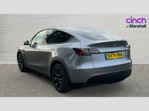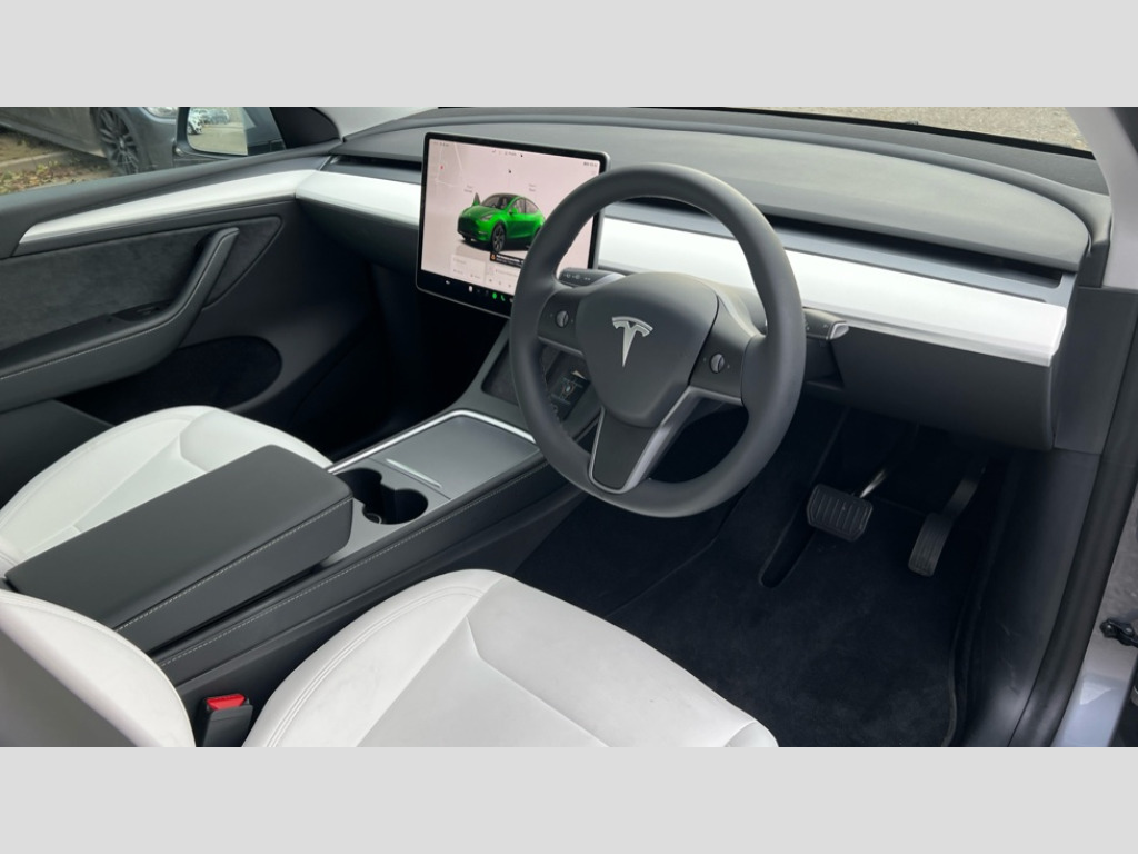 Tesla Model Y Long Range RWD 5dr Auto 15.4" Touchscreen display, Acoustic seat-belt warning, Blind spot monitoring, Bluetooth hands free phone with voice control system, Custom driver profiles, Electric assisted front and rear doors, Emergency call service, Mobile App interface, Navigation system, Power lift tailgate, Reversing camera, Software updates over WiFi, Speed limit recognition, Speed sensitive power steering, 11 kW AC onboard charger, CCS charging connector (250Kw Max), Single motor RWD, Type 2 connector, 4 USB C ports, DAB Digital radio, Music and media via bluetooth, Premium audio 13 speakers, 1 subwoofer, 2 amps and full immersive sound, 3rd brake light, Auto headlights, Auto high beam, Automatic headlights and wipers, Daytime running lights, Electric windows with one touch open, LED Headlights, LED tail lights, Power folding, auto dimming and heated wing mirrors, Rain sensitive windscreen wipers, Rear side wing doors, Rear view mirror auto dimming, Rear window defroster, 12 way power adjustable front seats with driver lumbar support, 2 fixed rear headrests, 3 seat bench in 2nd row, Auto dual-zone climate control system, Center console with storage, 2 cup holders and armrest, Driver and front passenger sunvisors with illuminated vanity mirrors, Electronic fold flat seat release 40/20/40, Expansive glass roof with ultraviolet and infrared protection, Front head restraints, Glovebox, lockable with illumination, Heated front seats, Heated rear seats, Heated steering wheel, HEPA filtration system - "Bioweapon defence mode", Interior ambient lighting, Interior floor mats, Map and reading lights, Power adjustable steering wheel, Rear centre armrest with 2 cup holders, Single front passenger seat, Type 2 cable, 3 point front seatbelts with pre-tensioners, 3x3 point rear seatbelts, ABS + traction control, Active safety technologies including collision avoidance and automatic emergency braking, Collision warning, Driver/Front Passenger airbags, EBD + Brake Assist, Electronic parking brake, Electronic stability control, Emergency braking, Rear door child safety locks, Side curtain airbags, Tyre pressure monitoring system, Anti theft alarm, Dashcam, Keyless driving and keyless entry, Wireless phone charging, Premium open pore wood decor
