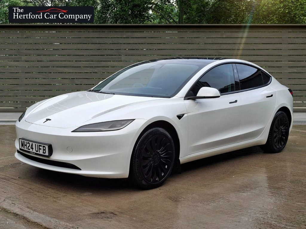 TESLA WARRANTY TILL 08/2028, BATTERY AND DRIVE UNIT WARRANTY 08/2032, BLACK BADGES, BATTERY HEALTH TESTED 100%, LFP BATTERY MEANING IT CAN BE CHARGED TO 100% EVERY TIME NOT THE USUAL 80%, This 2024 Tesla Model 3 offers an impressive electric driving experience with a substantial new battery maximum range of 344 miles. As an electric vehicle, it provides a clean and efficient way to travel, powered by a 62 kWh battery. Charging at home on a 7kW charger will take approximately 8 hours for a full charge, while rapid public charging can take you from empty to 80% in just 29 minutes. This Model 3 is equipped with notable features designed for convenience and safety, including Adaptive Cruise Control, Blind Spot Collision Warning, Easy Entry with keyless access, and two Inductive Charging Mats for smartphones. The generous boot space in this Tesla Model 3 is a significant advantage, offering ample room for luggage or shopping. The 344 mile maximum range at new also sets this vehicle apart, indicating a superior capability for longer journeys compared to many other electric cars. Combined with its advanced technology and electric powertrain, this Model 3 is a compelling choice for those seeking a modern and practical vehicle. Pearl White, 12v Power Outlet, 15in Centre Touchscreen and 8in Second-R, 18in Alloy Wheels - Photon, 2 Zone Climate Control, 3x3 Point Rear Seat Belts, 9 Speakers - Single Amplifier, ABS - Anti-lock Braking System, Acceleration Mode, Adaptive Cruise Control, Adaptive Steering, Additional USB-A Port - Glove Compartmen, Adjustable Rear Centre Seat Head Support, Adjusting Opening Height of Powered Trun, Advanced Climate Controls, Air Conditioning, Airbag Status Indicator, Airbag Warning Indicator, Airbags - Curtain, Airbags - Driver, Airbags - Passenger, Airbags - Seat-Mounted Far Side, Arcade, Audio Remote Control, Auto Dimming - Power Folding - Heated Si, Automated High-Beam Assist, Automatic