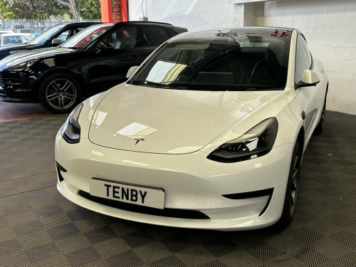 TESLA Model 3 Saloon 4dr Electric Auto RWD (241 bhp) COMES WITH: -REVERSE CAMERA -ADAPTIVE CRUISE CONTROL -ADAPTIVE STEERING -12 WAY ADJUSTABLE FRONT AND REAR HEATED SEATS -18 INCH ALLOYS -FIXED PANORAMIC GLASS ROOF -DAB -NAV -FULL BLACK LEATHER -FRONT HEATED SEATS -LED HEADLIGHTS -AUTO FOLD MIRRORS -AUTO WIPERS DISCLAIMER: THE MILEAGE OF THE CAR MIGHT INCREASE SLIGHTLY DUE TO TEST DRIVES. Please note : We have completed a DVSA database check to establish whether any manufacturers' recall is pending on this vehicle. If a recall has been identified it is referred to in the vehicle description and we will use our best endeavours to ensure that the recall is completed before the time of sale. If there is no reference to a manufacturers' recall, it is based on the information supplied by the DVSA at the time of the check but customers are reminded that the DVSA database is only an indicative check and cannot be relied upon as wholly accurate. Customers are encouraged to independently verify the information before proceeding. Any recall detailed will in any event be dealt with by the manufacturer / manufacturers dealer free of charge. 12-Way Power Adjustable Front and Rear H, 18in Alloy Wheels - Aero, 2 Zone Climate Control, 3x3 Point Rear Seat Belts, ABS - Anti-lock Braking System, Adaptive Cruise Control, Adaptive Steering, Additional USB-A Port - Glove Compartmen, Air Conditioning, Airbags - Curtain, Airbags - Driver, Airbags - Passenger, Airbags - Side, Audio Remote Control, Audio System with 8 Speakers and Limited, Auto Dimming - Power Folding - Heated Si, Automated High-Beam Assist, Automatic Emergency Braking, Autopilot Function, Blind Spot Information, Bluetooth Connection, Body Coloured Bumpers, Centre Console with Storage - 4 USB Port, Collision Avoidance, Custom Driver Profiles, DVD, Daytime Running Lights - LE