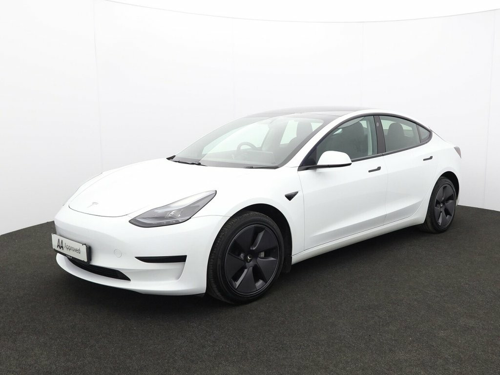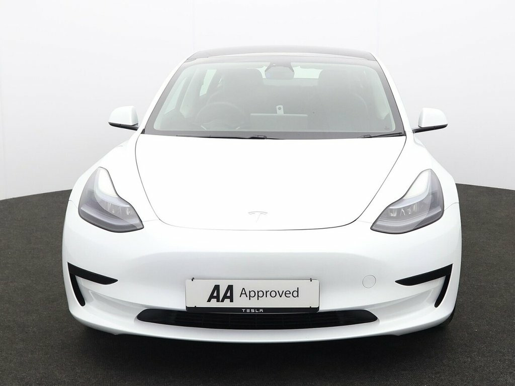 This 2022 Tesla Model 3 has had only one owner from new and boasts a clear vehicle history check, offering peace of mind. As a fully electric vehicle, it features a 62 kWh battery providing a maximum range of 317 miles when new. Recharging at home using a 7kW charger takes approximately 8 hours, while rapid public charging can take the battery from empty to 80% in just 29 minutes. The Model 3 comes equipped with a range of desirable features designed for comfort and convenience. These include air conditioning, a heated steering wheel, and 12 way power adjustable front and rear heated seats, ensuring a pleasant experience in all conditions. LED headlights provide excellent visibility, and the fixed panoramic glass roof creates an open and airy cabin feel. Furthermore, this Model 3 offers substantial boot space, making it a practical choice for everyday use and longer journeys, setting it apart from many other vehicles in its class. Additional USB-A Port - Glove Compartmen, Audio Remote Control, Audio System with 8 Speakers and Limited, Bluetooth Connection, Digital Radio, DVD, Inductive Charging Mats - Two Smartphone, Internet Connection, Media Storage, Mobile Phone App Interface, Navigation System, OEM Sound System, Radio - AM-FM - Internet Streaming, Two Additional USB-C Port, Upgraded Audio - Immersive Sound, USB-iPod Interface, 18in Alloy Wheels - Aero, Auto Dimming - Power Folding - Heated Si, Body Coloured Bumpers, Electric Hinged Side Doors - Front, Electric Hinged Side Doors - Rear, Exterior Satin Black, Fixed Panoramic Glass Roof, Front Electric Windows, Rear Electric Windows, Rear Taillights - LED, Tinted Gla